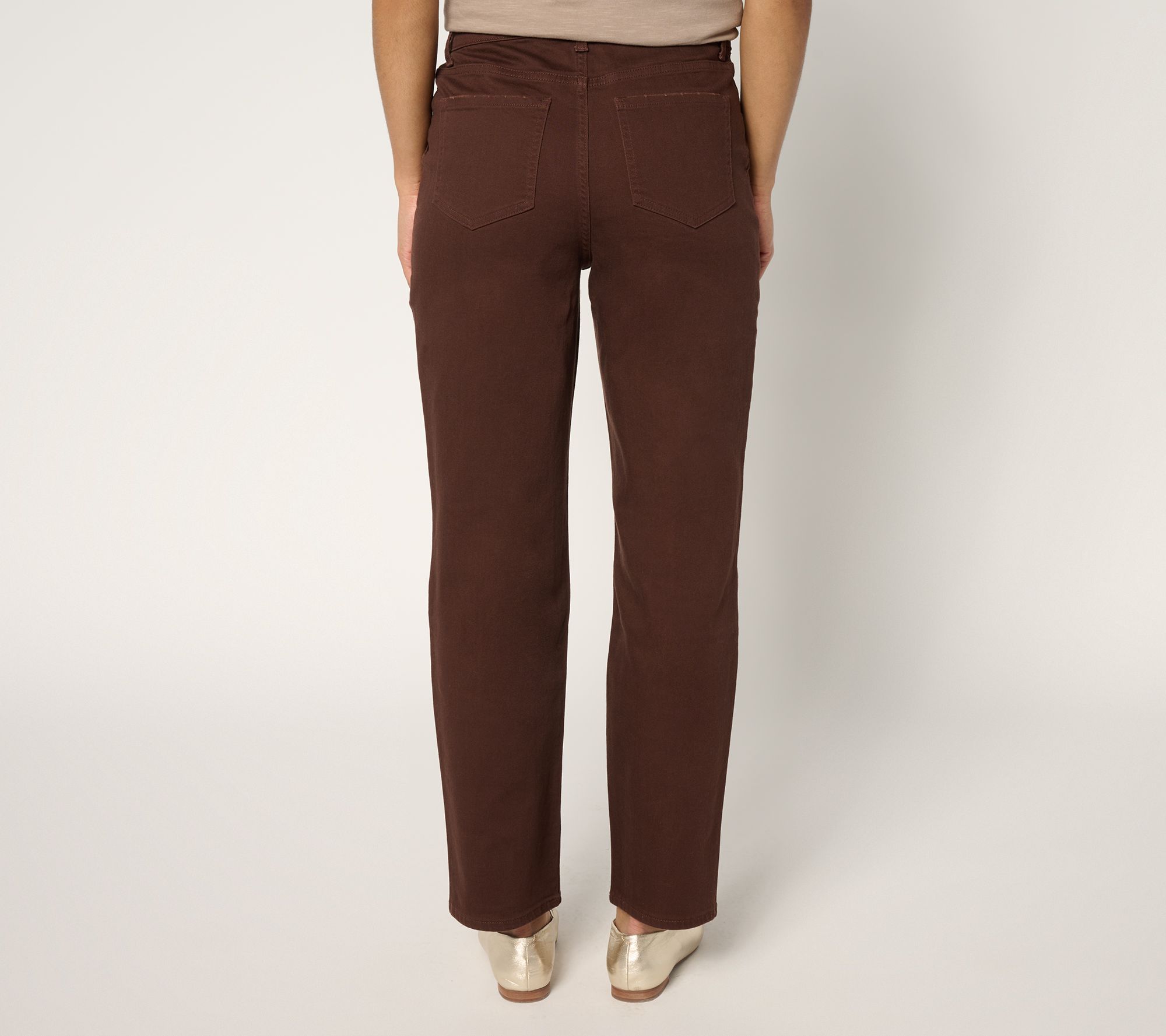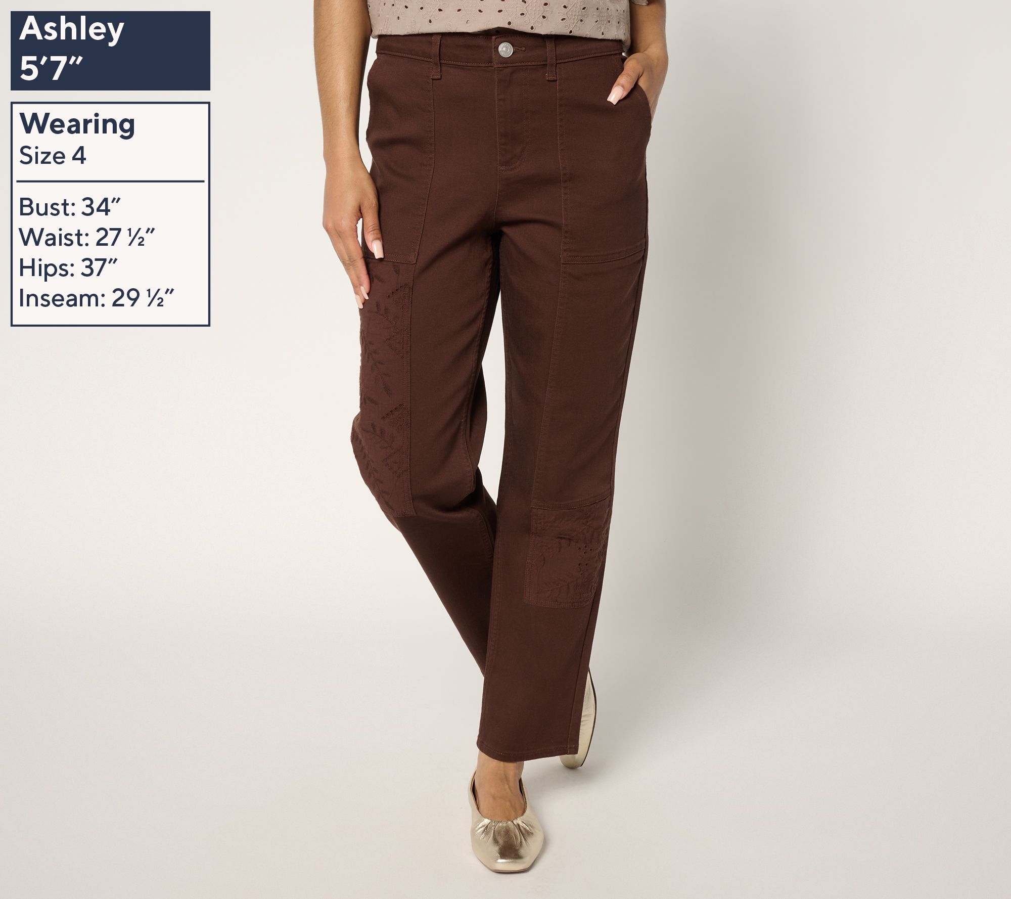 Planning a day out? Slip into these patch-paneled straight-leg jeans for a look that effortlessly marries comfort with contemporary style. The tone-on-tone patches add character and a freshness to your jeans routine. From LOGO by Lori Goldstein®.