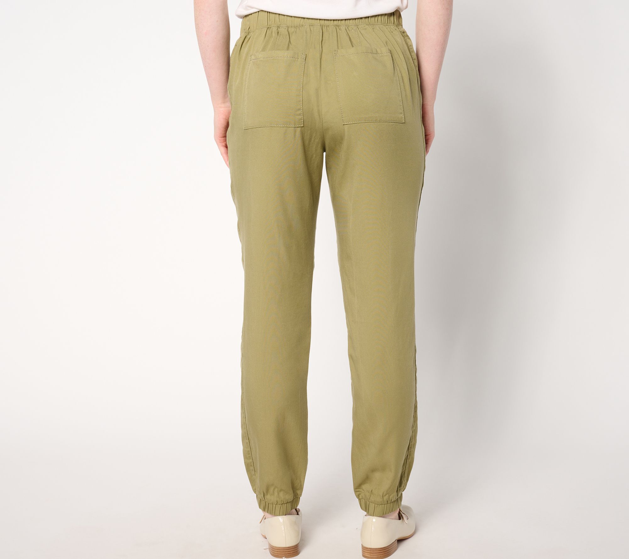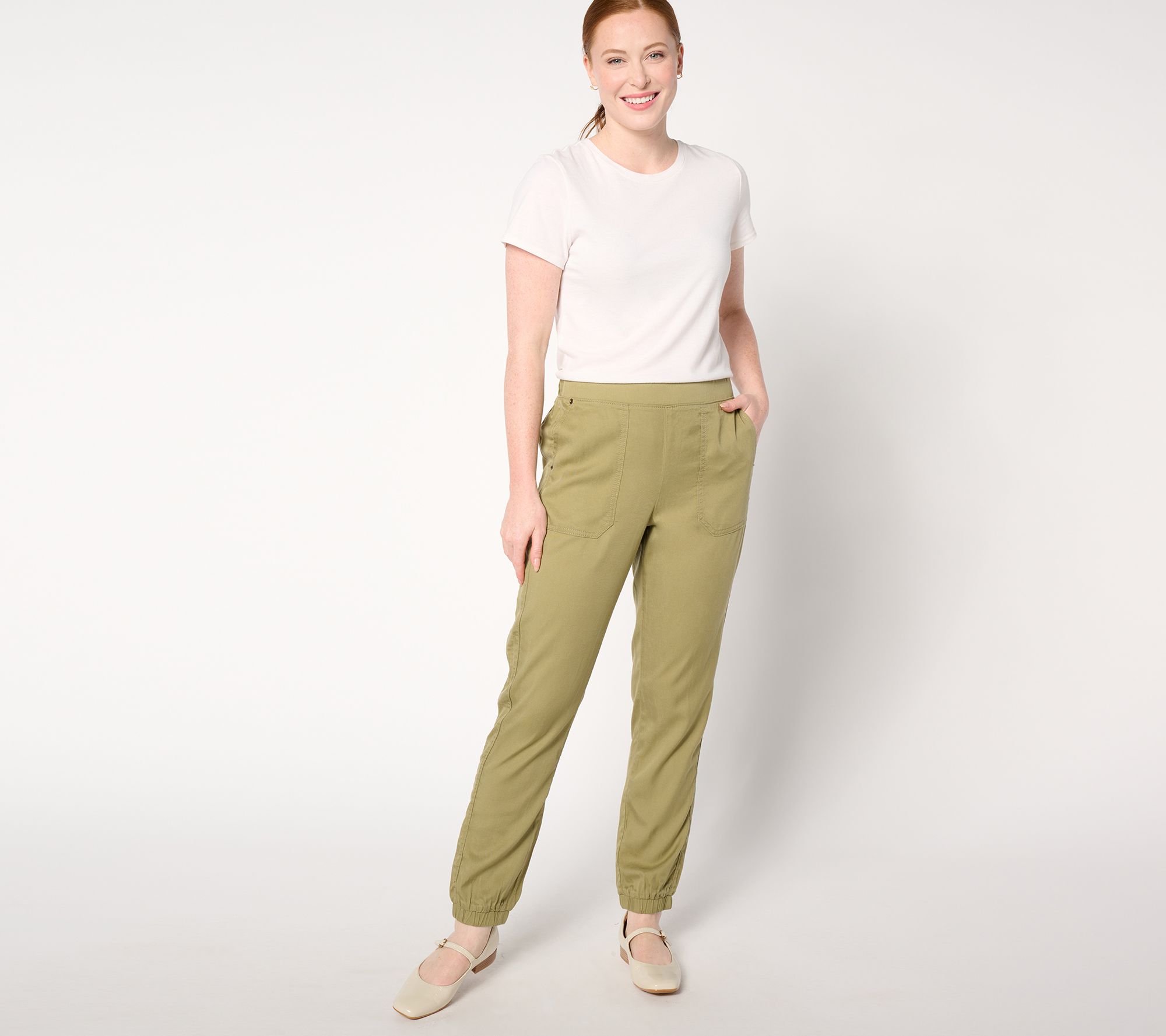 Add versatile style to your wardrobe with these jogger utility pants. The woven twill design features front and back pockets and elastic cuffs, making them perfect for a casual day out or a relaxed evening at home. From LOGO by Lori Goldstein®.