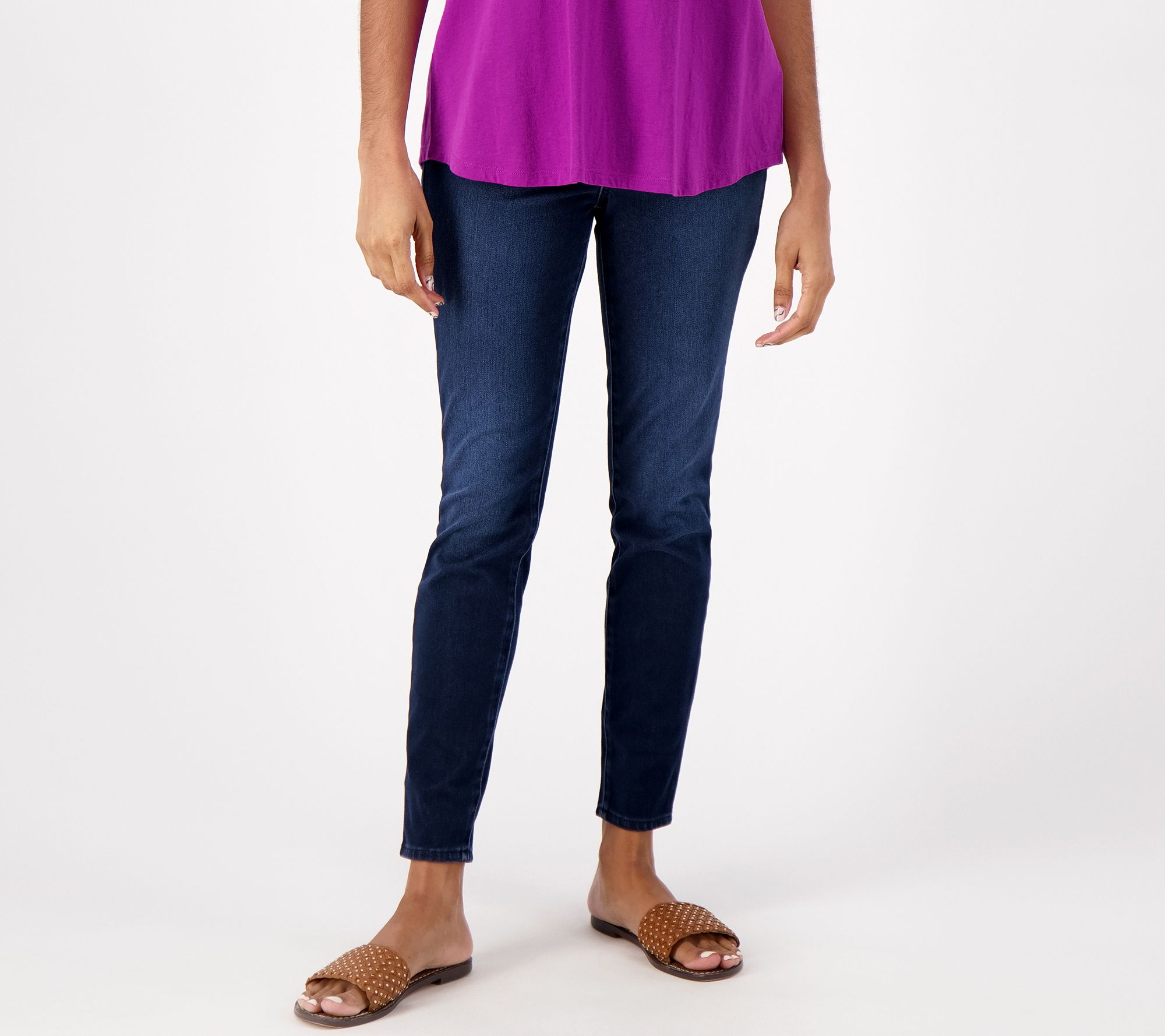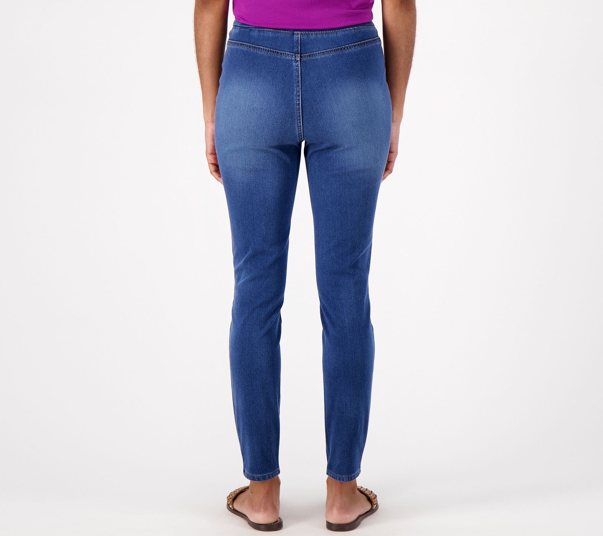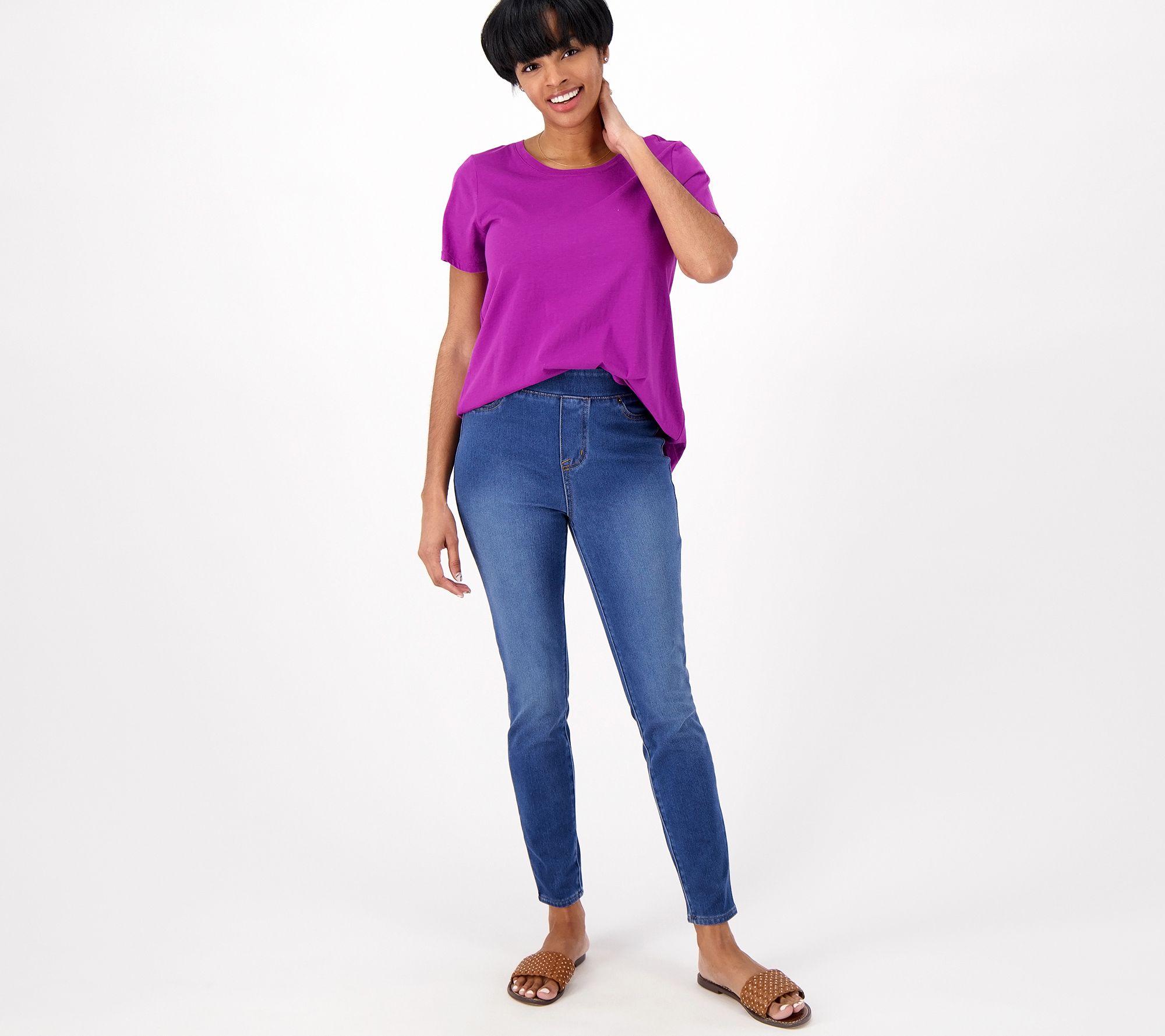 A key foundational piece to any warm-weather wardrobe, these denim leggings will go far this season. Wear them with T-shirts, blouses, camisoles, and tank tops. The possibilities are endless. From LOGO by Lori Goldstein®.