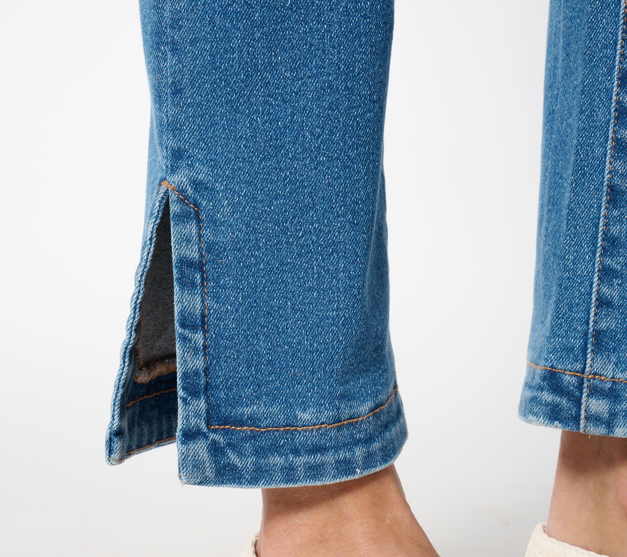 Looking for current-yet-classic jeans that pair equally well with summer's linen shirts as they do fall's tees and flannels? Find them in this straight-leg pair from LOGO by Lori Goldstein®. Slit ankle-length hems vibe with airy sandals and casual flats and accommodate those ankle boots in your pumpkin-picking future, while structured pocketing, rivets, and a faux fly disguise the fact that they're pull-on. (But you'll remember -- because they're so comfy!) From LOGO by Lori Goldstein®.