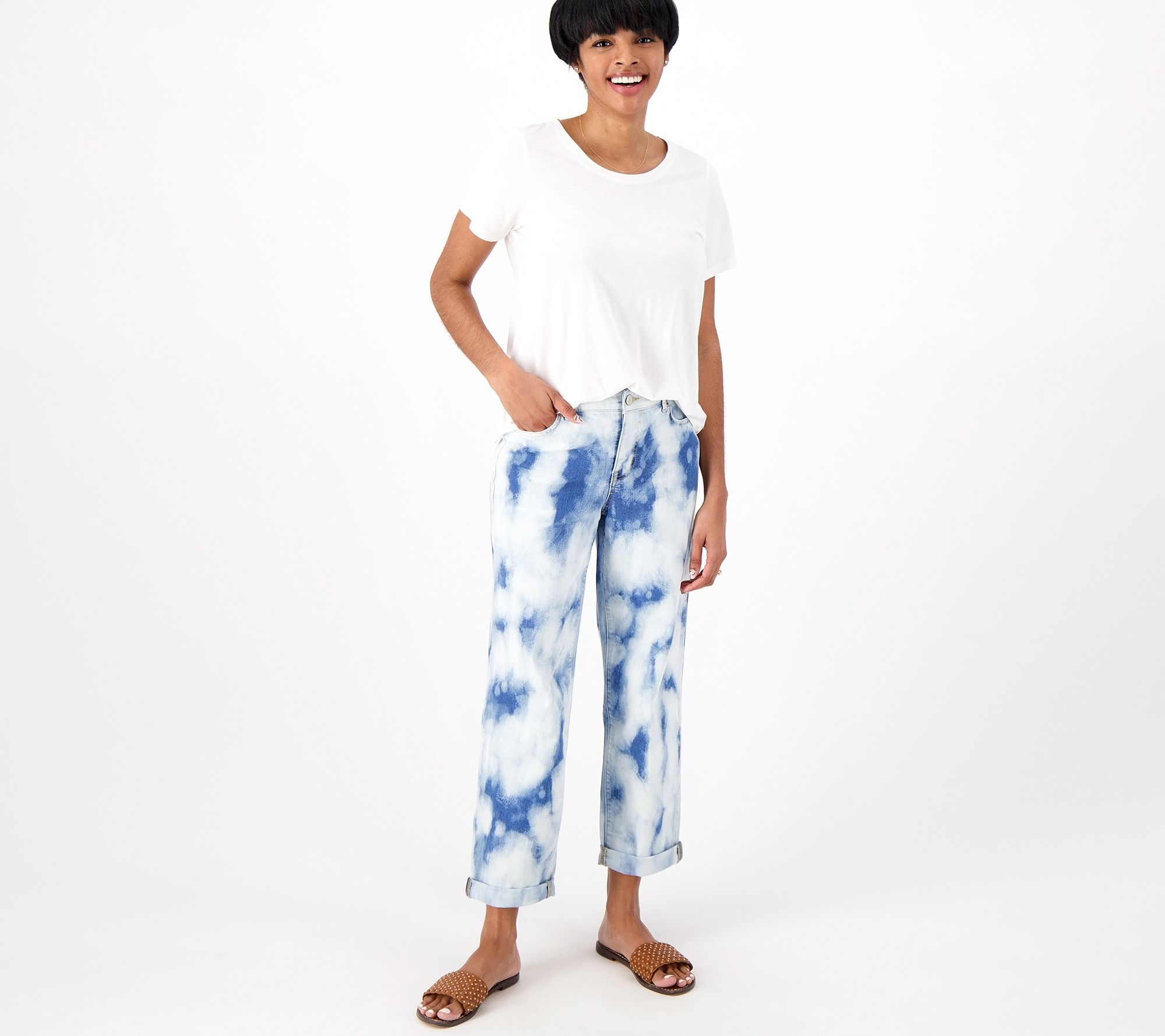 There are times for regular jeans and then there are times when you want something with a little extra oomph. This pair of tie-dye jeans will jazz up your OOTD with its on-trend pattern and slightly slouchy silhouette. From LOGO by Lori Goldstein®.