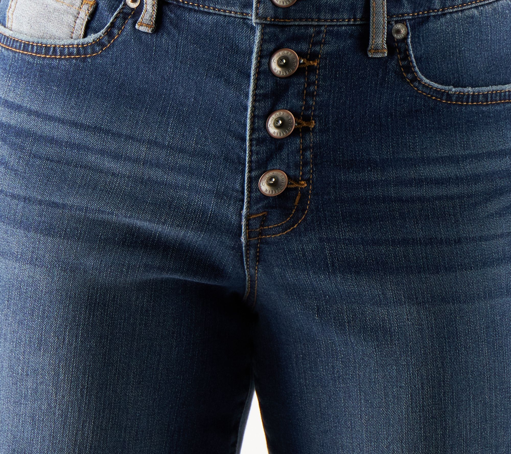 Rock a retro look that pairs well with everything from camisoles and cardigans to graphic-print tees, when you don these wide-leg, button-fly jeans. From LOGO by Lori Goldstein®.