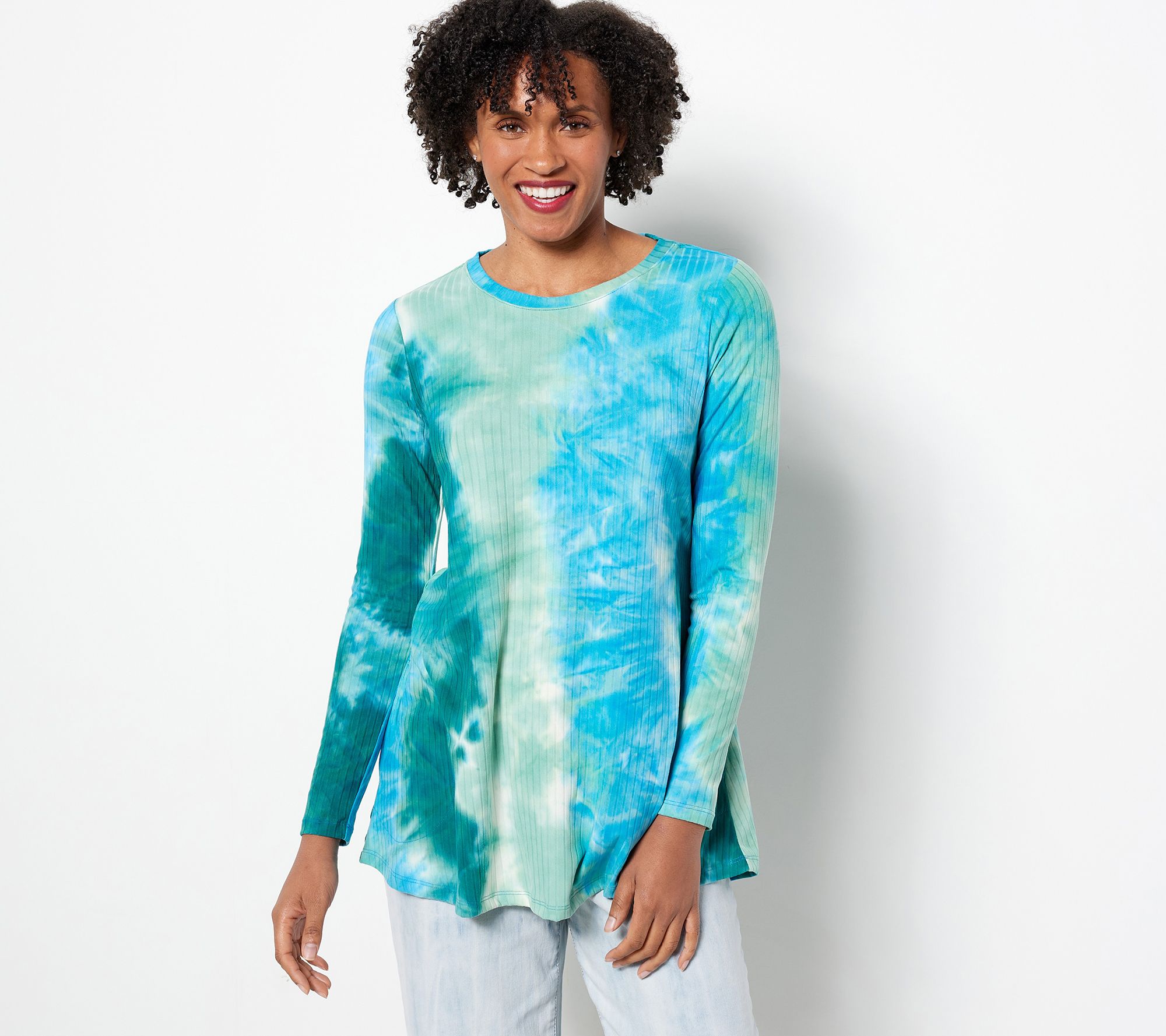"As Is" LOGO by Lori Goldstein Ribbed Tie-Dye Long Sleeve Top