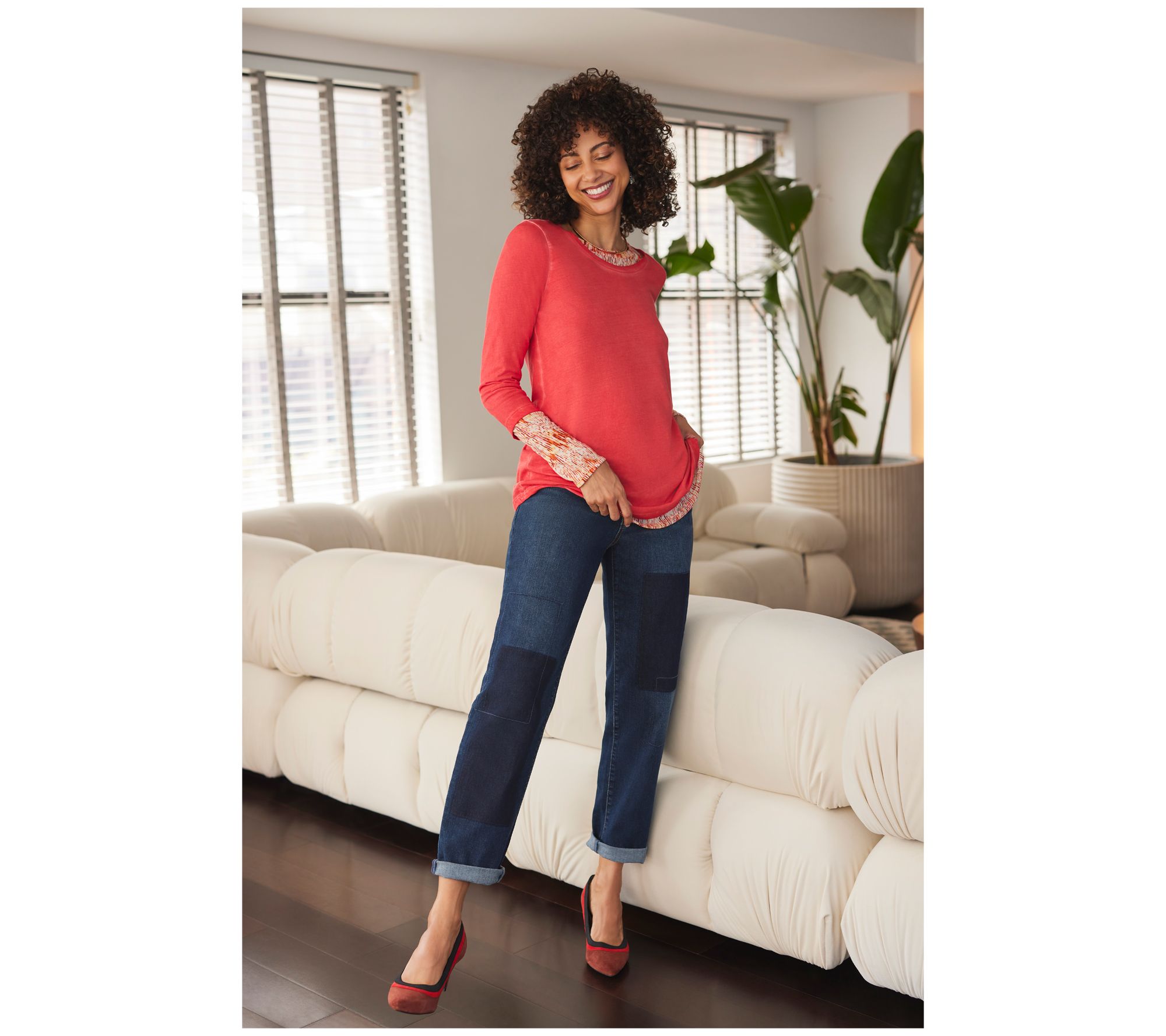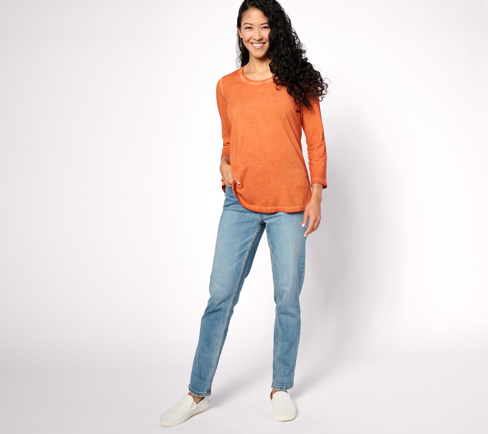 Double up on casual options with this duo of distressed cotton tops. From LOGO by Lori Goldstein®.