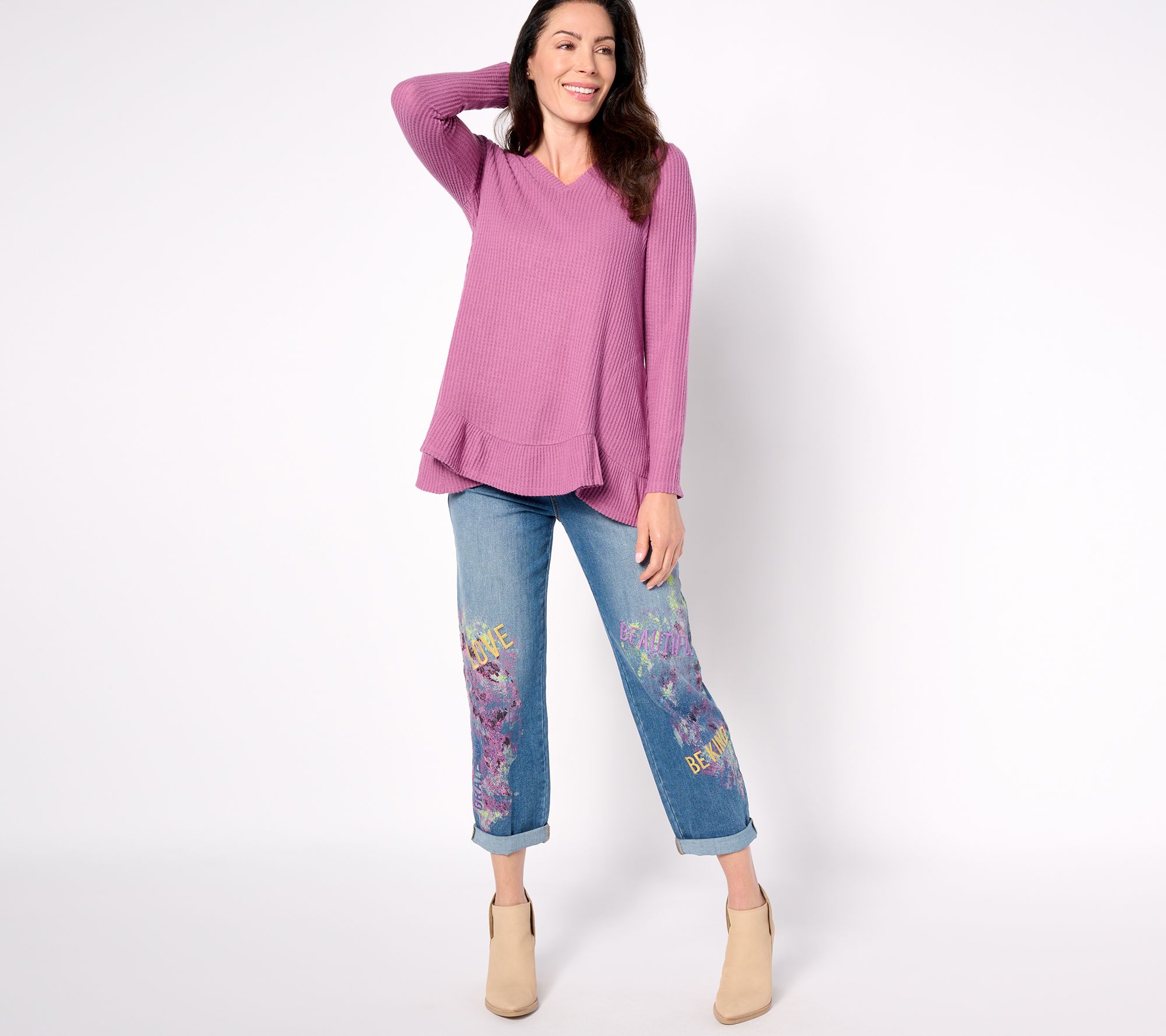 With just the right blend of comfort and style, these printed jeans will quickly become a favorite. No matter if you're going out with friends or running a few errands, you can't go wrong. From LOGO by Lori Goldstein®.