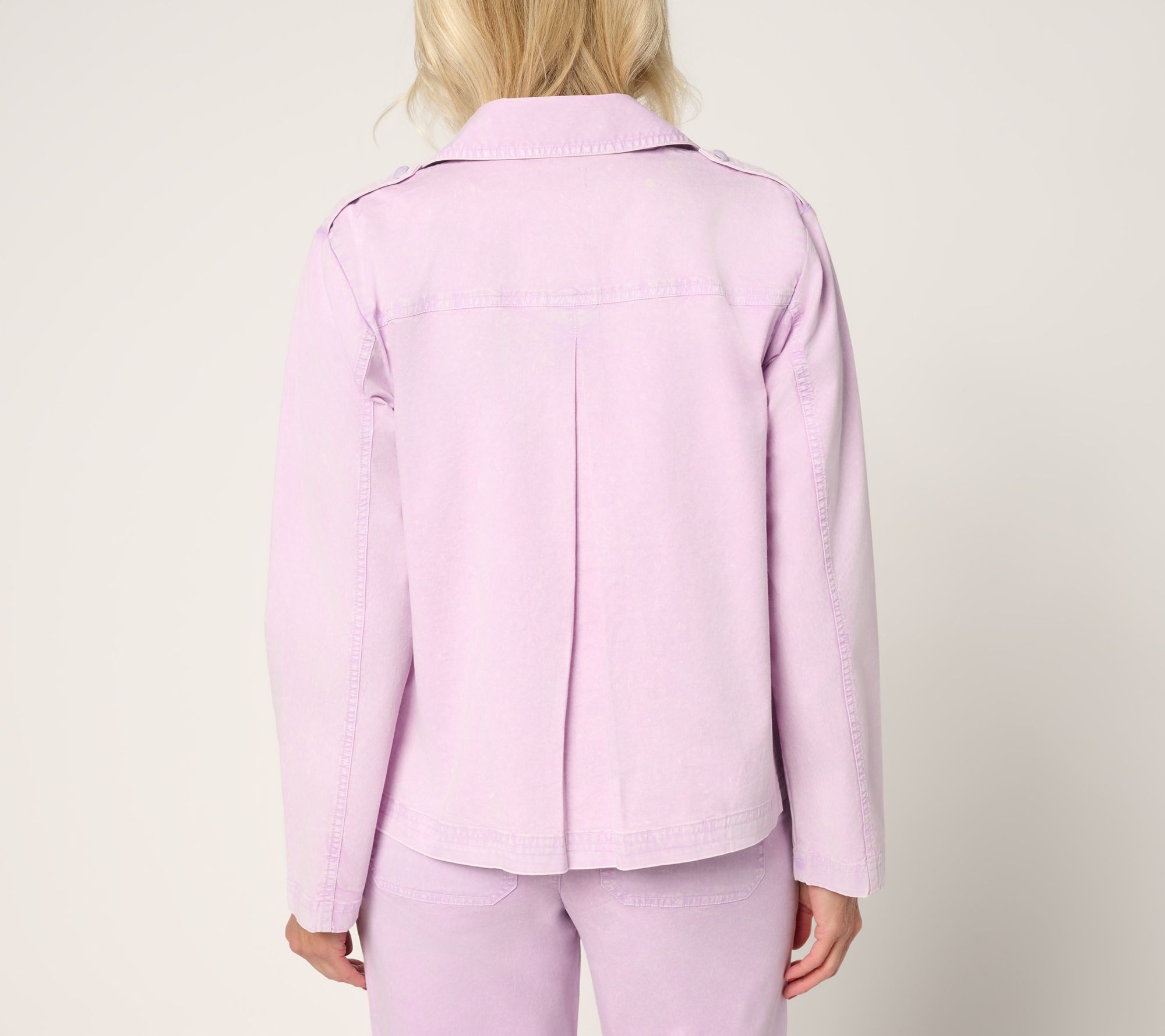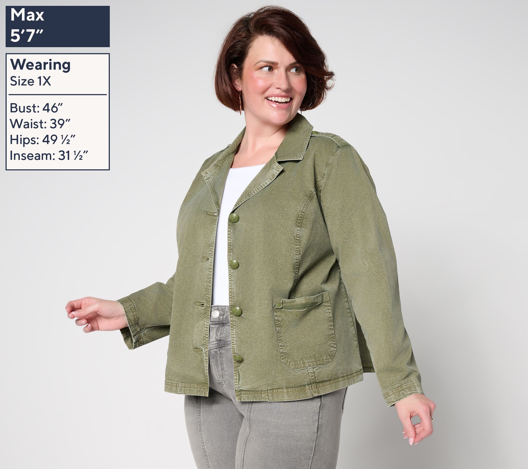 Don't forget your jacket! This need-now utility design in easy-care stretch cotton feels fresh and functional for everyday wear. From LOGO by Lori Goldstein®.