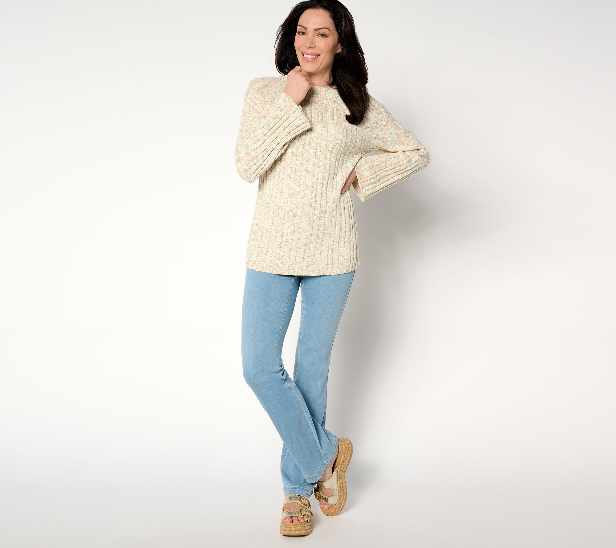 Embrace sweater weather season with this charming ribbed style, featuring wider sleeve openings for a more low-key look-good, feel good fit. From LOGO by Lori Goldstein®.