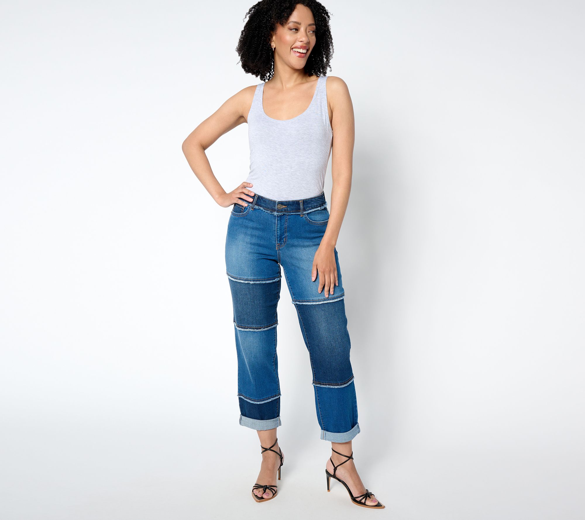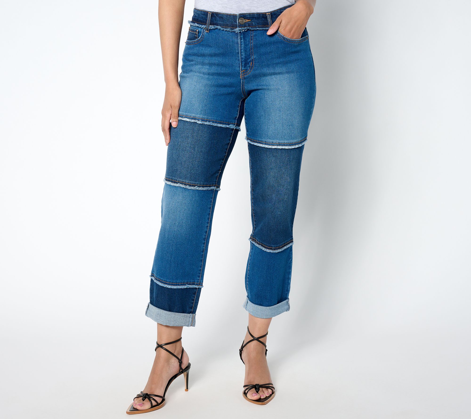 Boyfriend jeans are back and better than ever. This semi-fitted style follows the lines of your body with comfortable ease and features frayed details for an on-trend touch. Cuff them if you want to show off a cute pair of shoes! From LOGO by Lori Goldstein®.