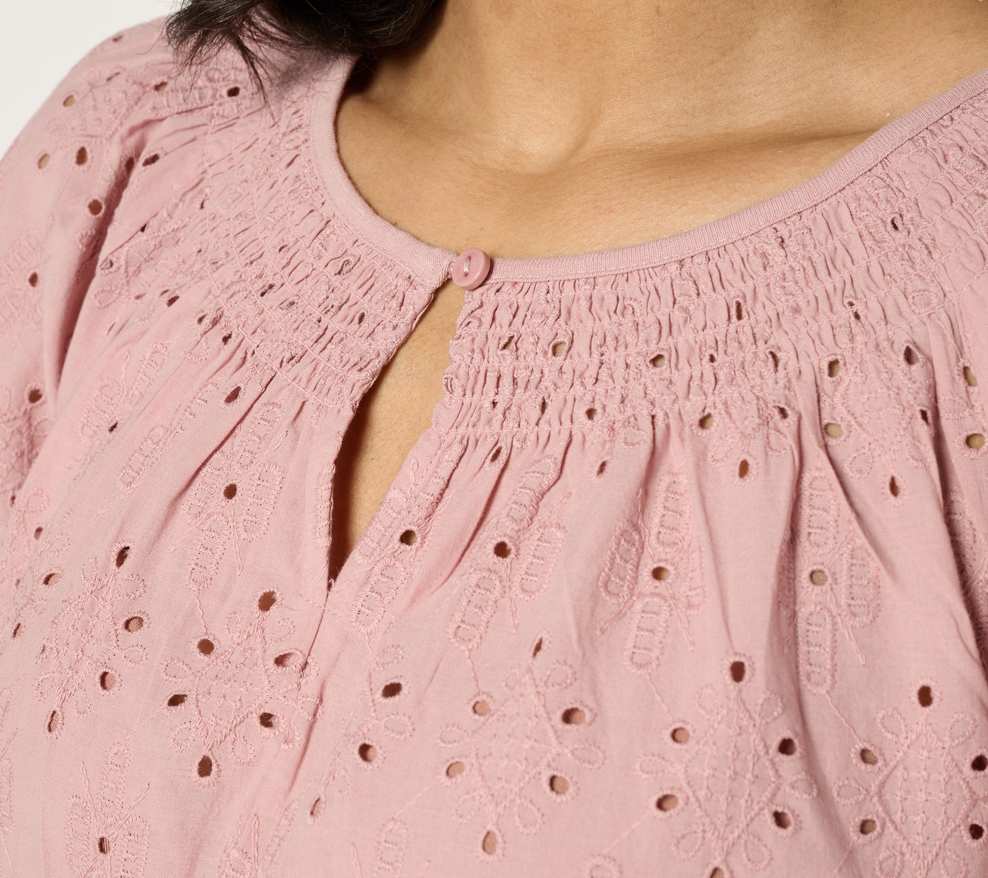 "As Is" LOGO Lavish by Lori Goldstein 100% Cotton Eyelet Top