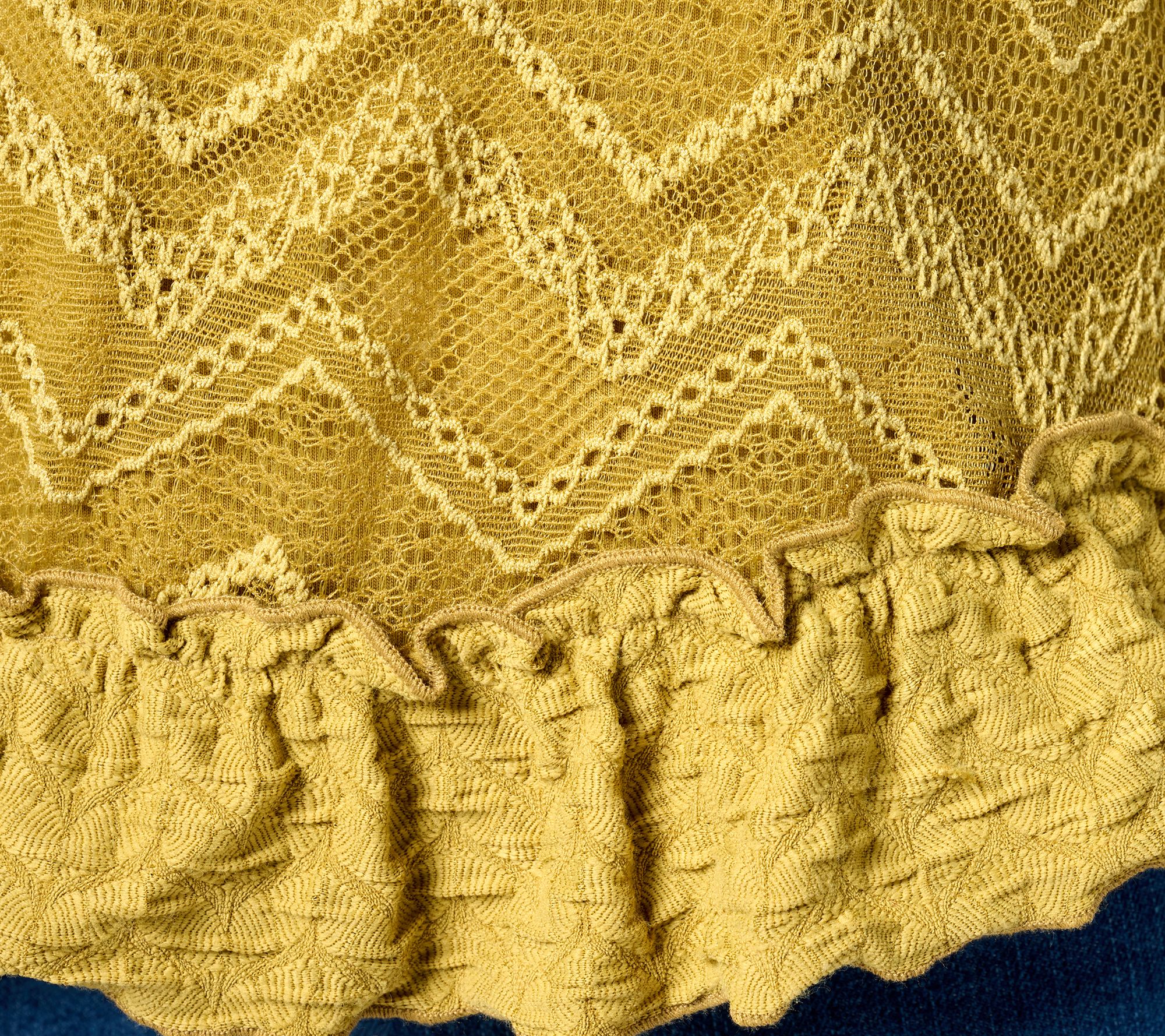 • Features: ruffle crew neck, long sleeves, ruffle bottom