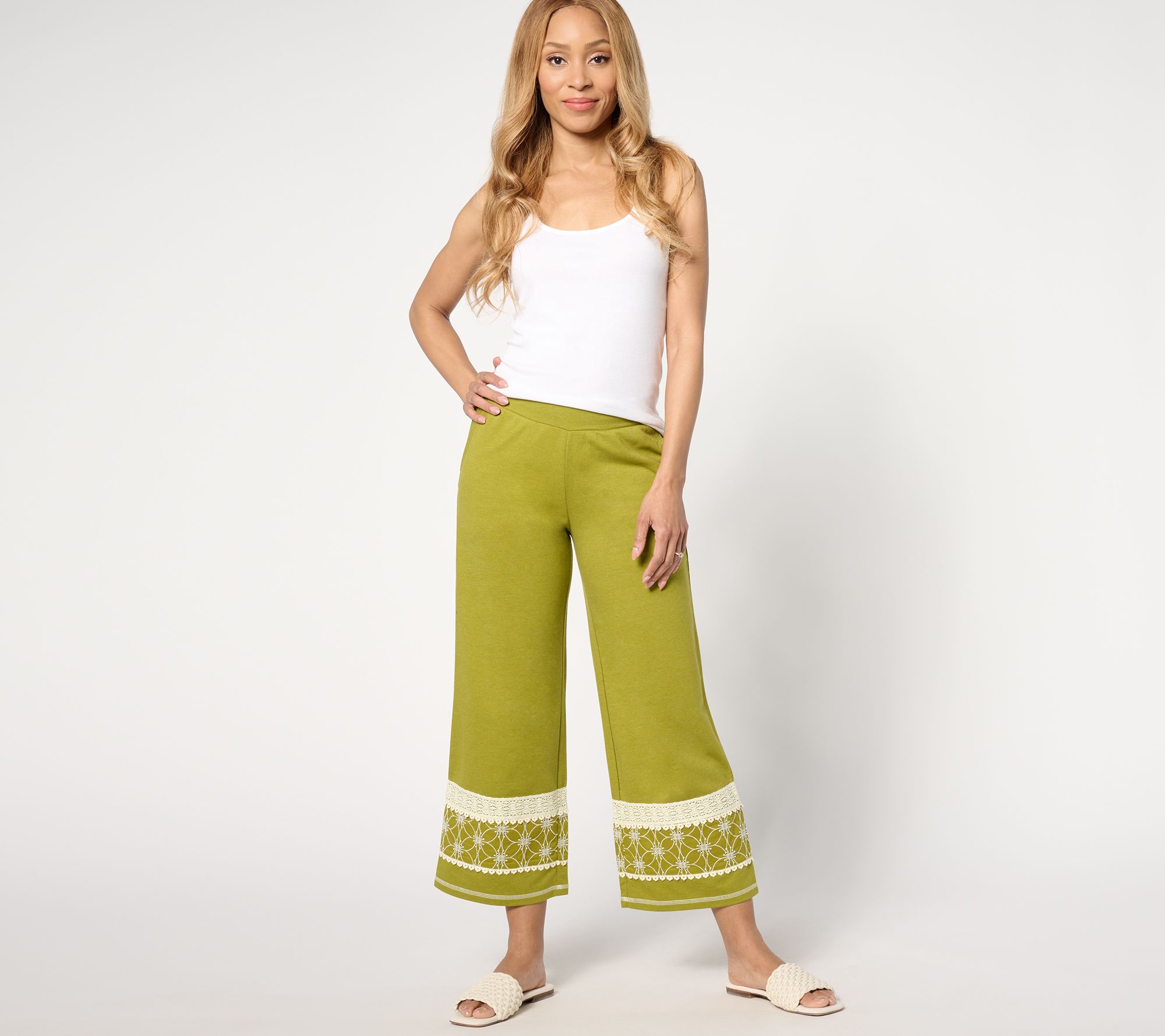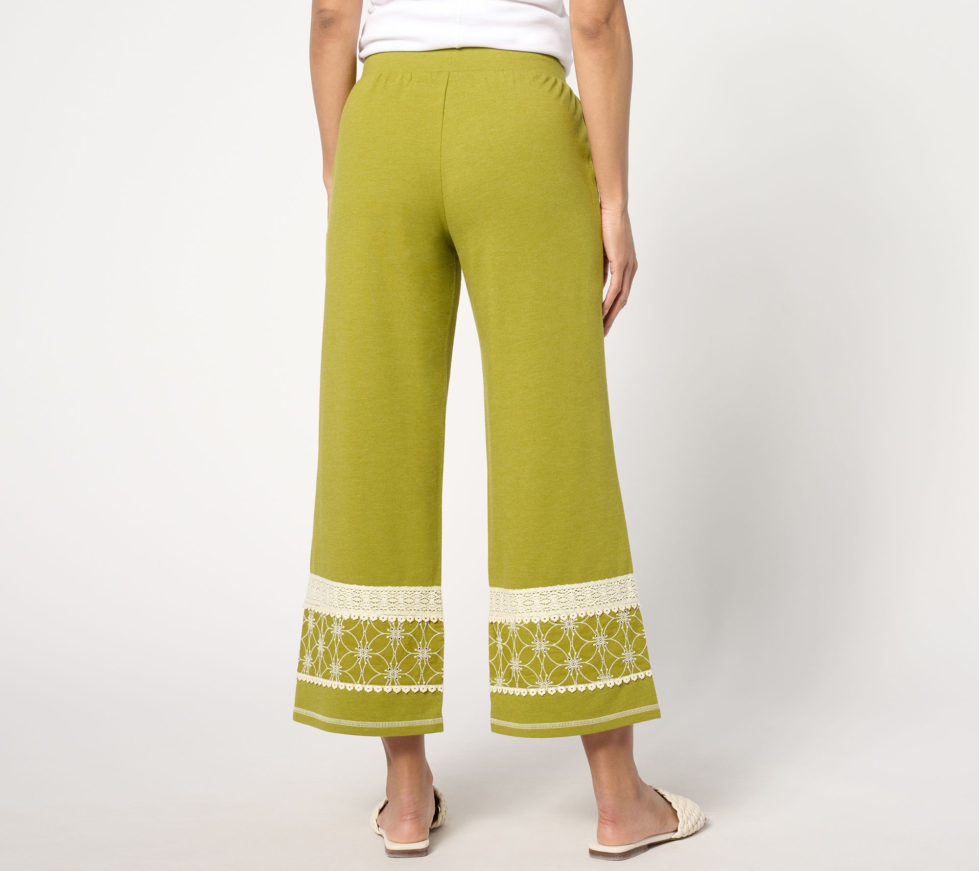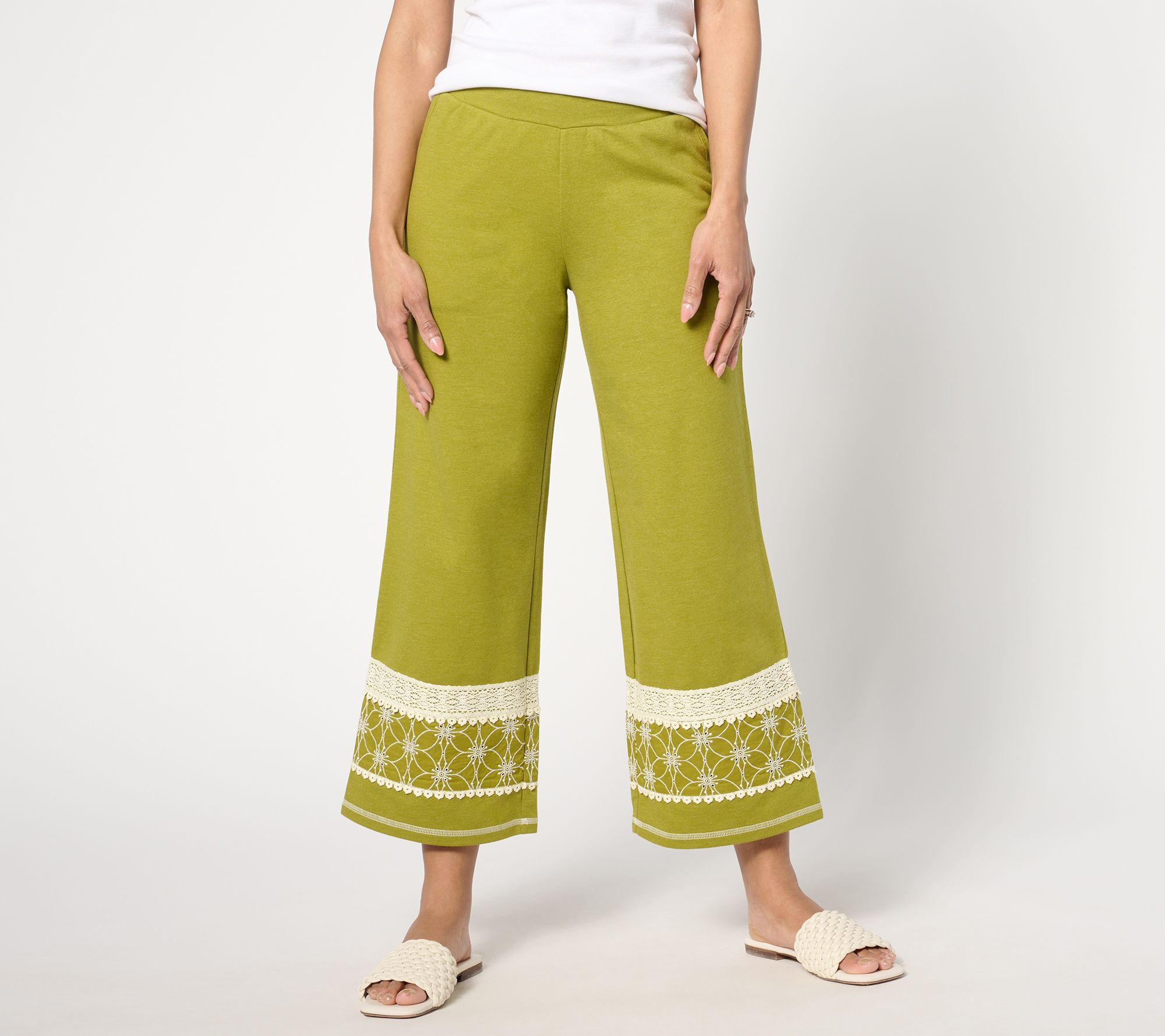 A laid-back look with a stepped-up style moment, these crop pants score fashion points with lace applique details on the hem. From LOGO by Lori Goldstein®.
