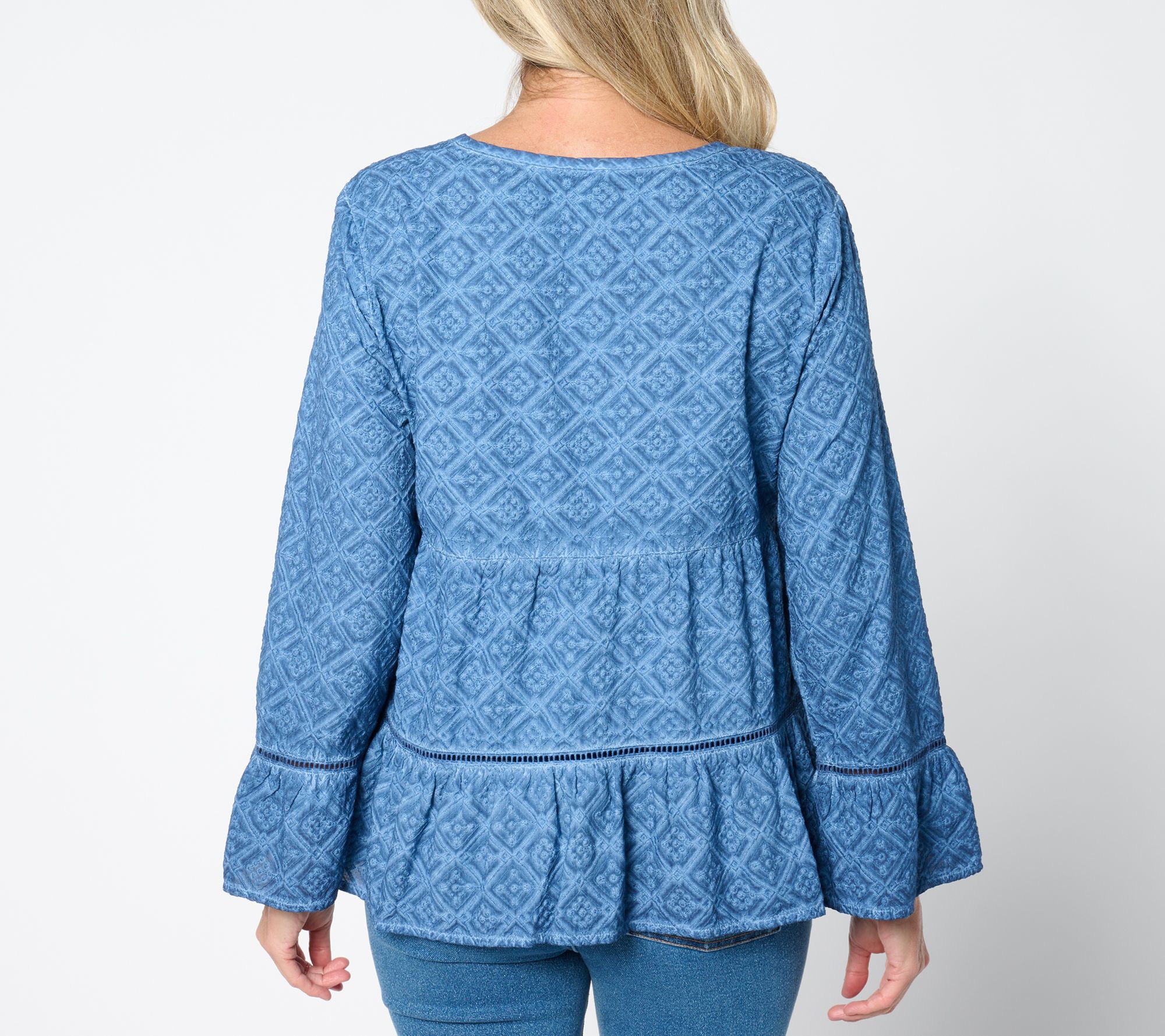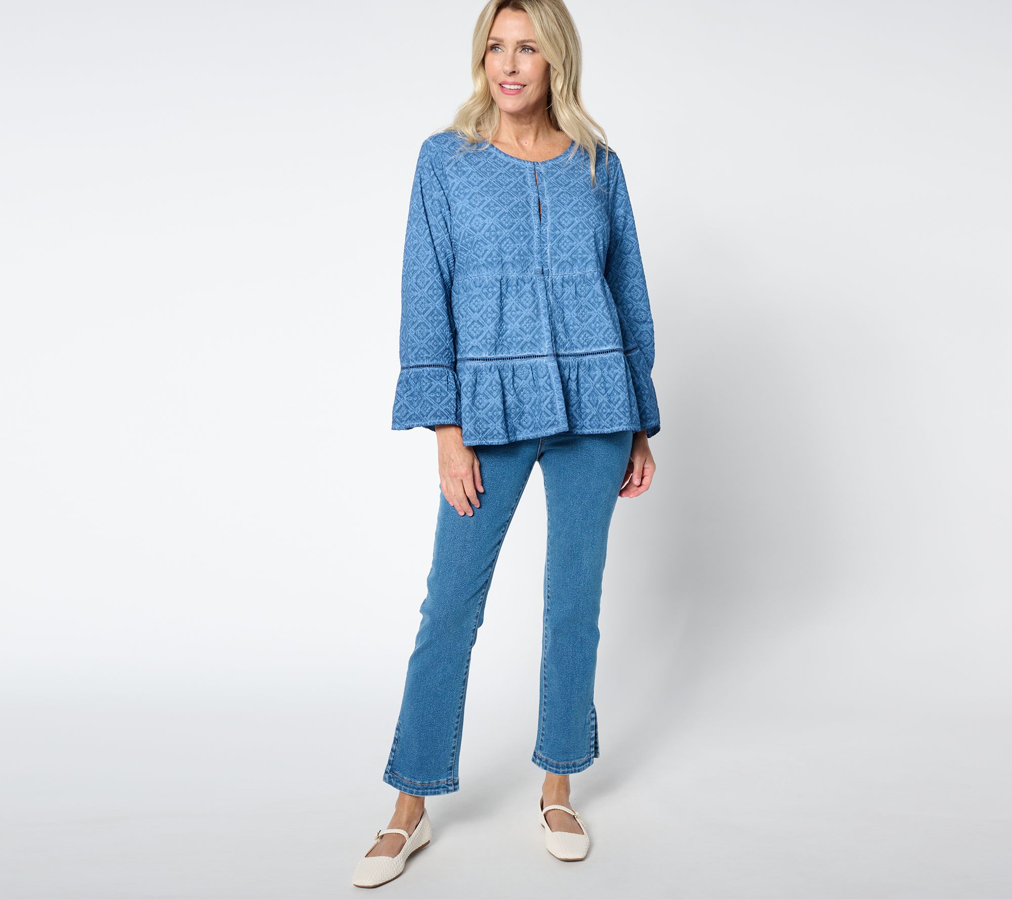 A lovely layer to add to your casual wardrobe, this bed jacket is a versatile piece that features a tiered hook-and-eye design, offering a chic and comfortable fit for any off-duty occasion. From LOGO by Lori Goldstein®.