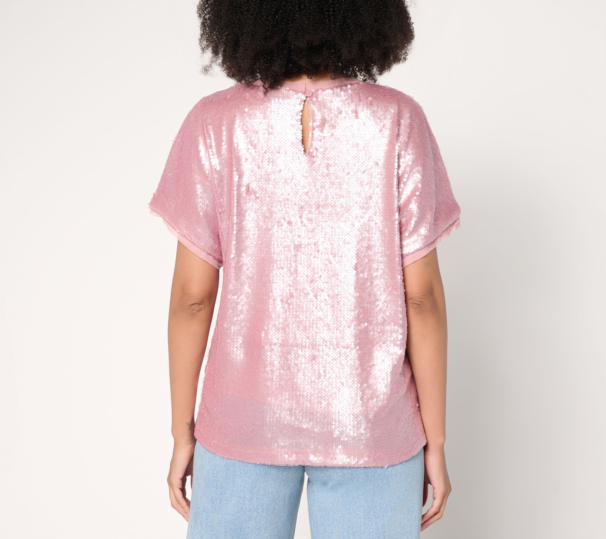 "As Is" LOGO Lavish by Lori Goldstein Short Sleeve Sequin Top