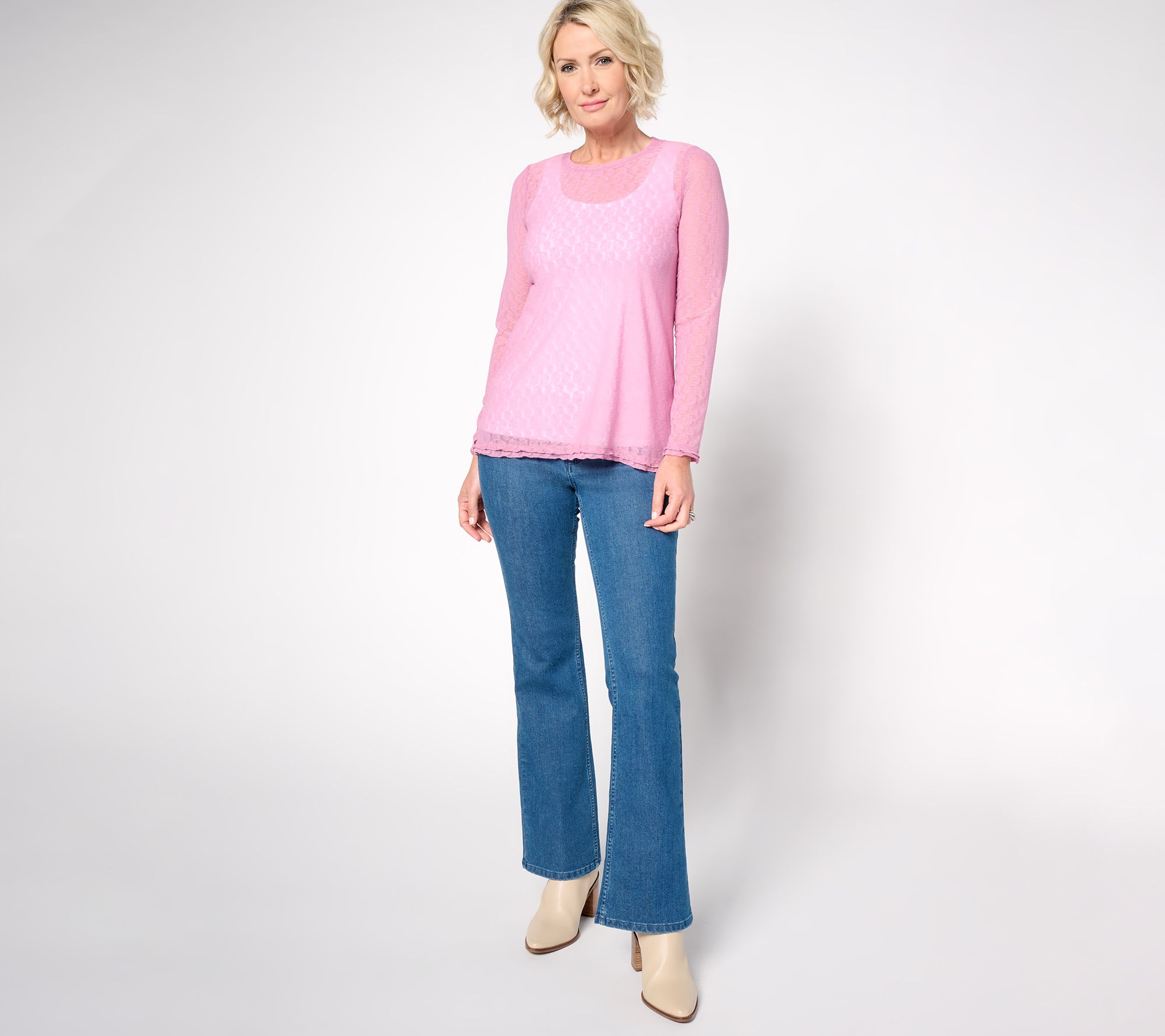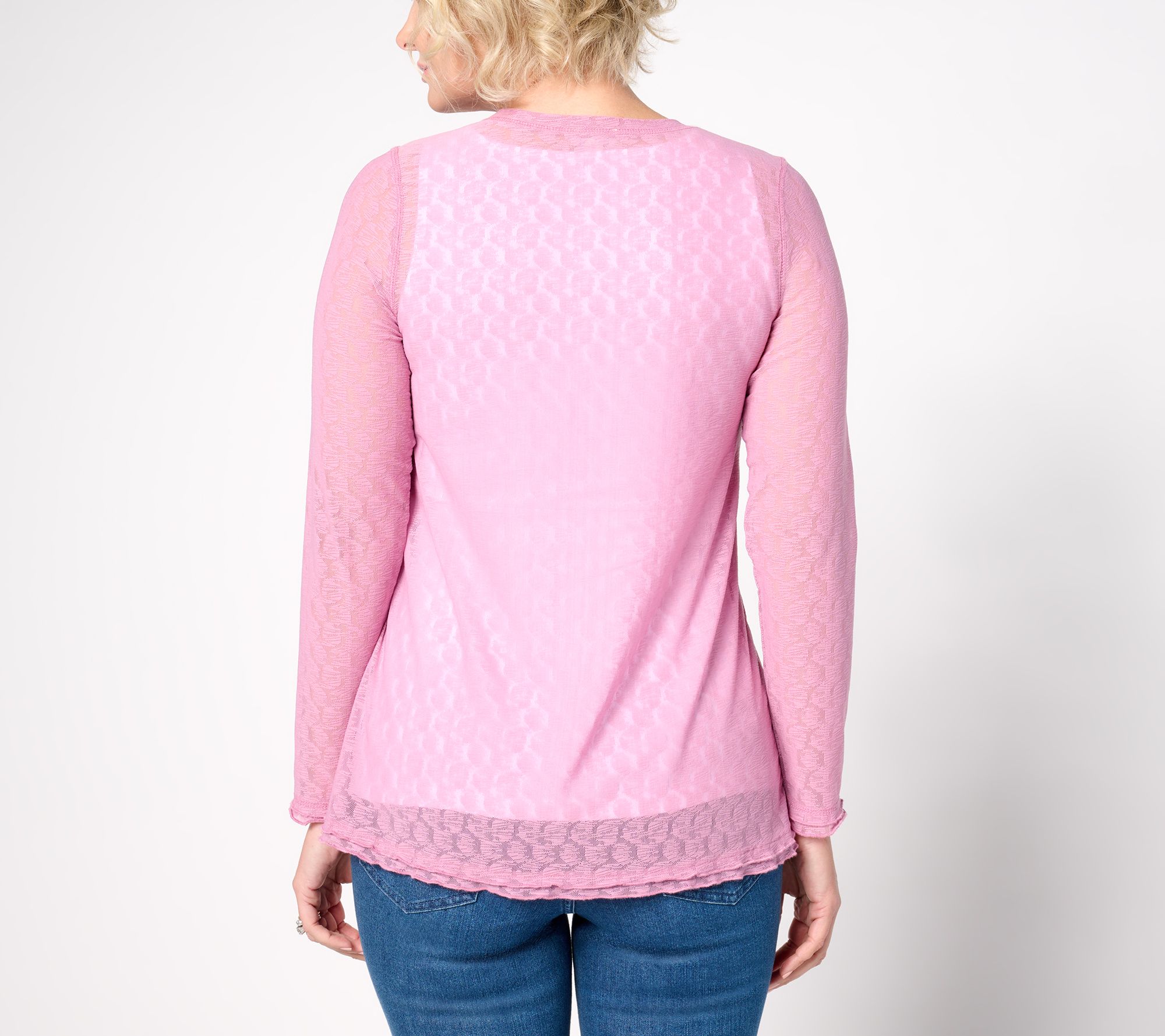 "As Is" LOGO Layers by Lori Goldstein Crew Neck Long Sleeve Mesh Top