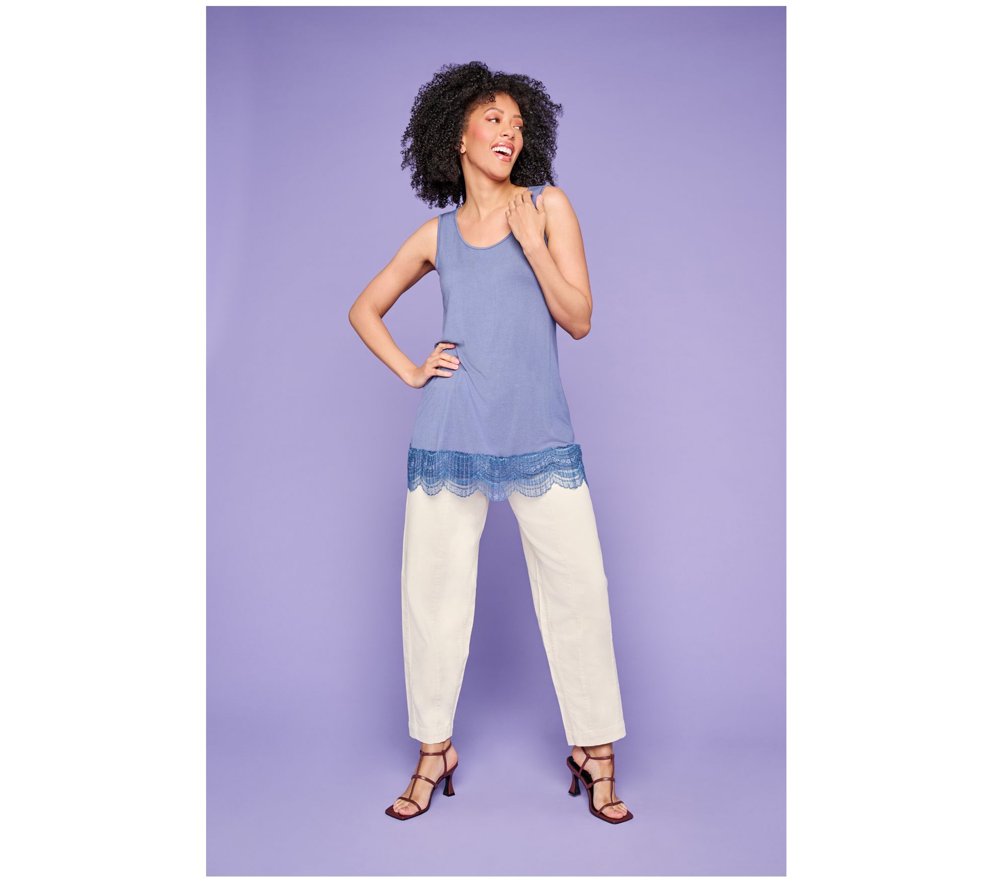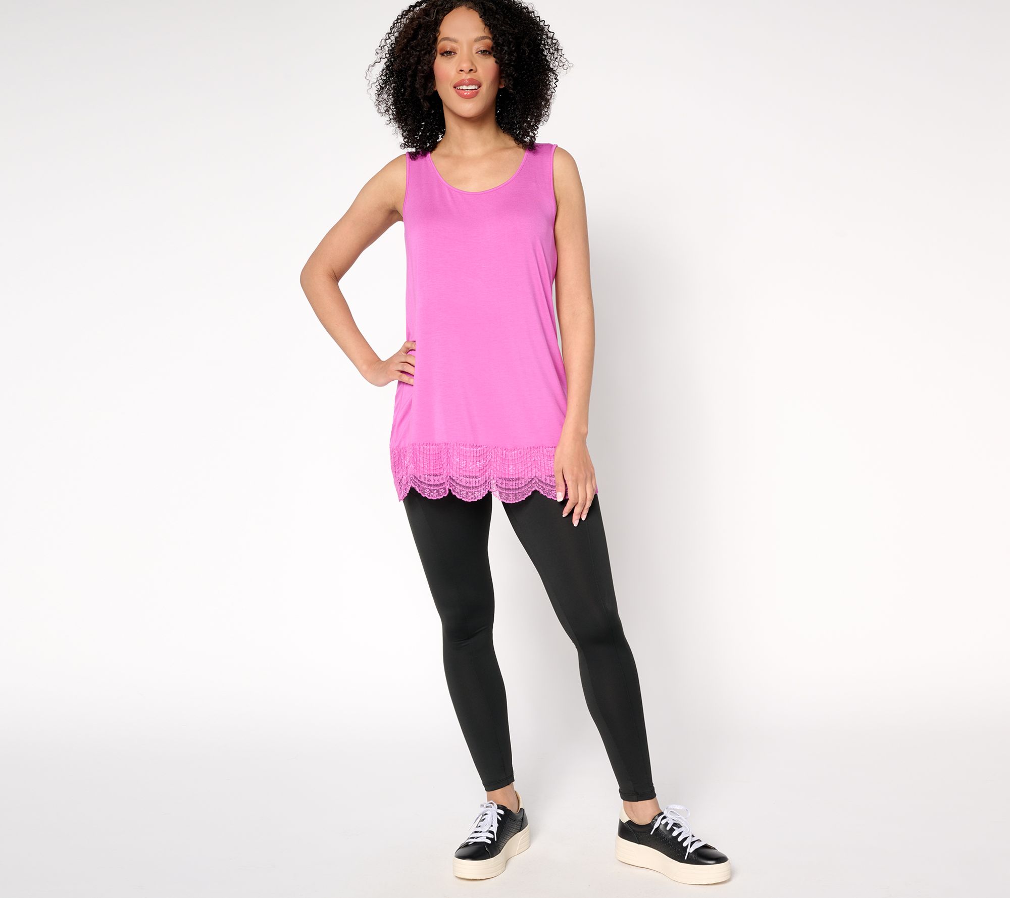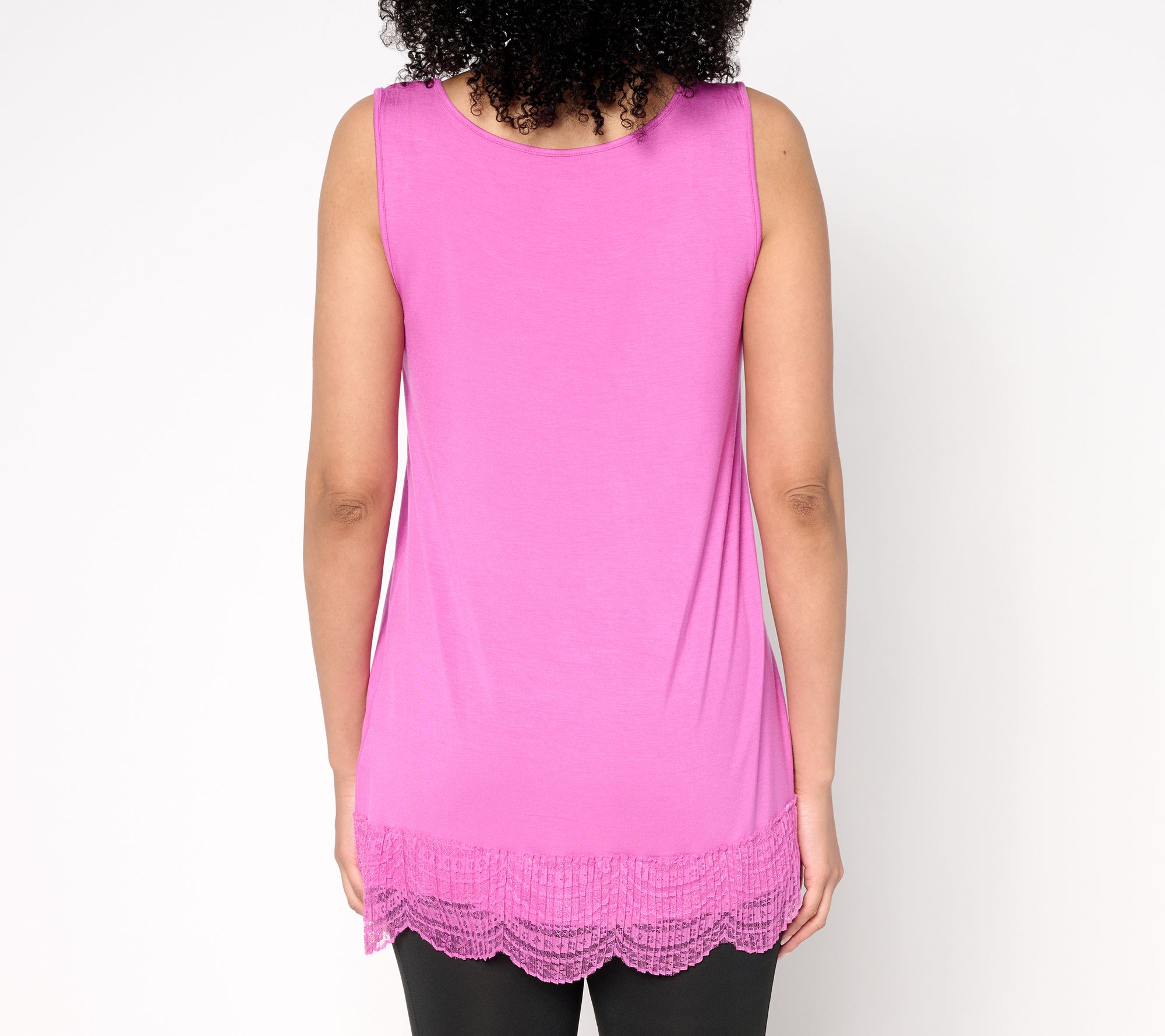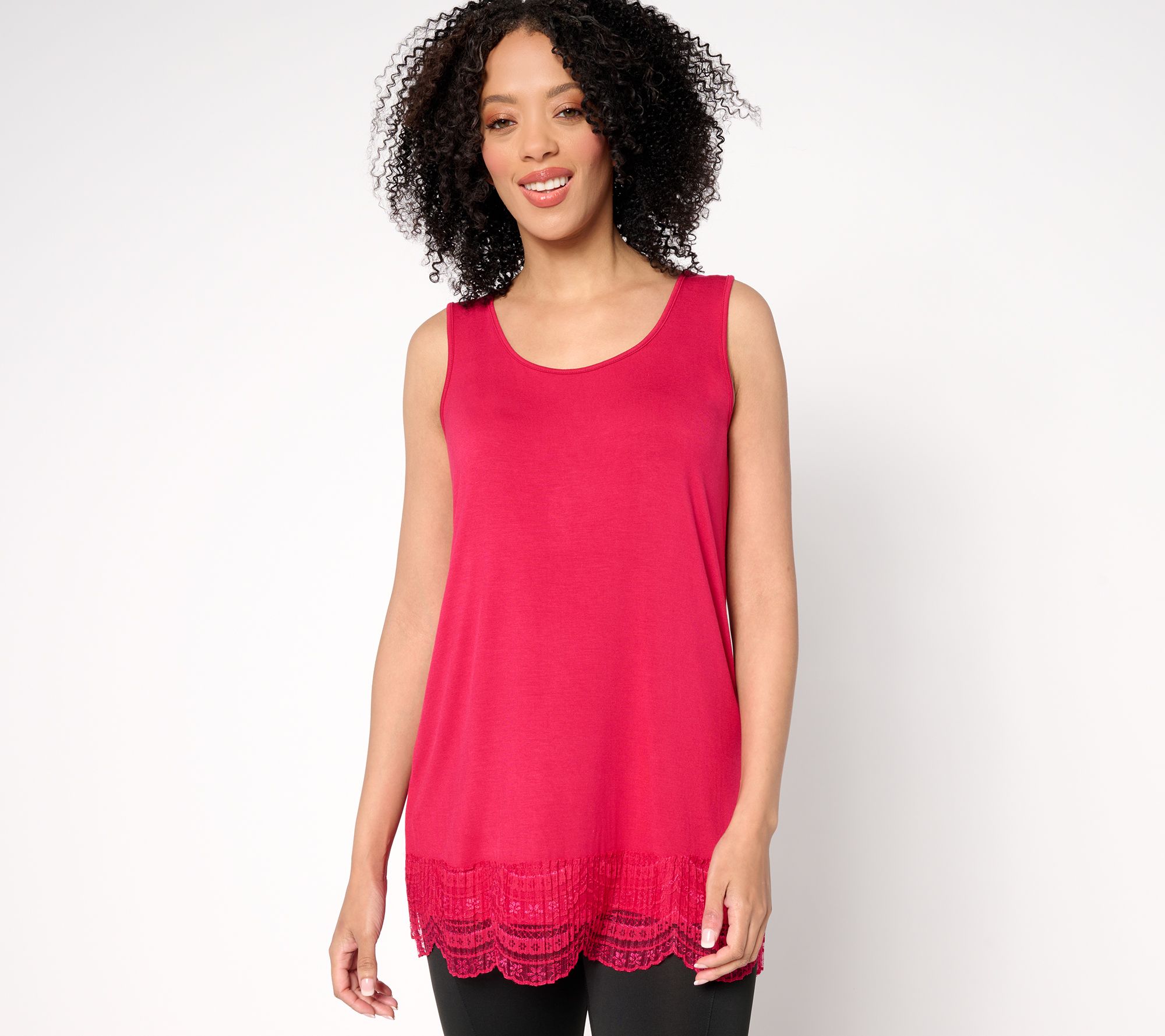 Layer on a lovely lace look with this LOGO Layers knit tank. The sleeveless style works well with jackets, cardigans, and more, while the scalloped lace trim adds a feminine touch you'll adore. From LOGO by Lori Goldstein®.
