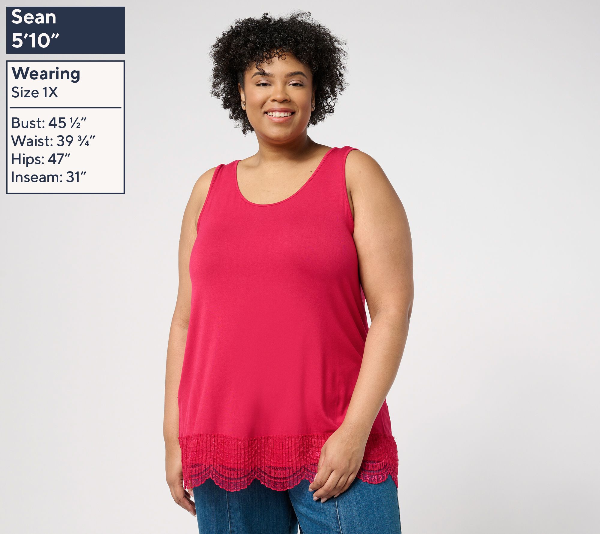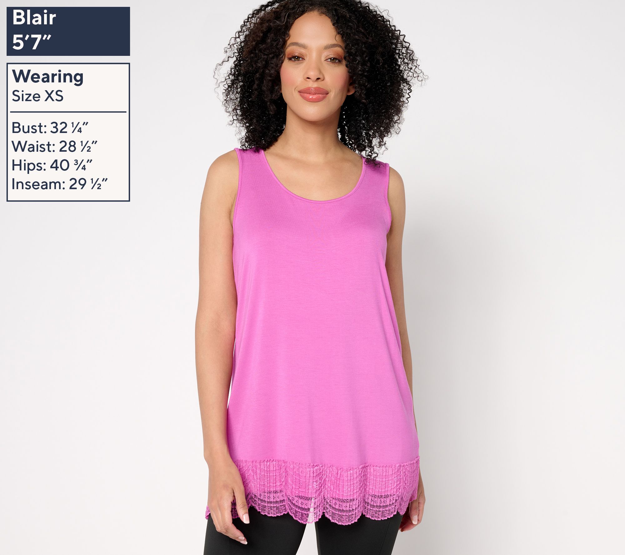 • Features: sleeveless tank, scalloped lace along bottom hem