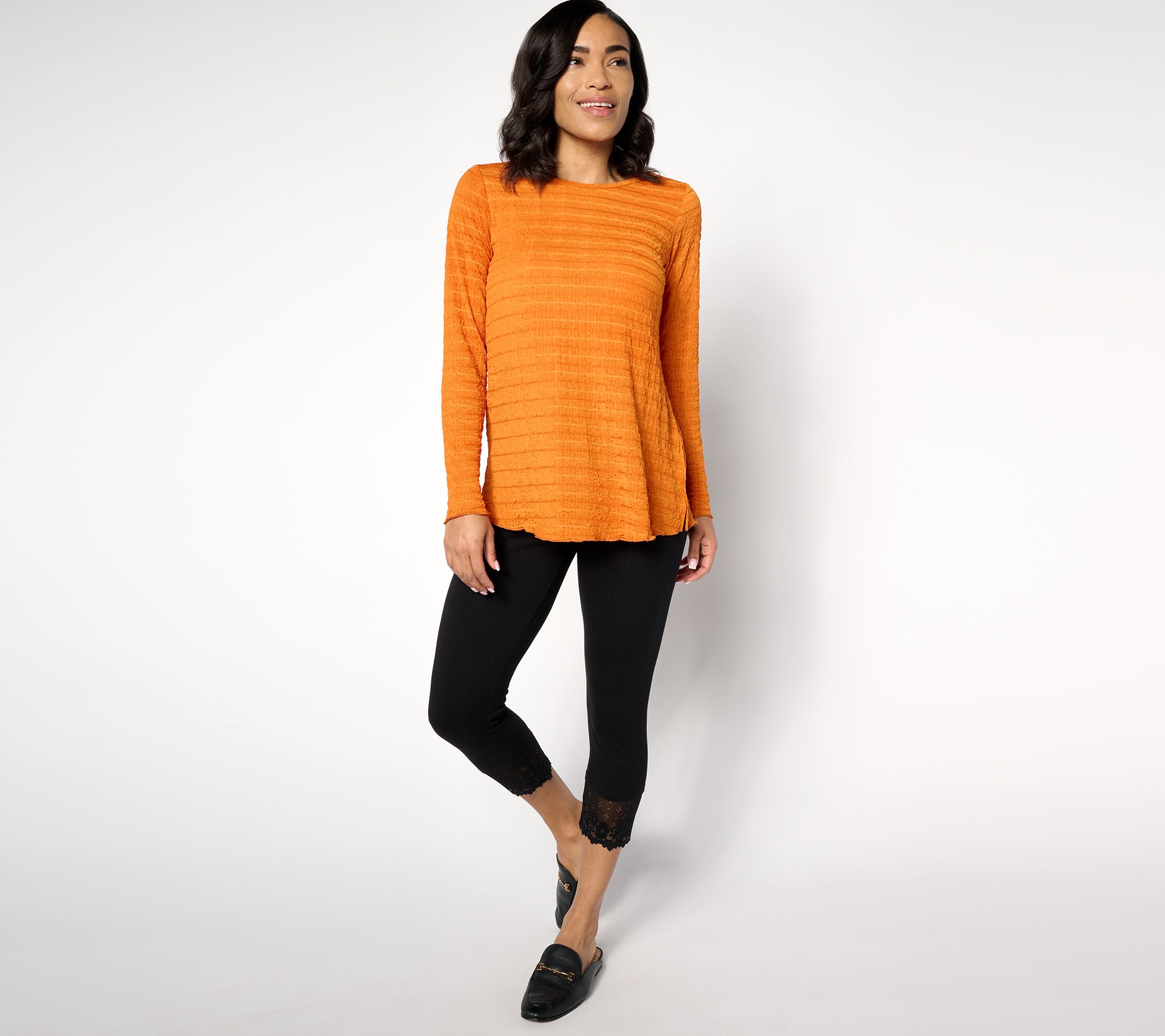 Leave it to Lori to kick up any casual look. This long-sleeve crew-neck top is an essential element for your weekend wardrobe. Add a statement necklace, slacks, and ankle boots... and you're off to the office! From LOGO by Lori Goldstein®.