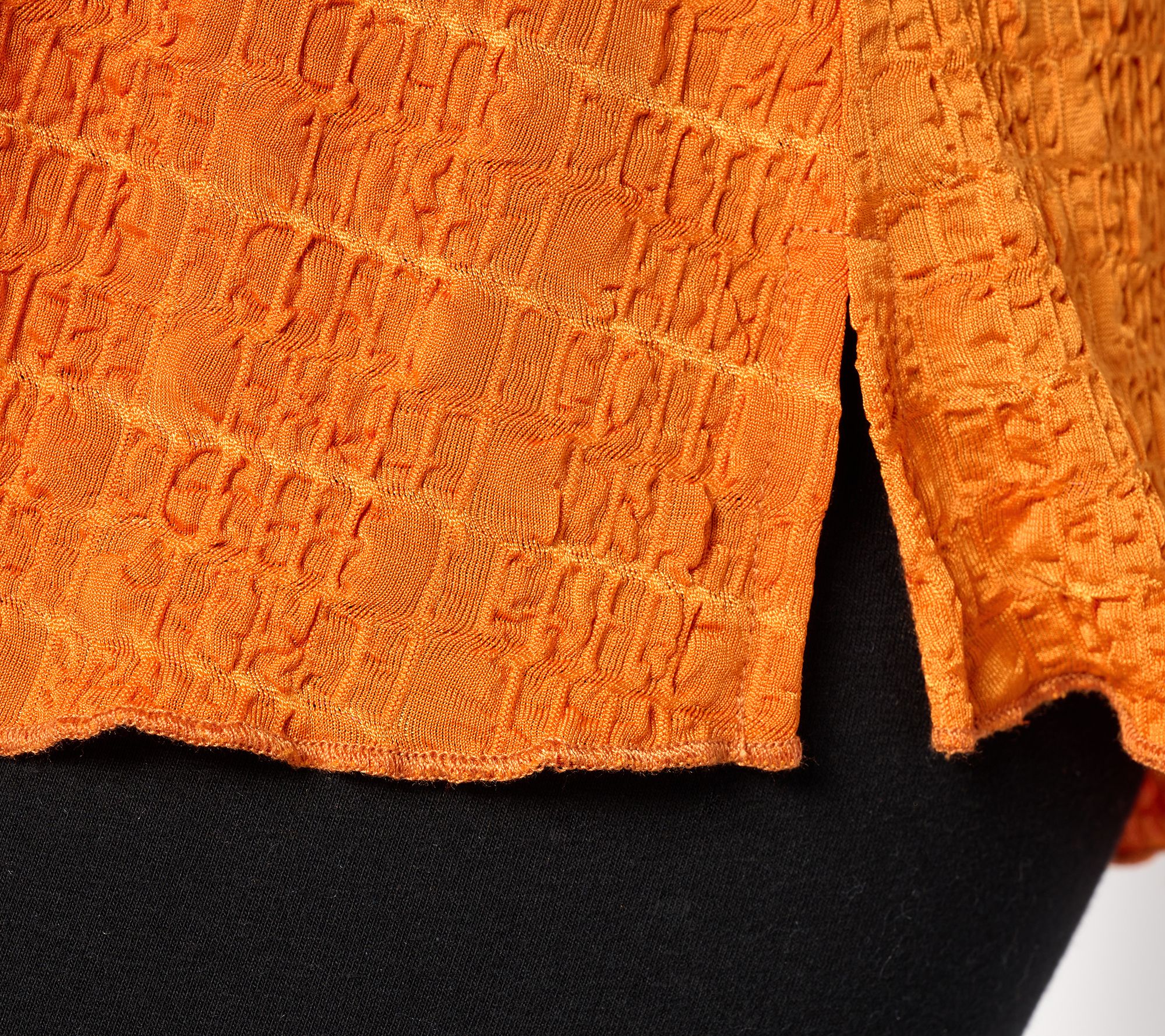 • Features: long sleeves, crew neckline, neck binding, side slits