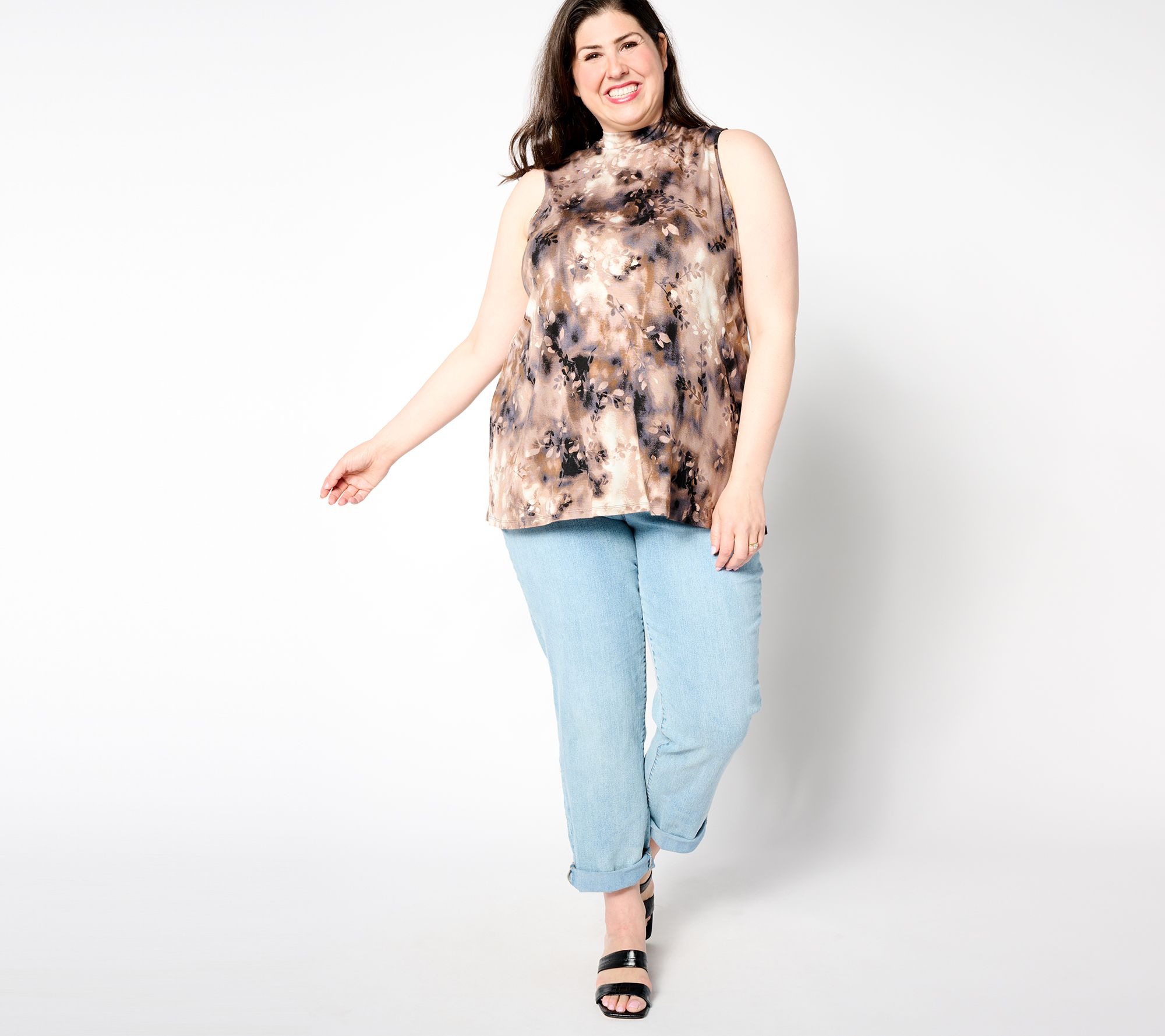"As Is" LOGO Layers by Lori Goldstein Mock Neck Printed Mesh Tank
