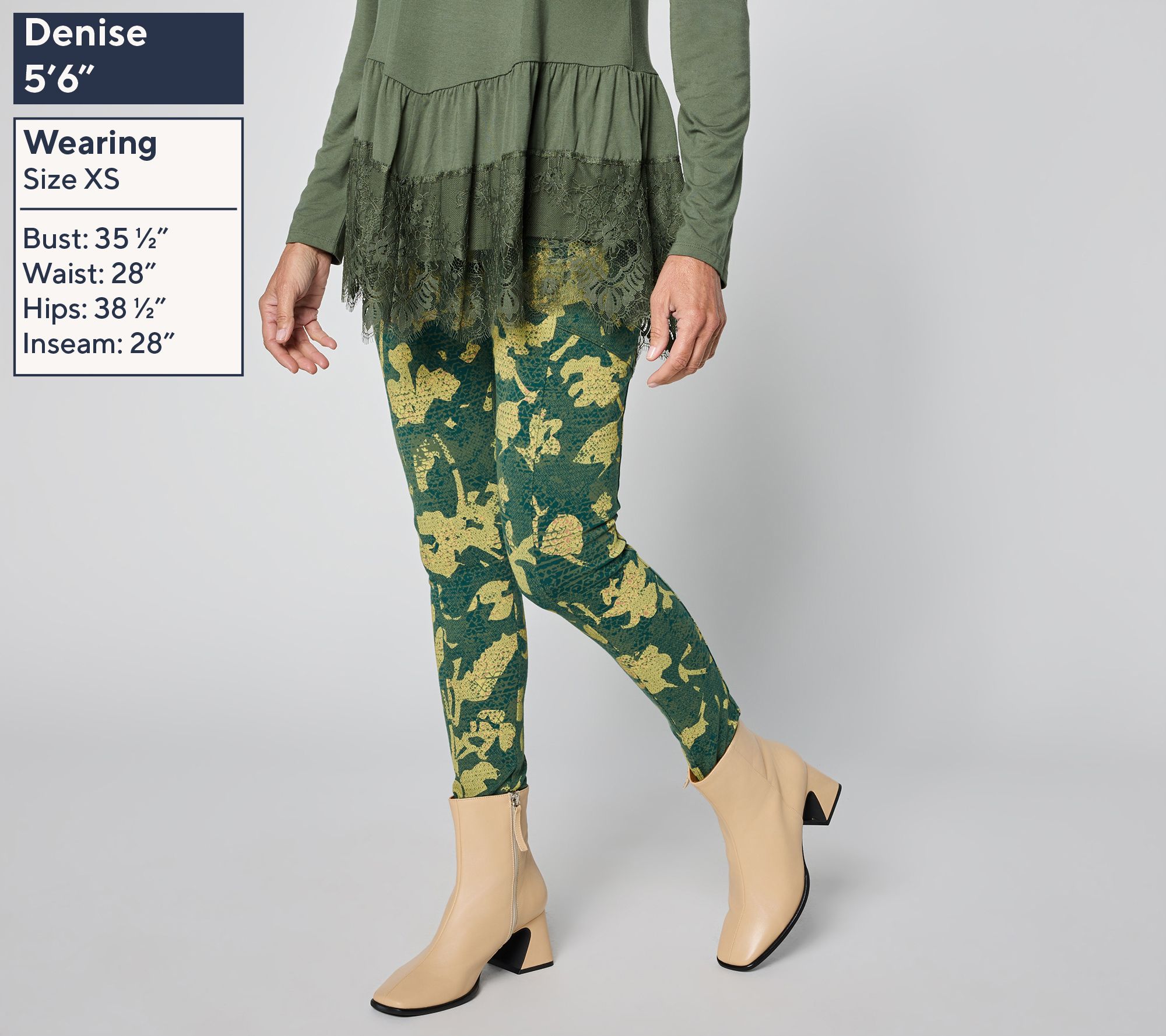 Ready to brighten your day, these printed leggings offer bold style whether you're heading to yoga class or relaxing on the weekend. Their fitted shape flatters your figure while giving comfortable stretch, making them easy to pair with oversized sweaters or tunics for a laid-back look. From LOGO Layers by Lori Goldstein®.