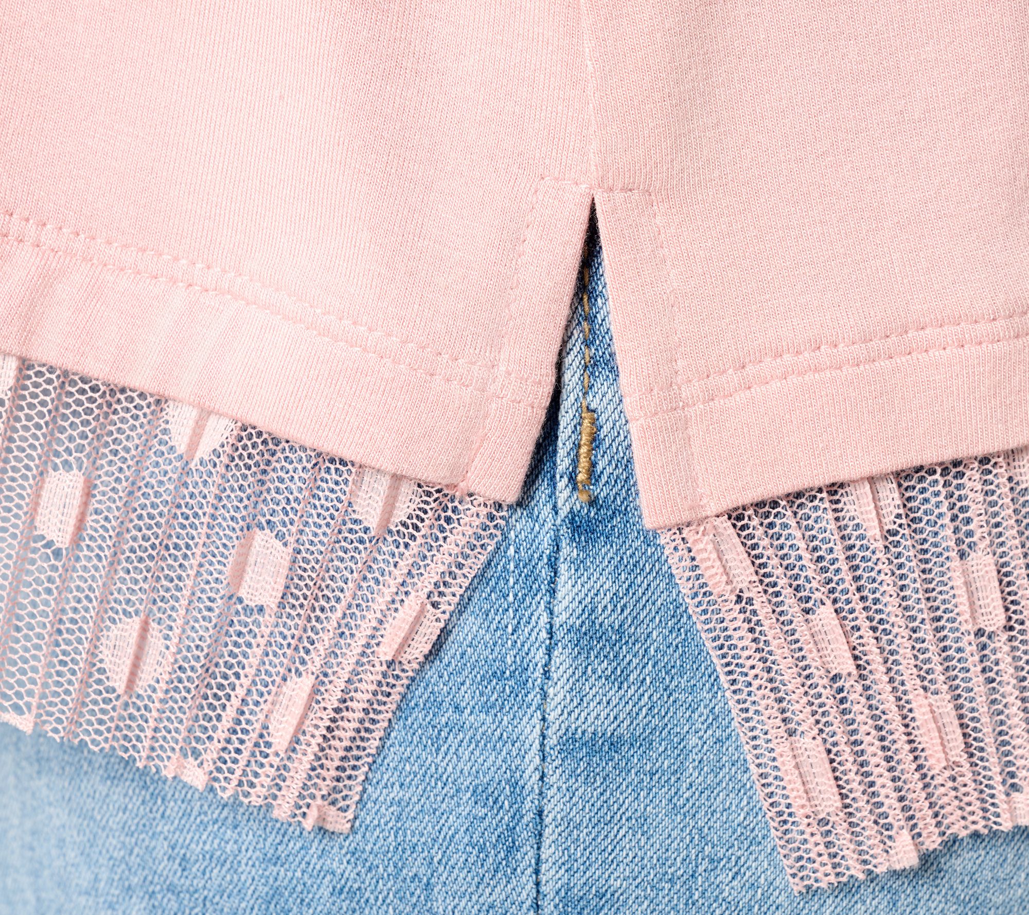 • Features: short sleeves, mesh lace along bottom of the hem, crew neck, straight hemline