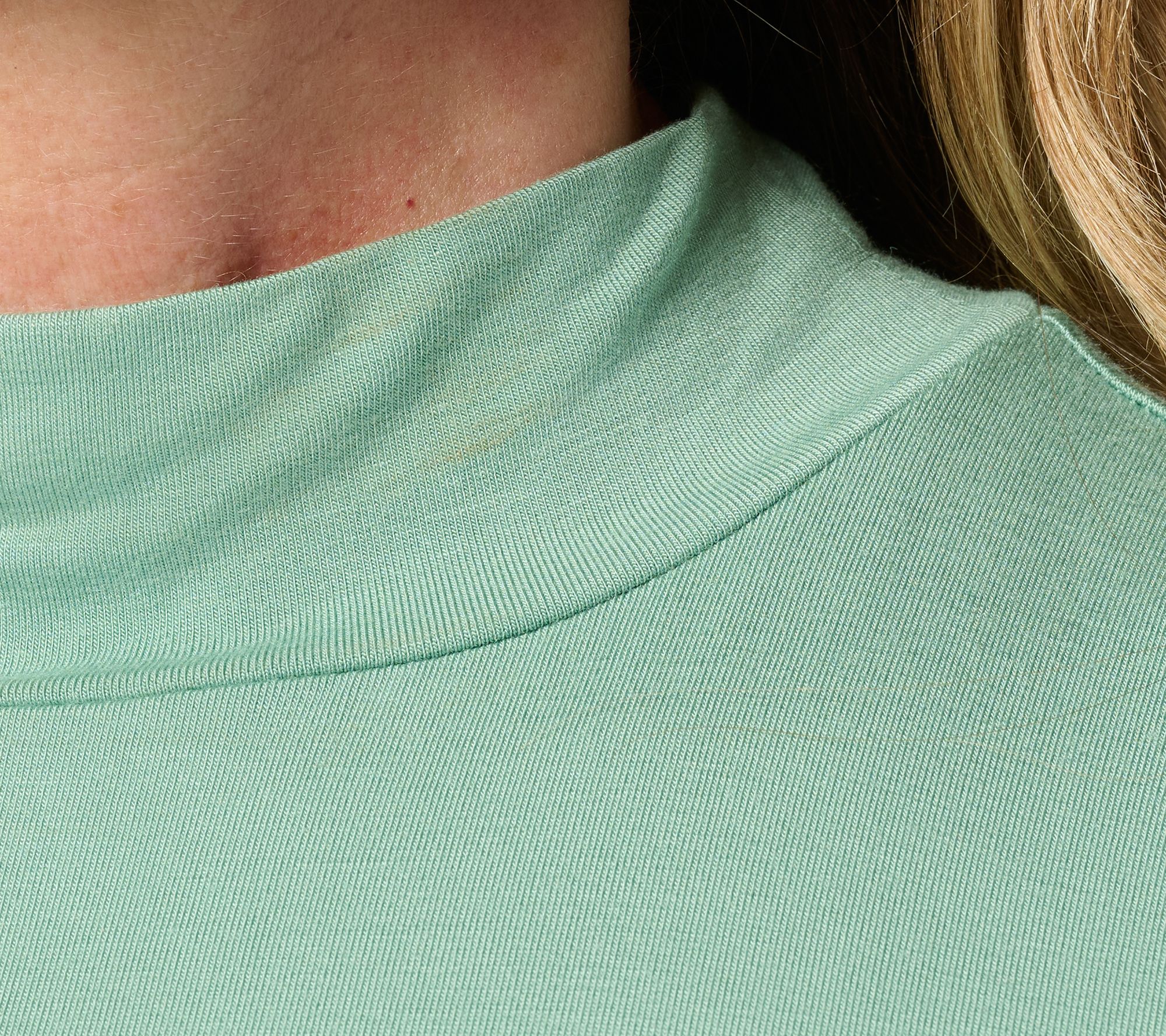 • Features: mock neck, sleeveless design, flares to A-line bottom opening
