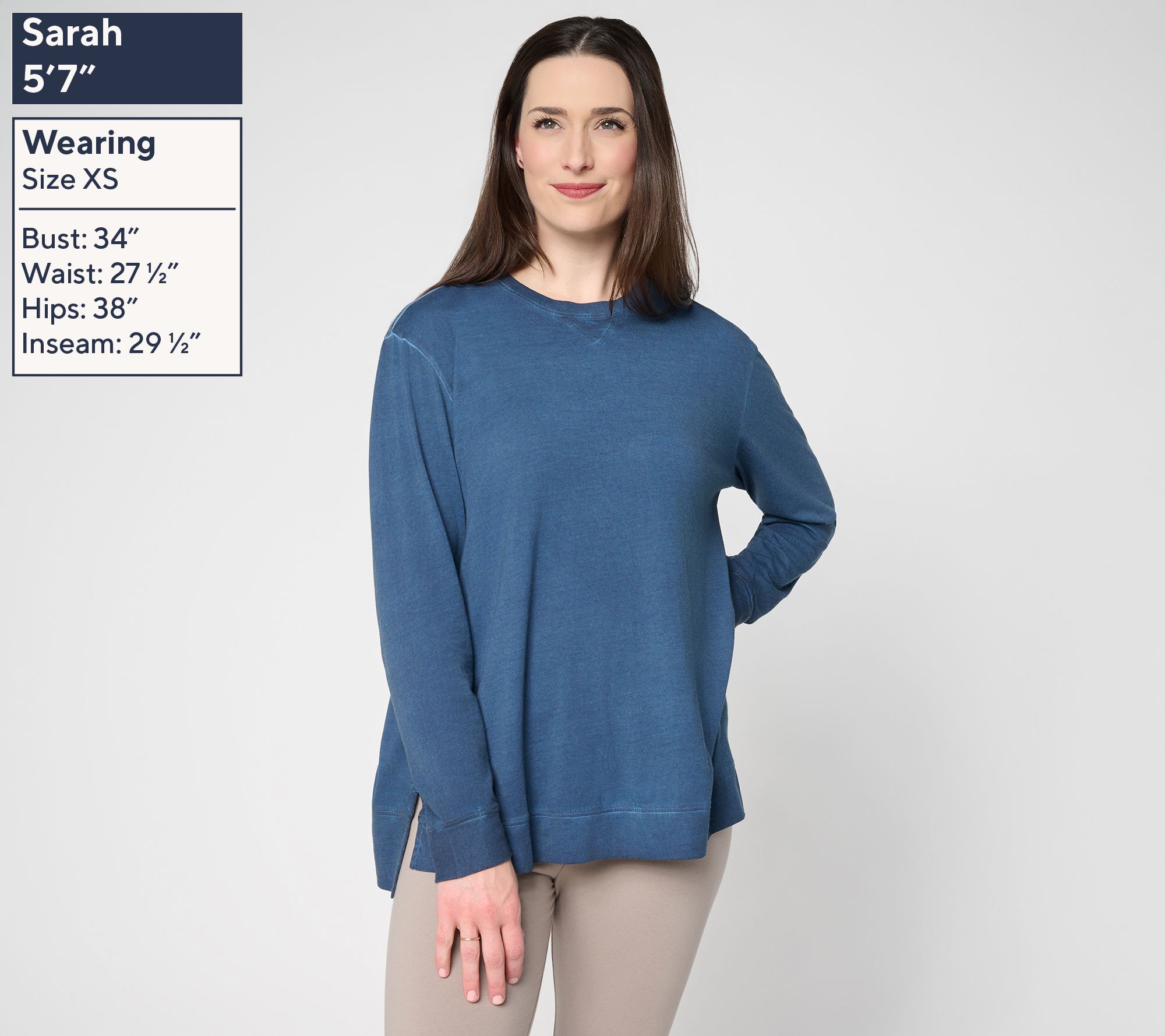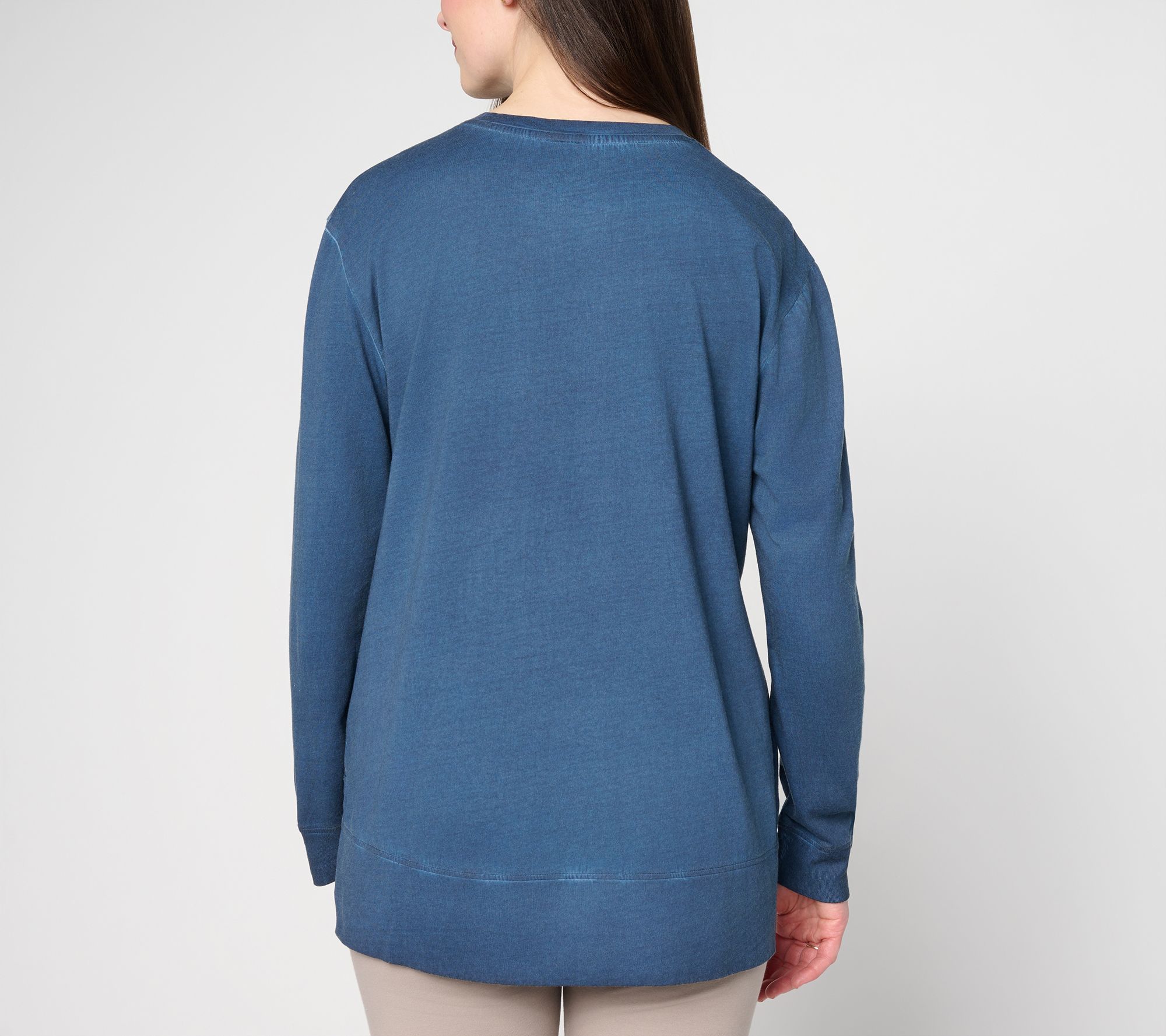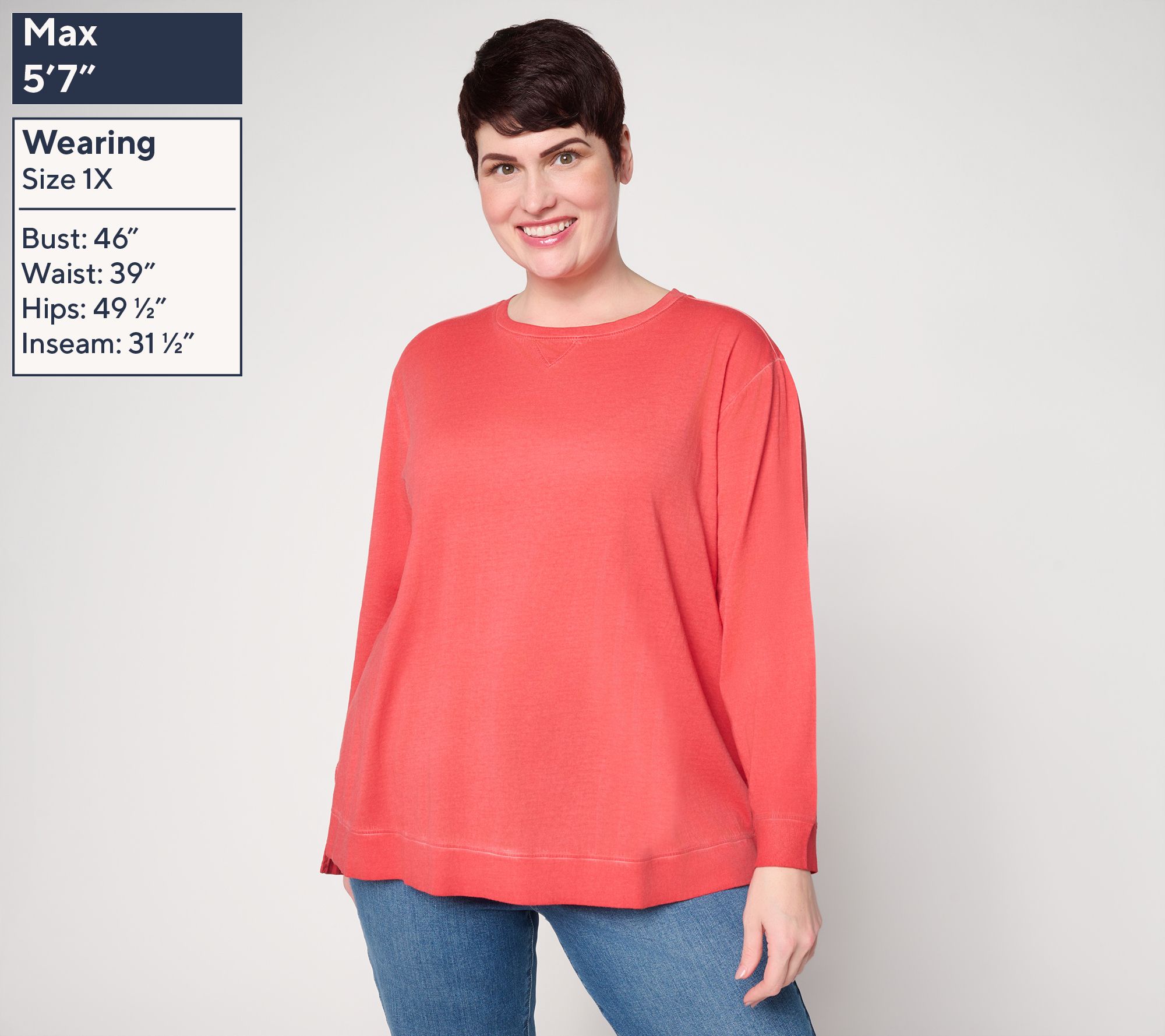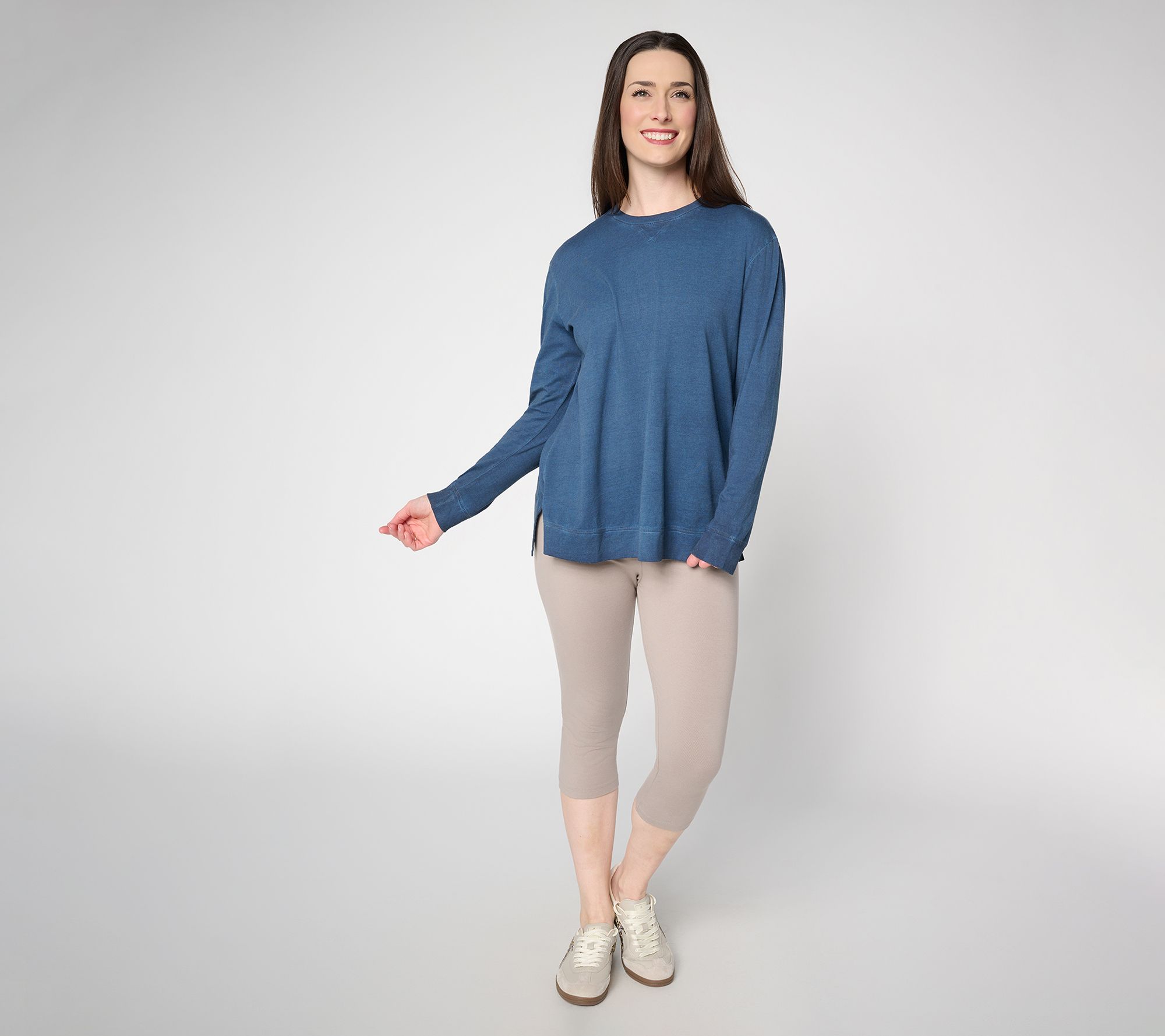 Casual days call for easy comfort -- this knit top delivers with a dye effect that adds a fresh twist to your weekend rotation. Soft cotton-modal drapes gently, while cuffed long sleeves lend a relaxed vibe, ready for school drop-offs, brunches, or just unwinding at home. From From LOGO Principles by Lori Goldstein®.