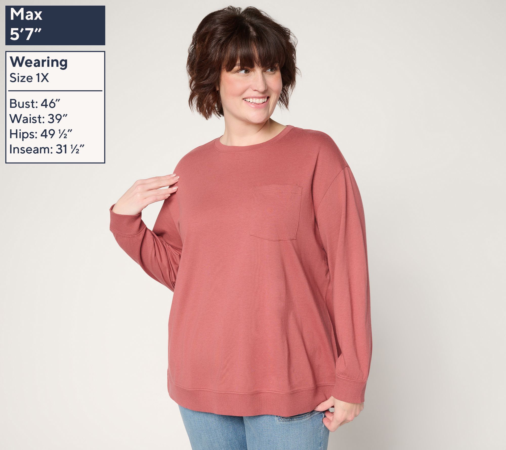 Layer on comfort and casual flair with this long-sleeve top, designed for those days when you want a relaxed look that still has thoughtful details. Ribbed cuffs and hem add soft texture, while the chest pocket is a handy touch, making it easy to pair with your favorite jeans for weekday errands or laid-back afternoons. From LOGO Principles by Lori Goldstein®.