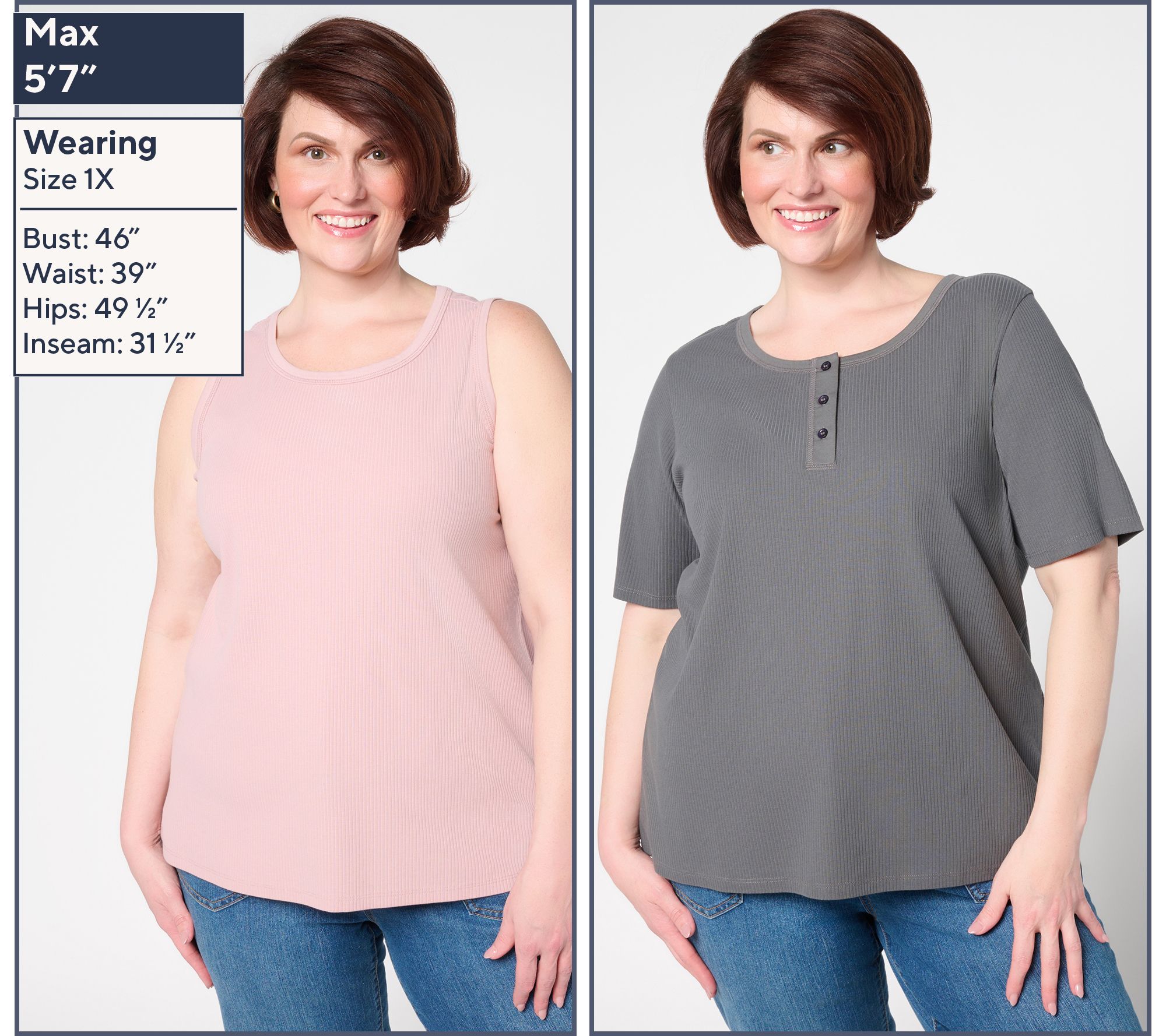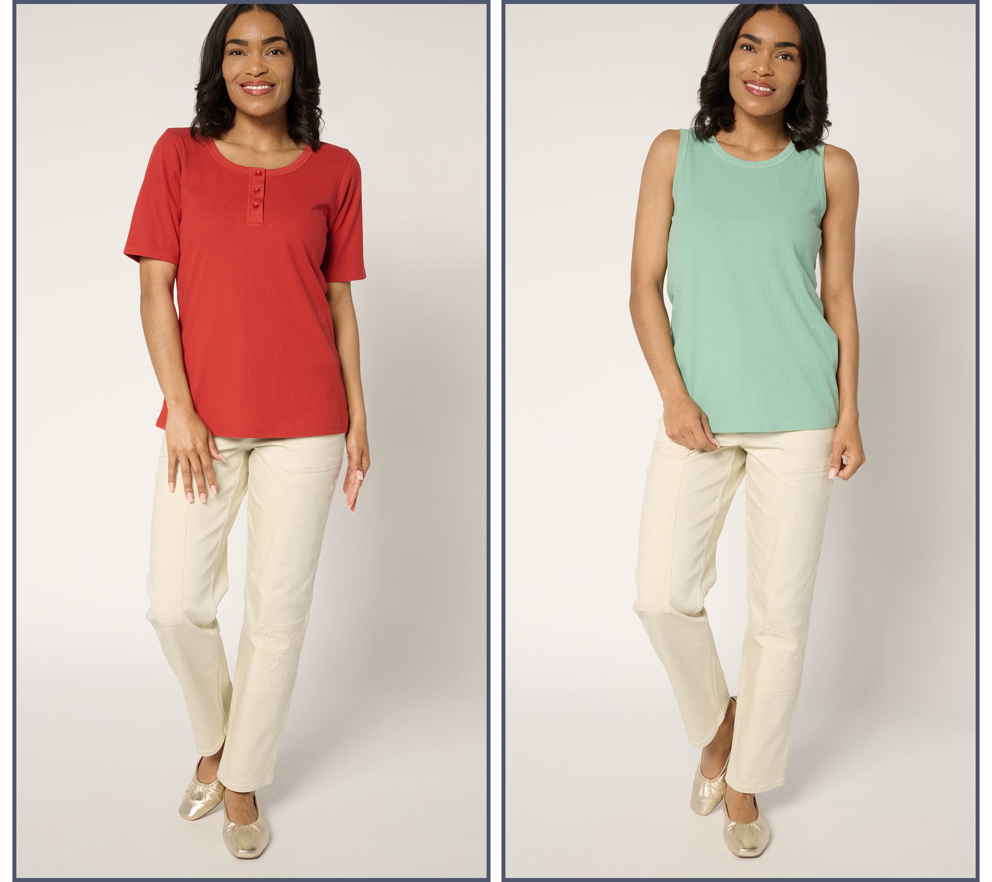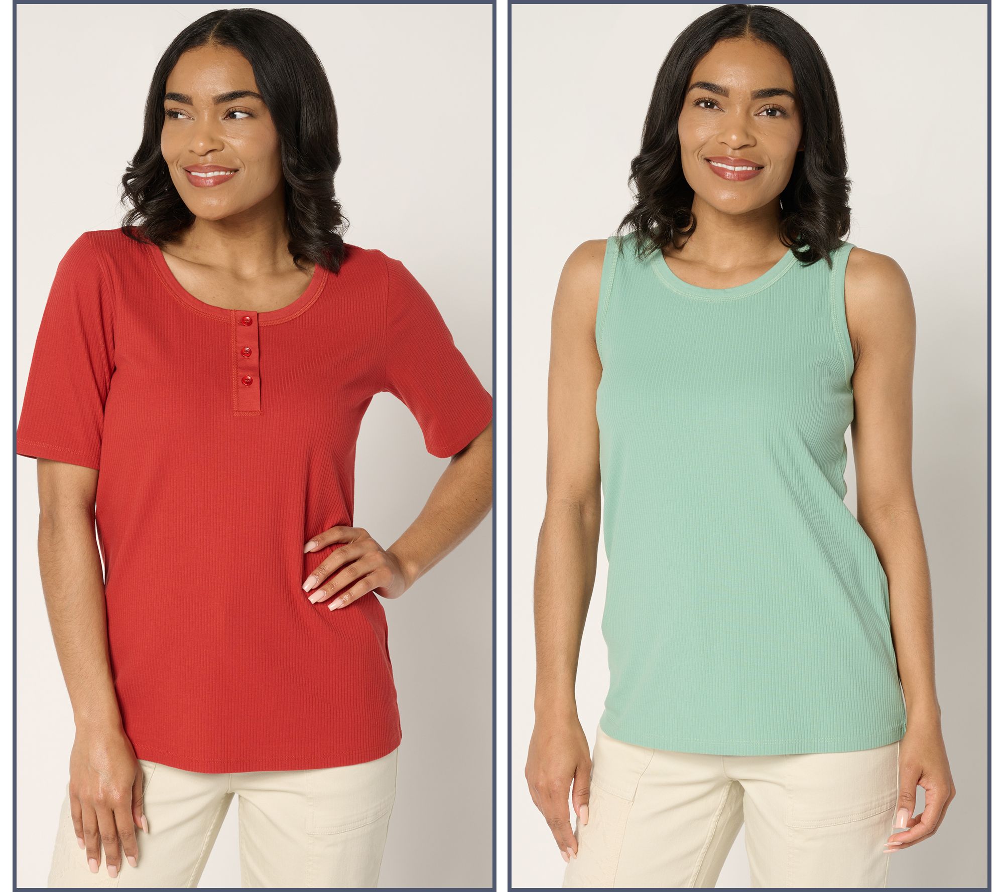 Refresh your go-tos! Ideal for layering or wearing solo, this two-piece set includes a sleeveless tank and a short-sleeve henley in a delightfully soft rib knit. From LOGO by Lori Goldstein®.