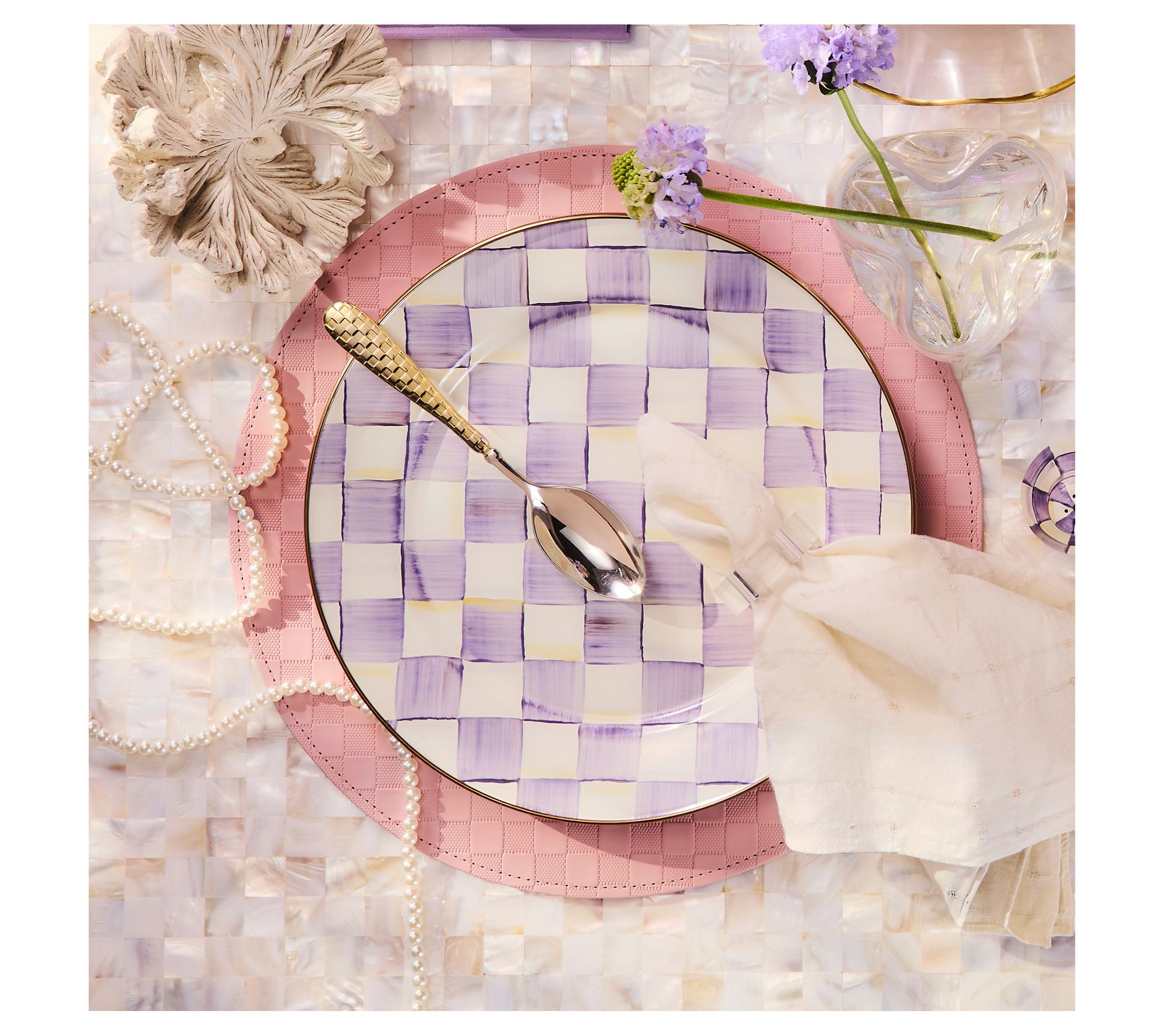 Make your memorable meals pop and set each place with these Violet Check chargers. (Then again, why not use their whimsical magic on your weekday menu, too?!) From MacKenzie-Childs.