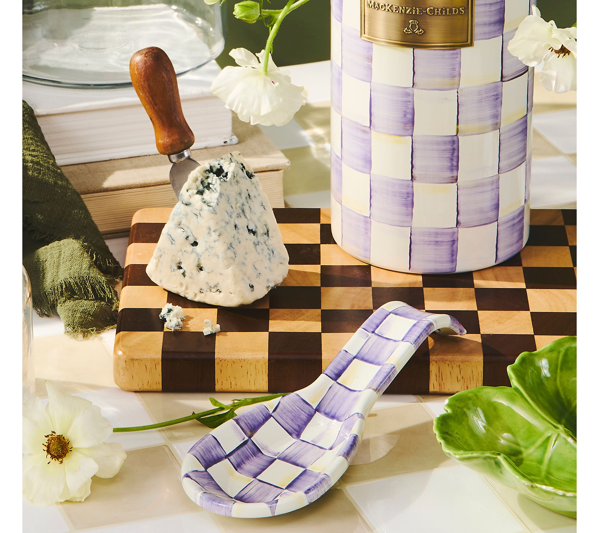 "As Is" MacKenzie - Childs Violet Check Enamel Spoon Rest