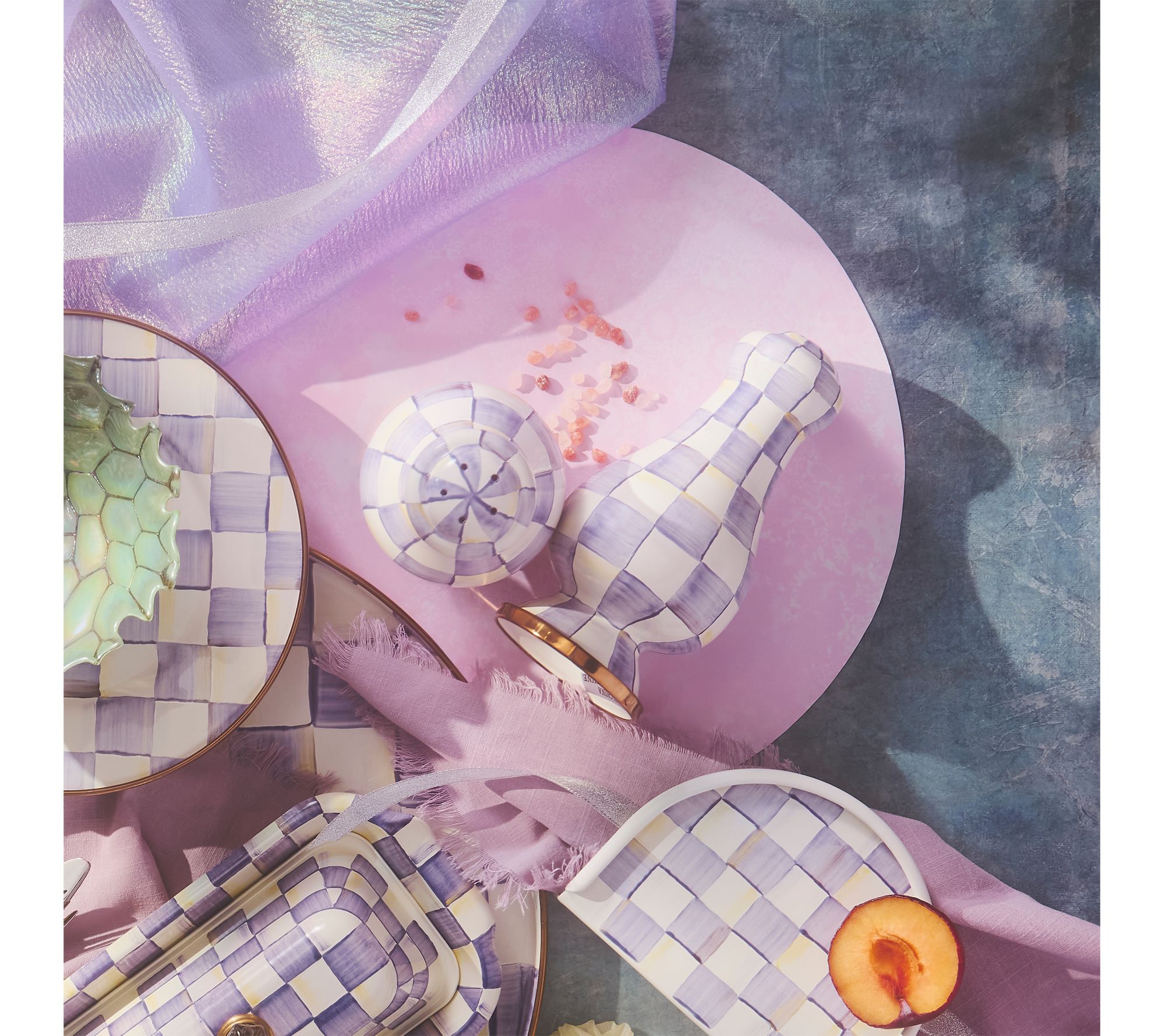 "As Is" MacKenzie - Childs Violet Check Salt & Pepper Shakers