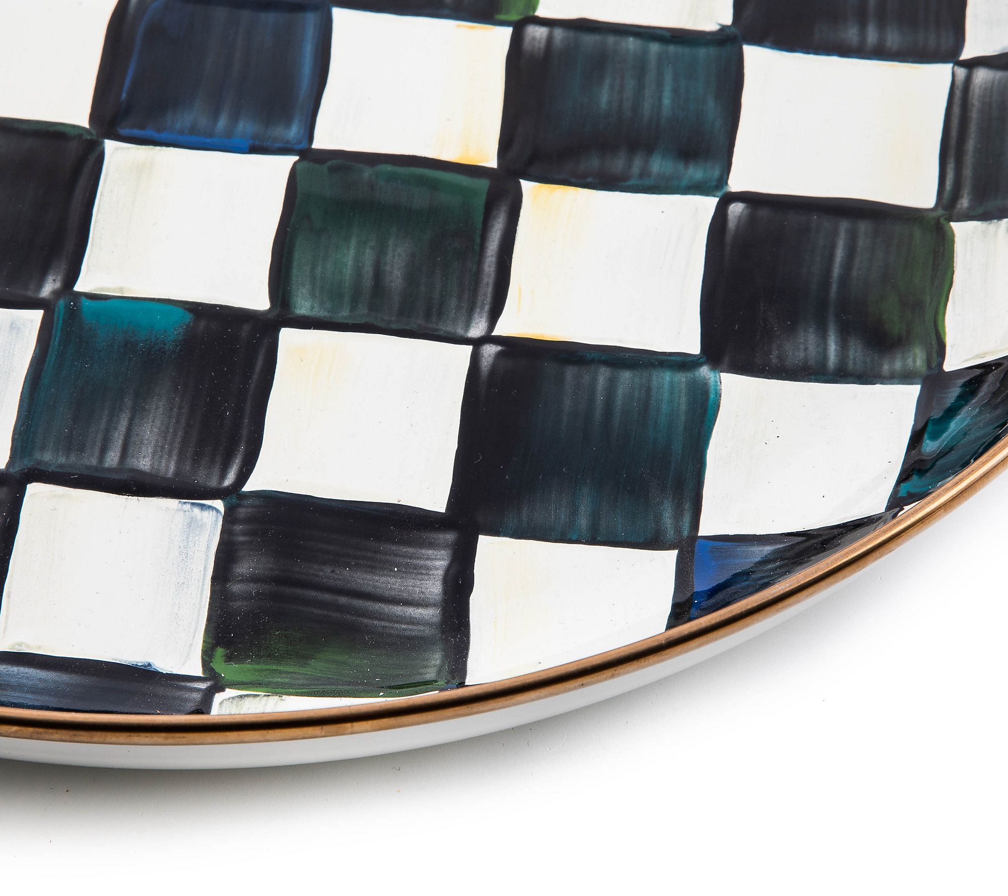 Serve in style with this chic hand-painted bowl. Upturned edges are handy for presentation, and the whimsical checked pattern makes this Mackenzie-Childs piece instantly recognizable. From Mackenzie-Childs.