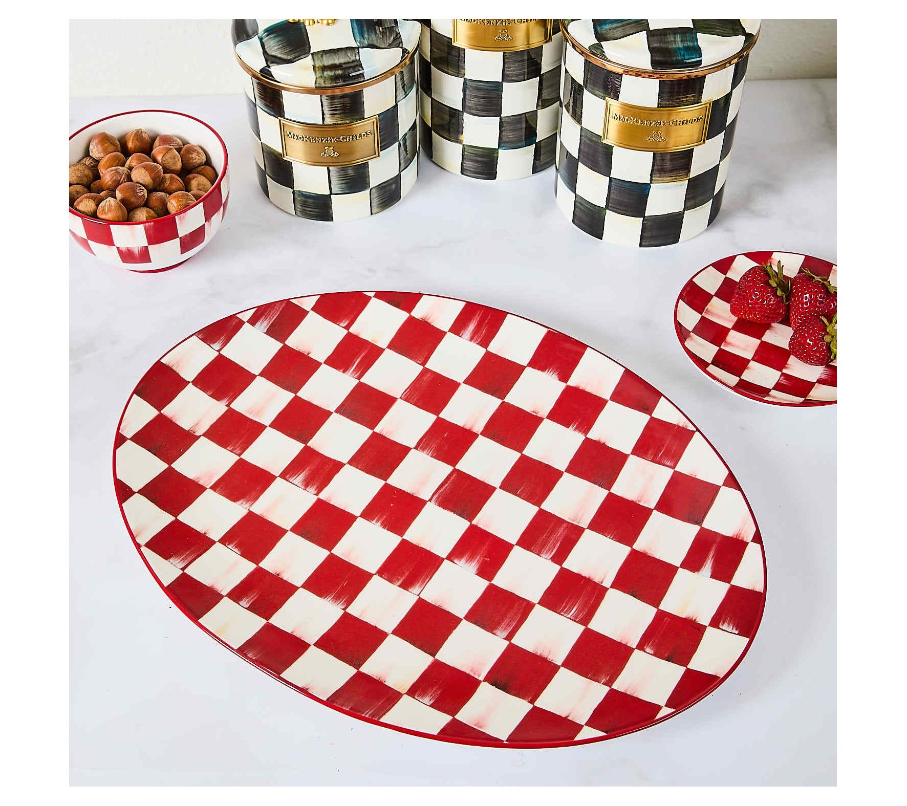 "As Is" MacKenzie- Childs Cherry Check Oval Serving Platter