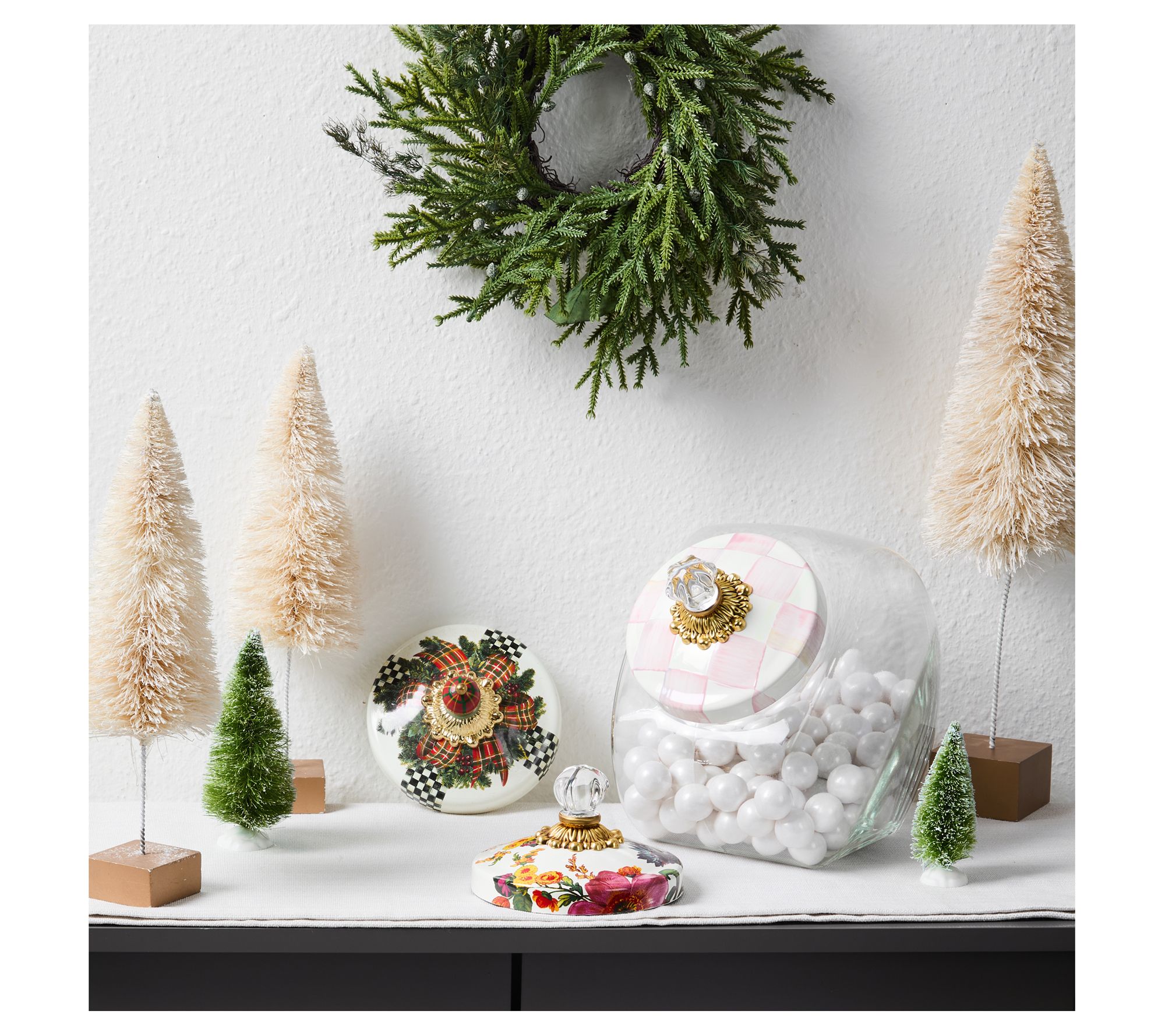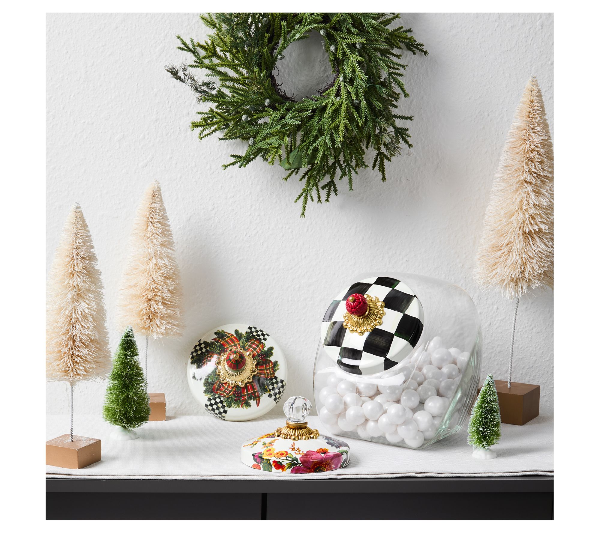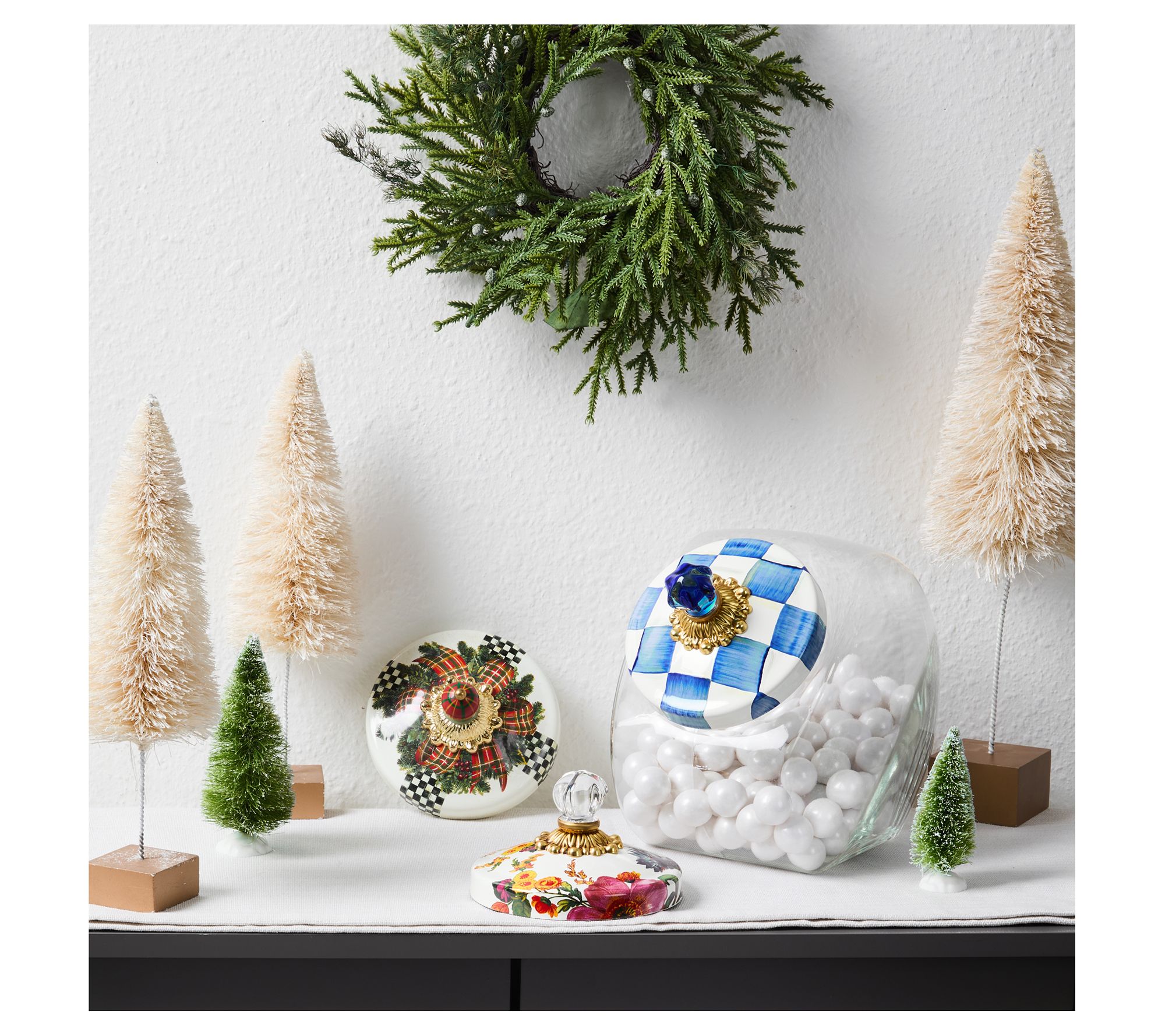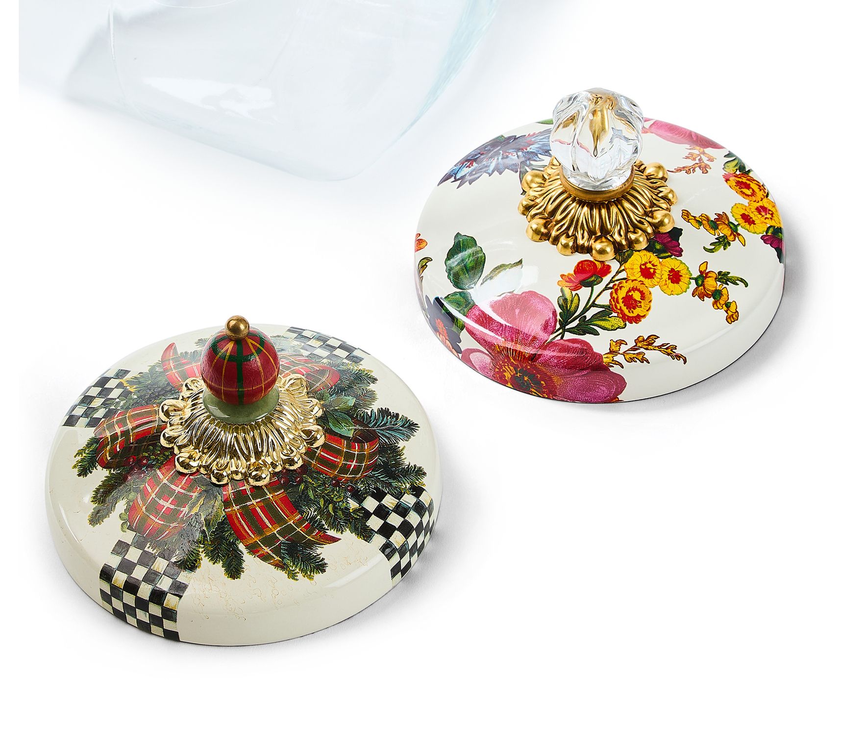 Hosting the next cookie exchange or simply adding a dash of whimsy to your countertop, this cookie jar set is sure to spark conversation. Switch up the lid to fit your mood -- festive, floral, or classic check -- while the generous glass jar keeps all your baked treats easy to grab (or sneak!). From MacKenzie-Childs.
