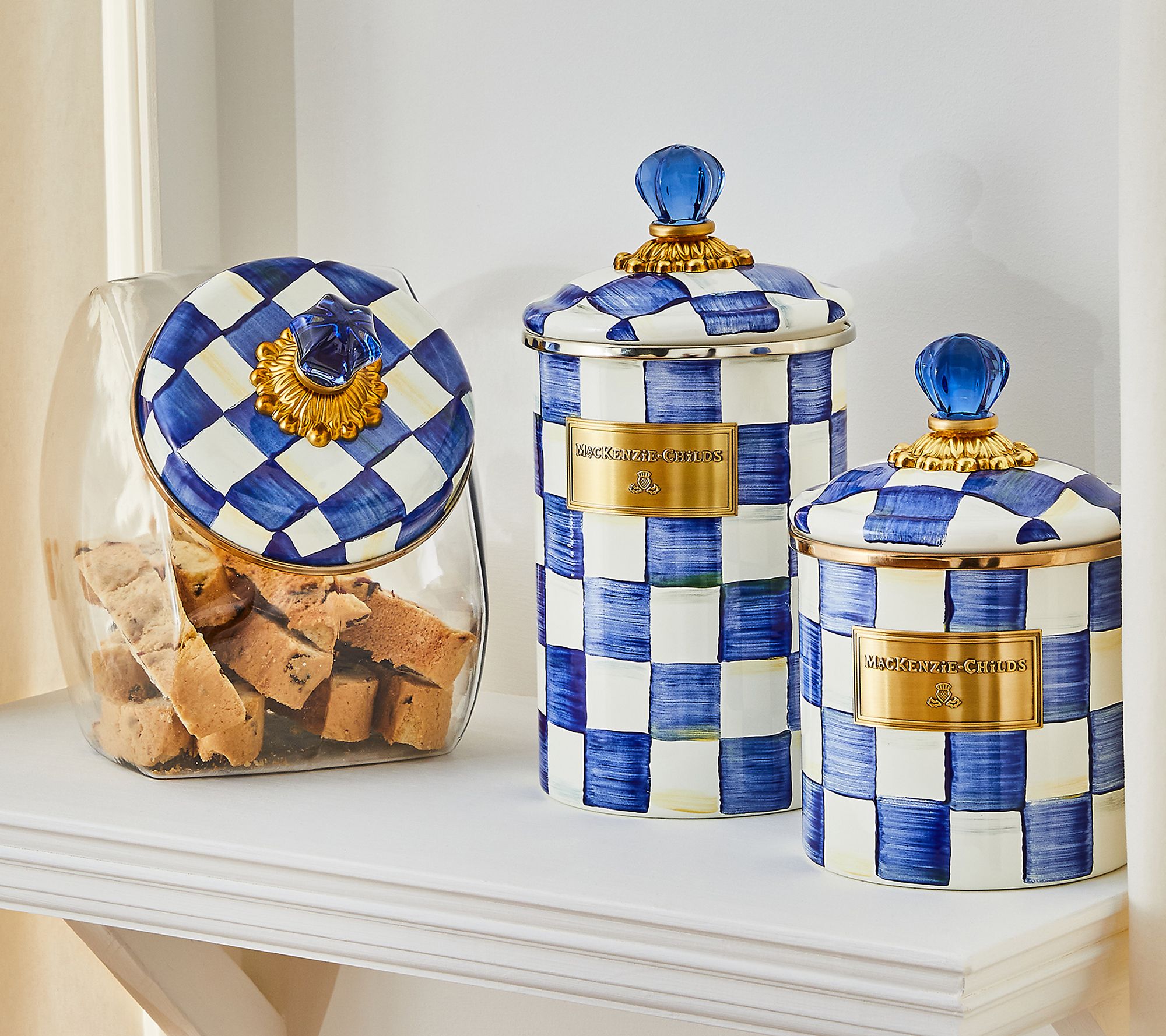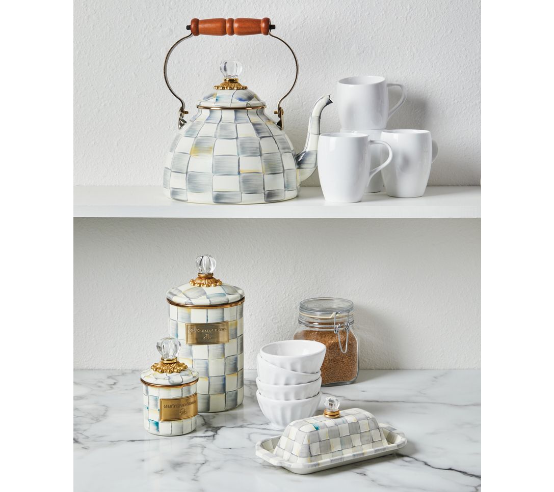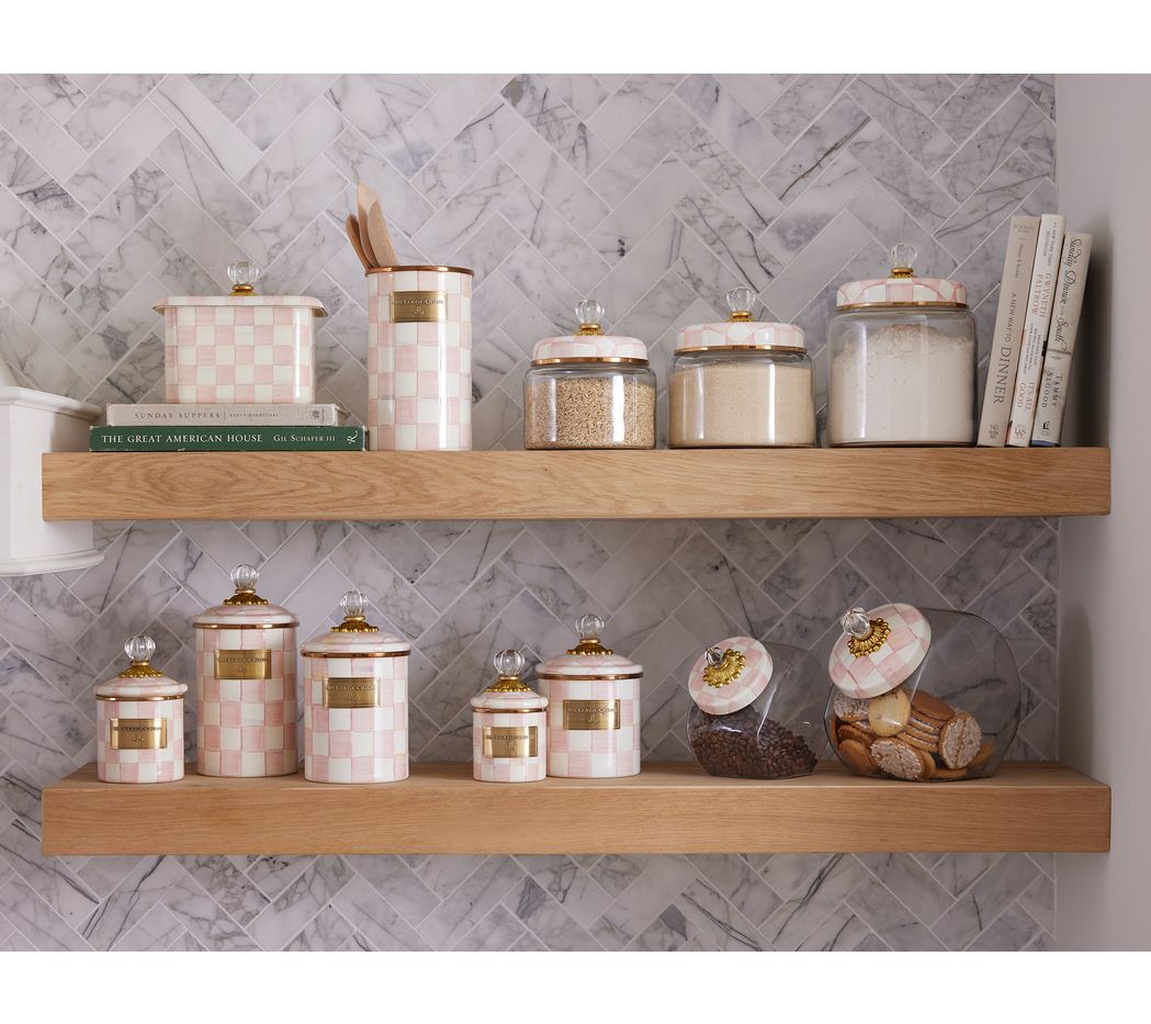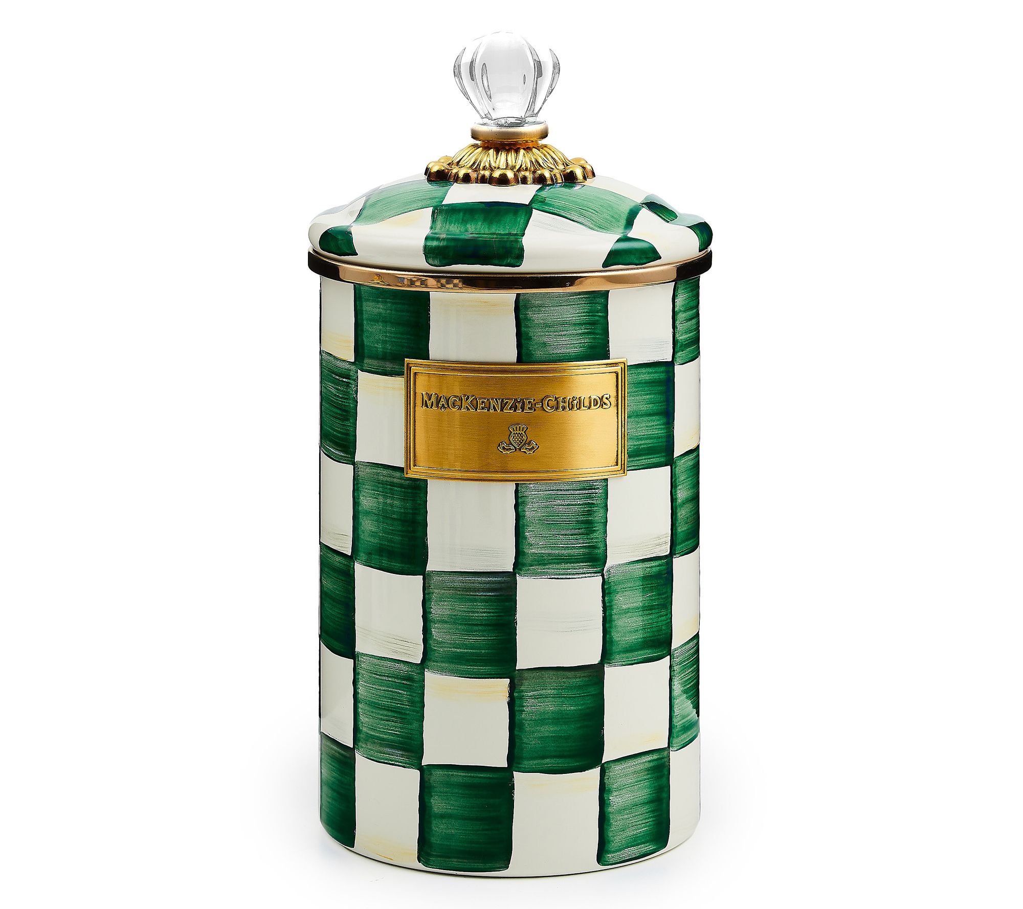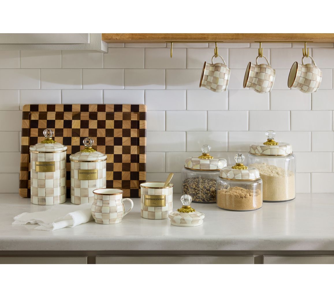 Charm? Check! Designed to store favorite snacks or often-used ingredients while adding a cheerful touch to your countertops, this MacKenzie-Childs canister brightens any space with its hand-painted checks as it effortlessly blends functionality with chic style. Whether you're a seasoned chef or just an enthusiastic foodie, this piece is a delightful addition to any kitchen. From MacKenzie-Childs.