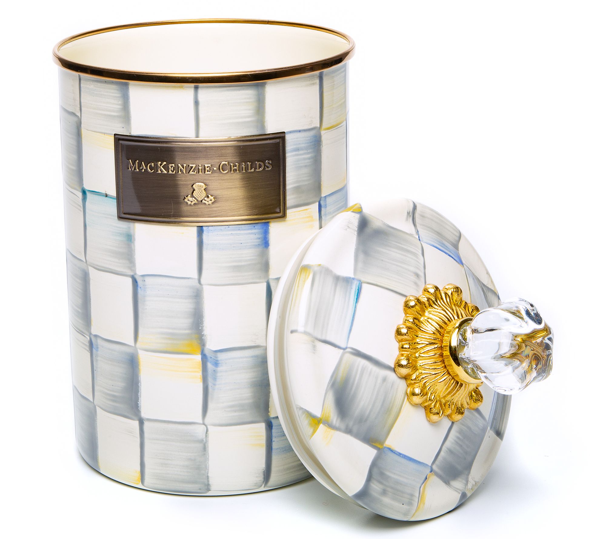 "As Is" MacKenzie- Childs Enamel Check Large Canister