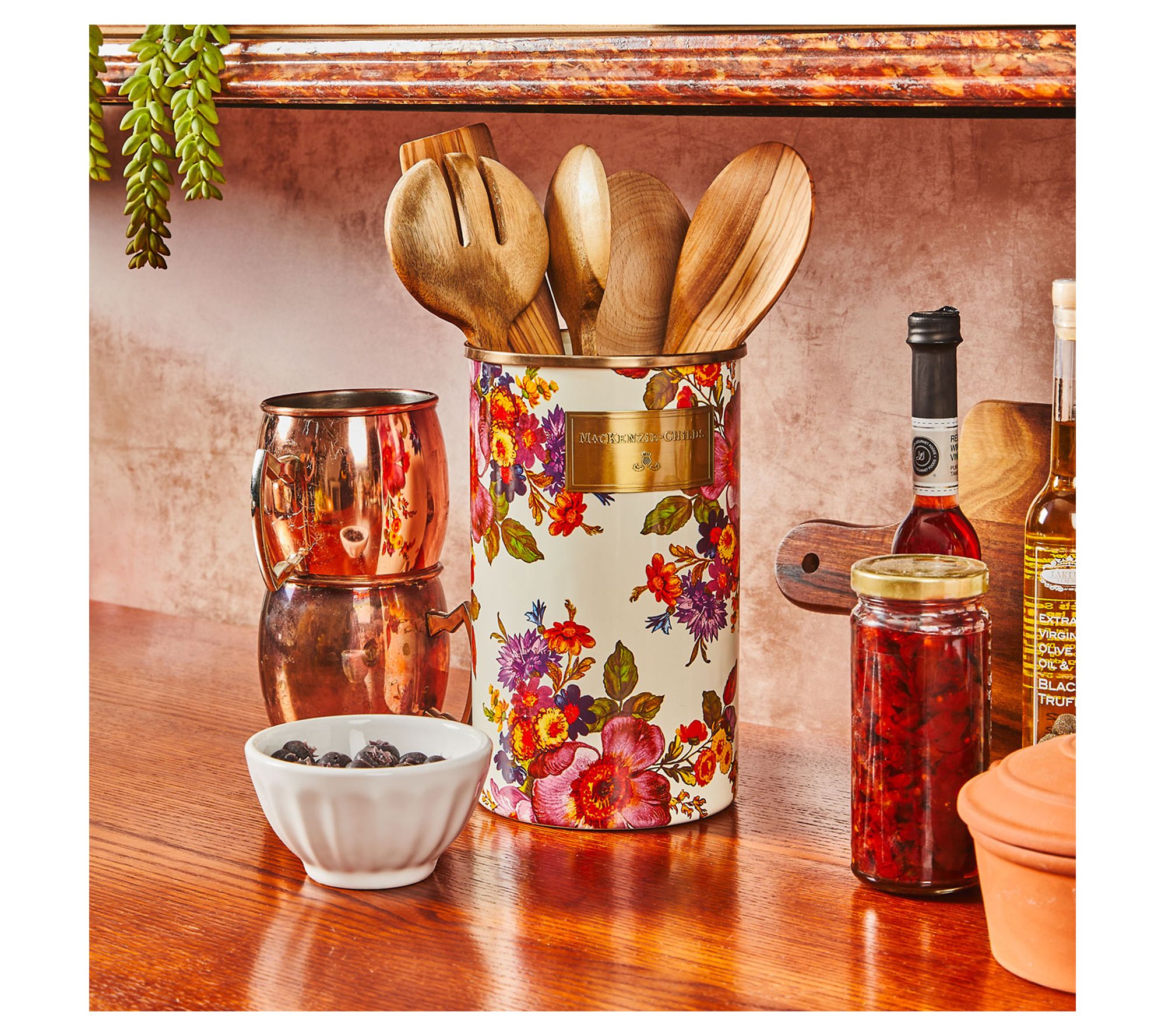 A trip to the flower market? Not necessary when you've got this MacKenzie-Childs utensil holder on your countertop. A charming way to keep your kitchen organized and stylish, the enameled finish blooms with vibrant florals, instantly adding a splash of garden-inspired color to your space. From MacKenzie-Childs.