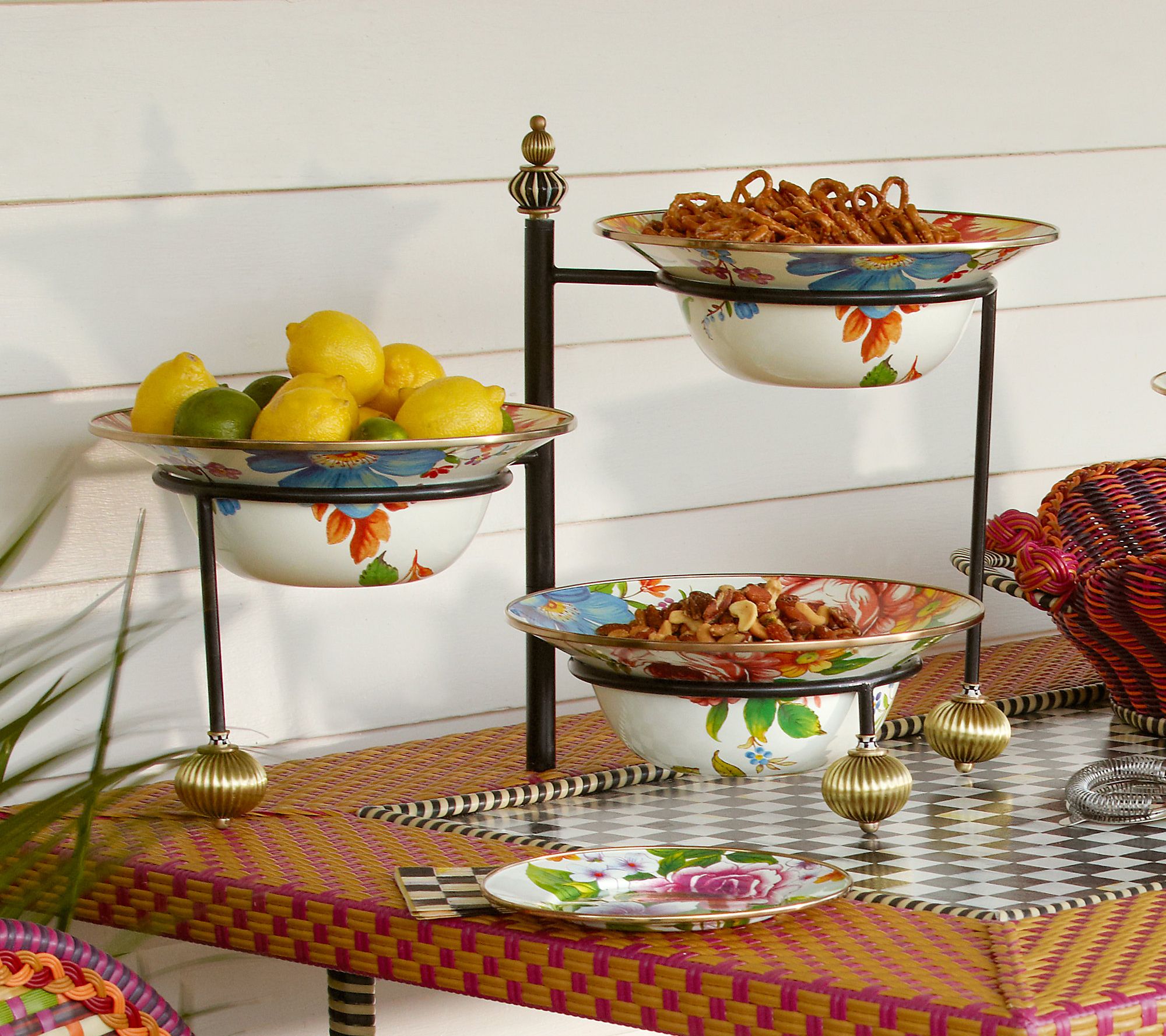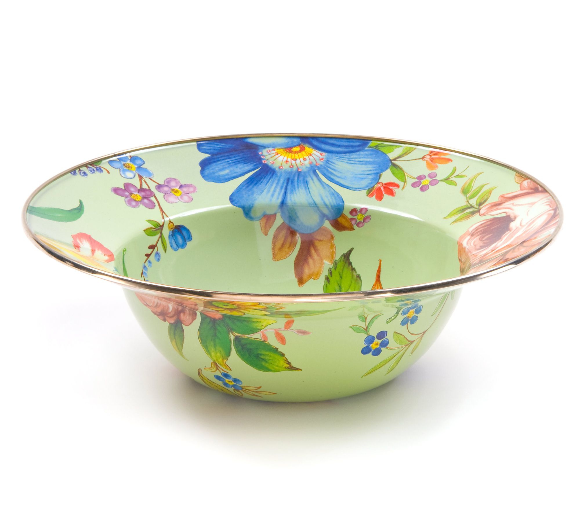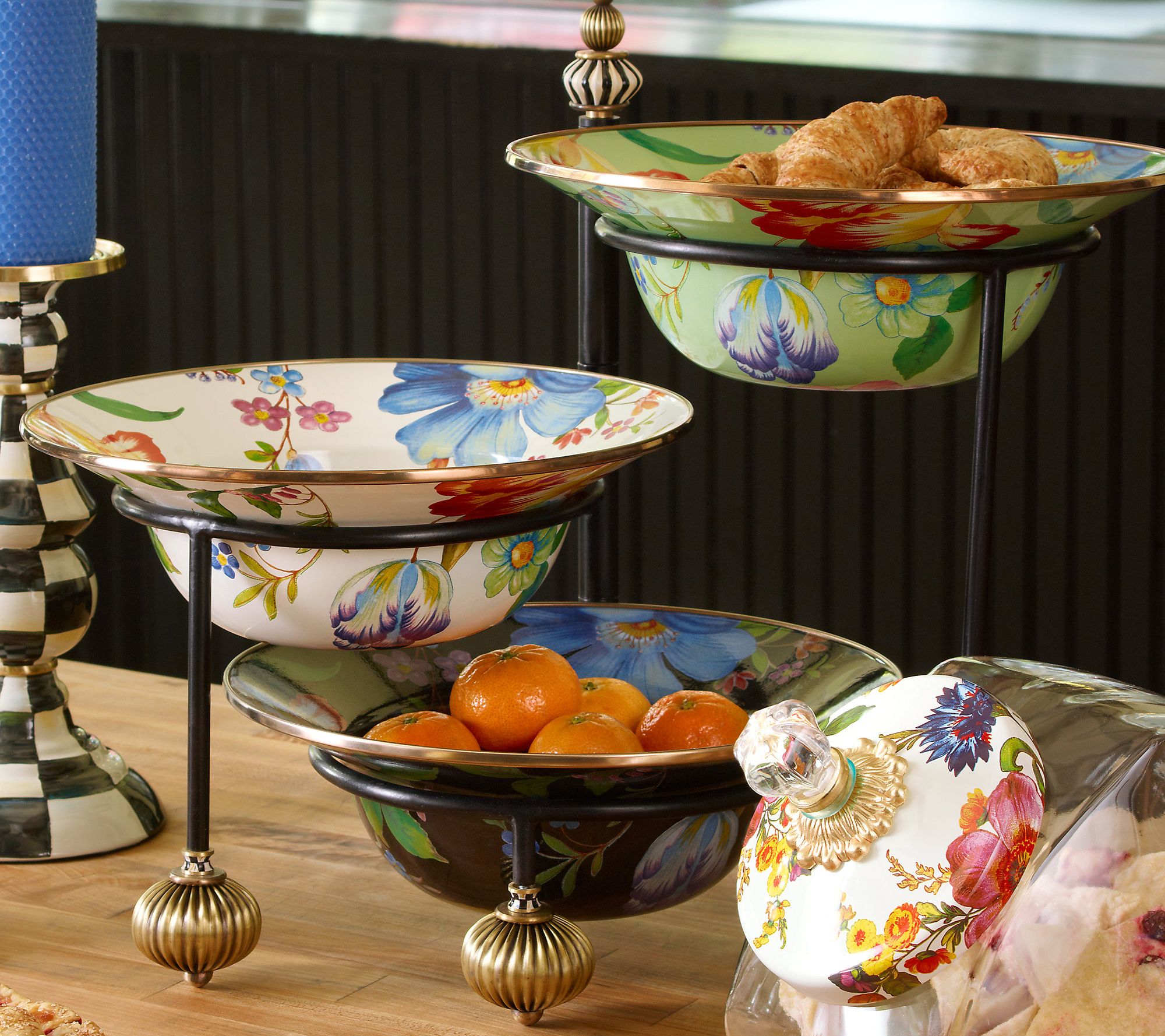 Bringing bold color and floral flair to the table, this beautifully crafted serving bowl is a masterpiece made to be seen. Use it as a vibrant centerpiece that can be filled with real or faux fruit. Our recommendation? Leave it empty so all can admire the artwork. From MacKenzie-Childs.
