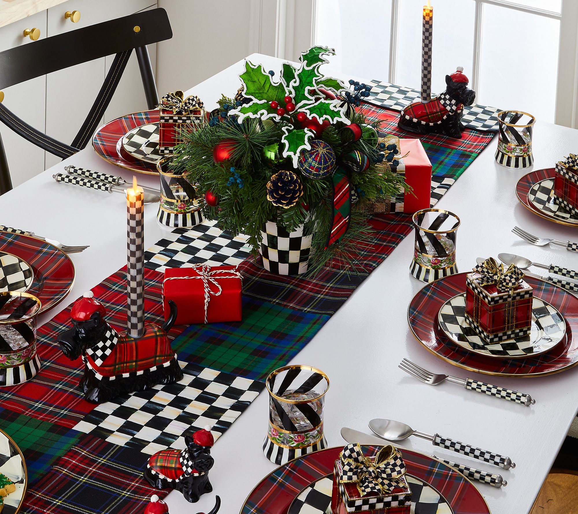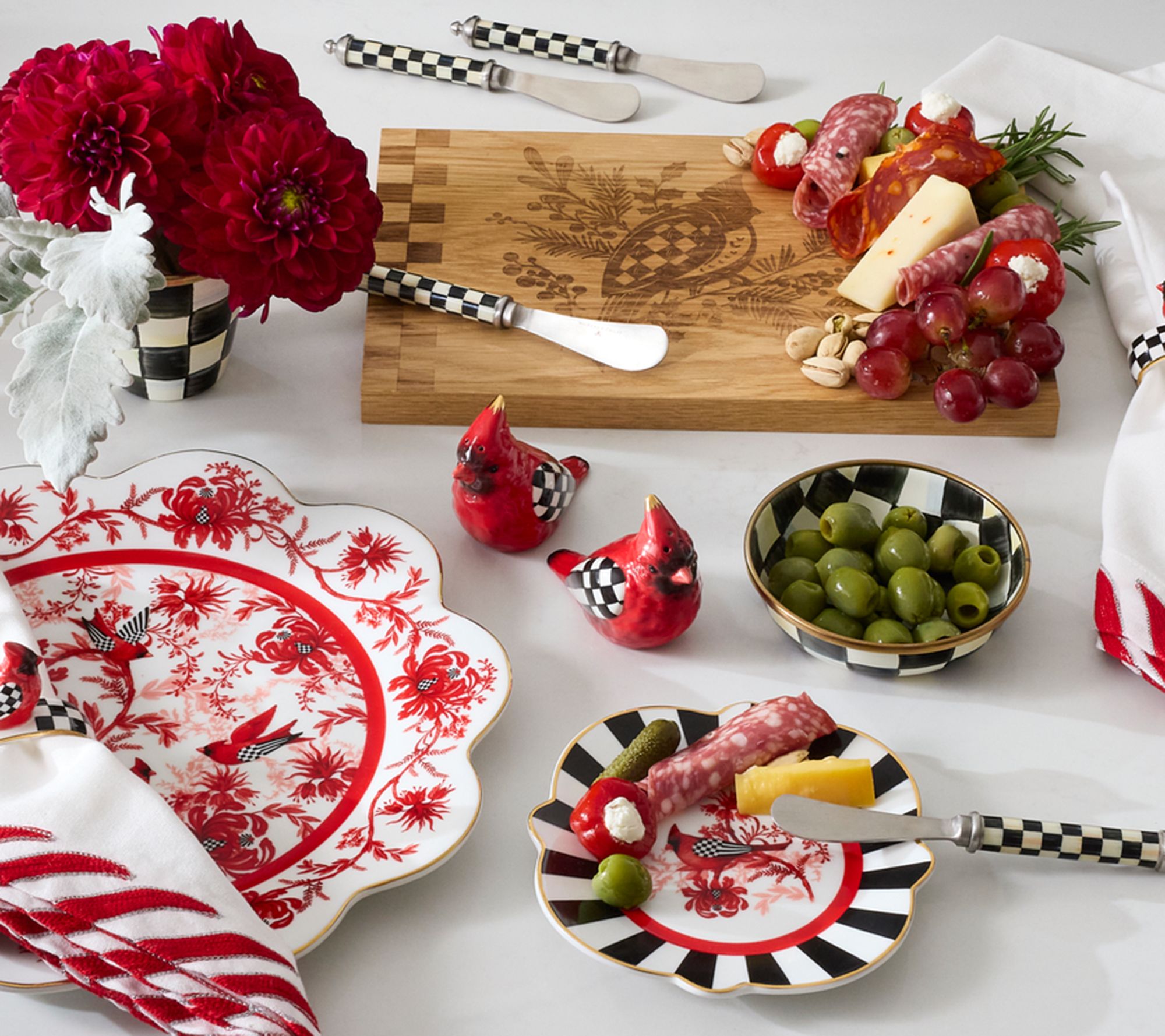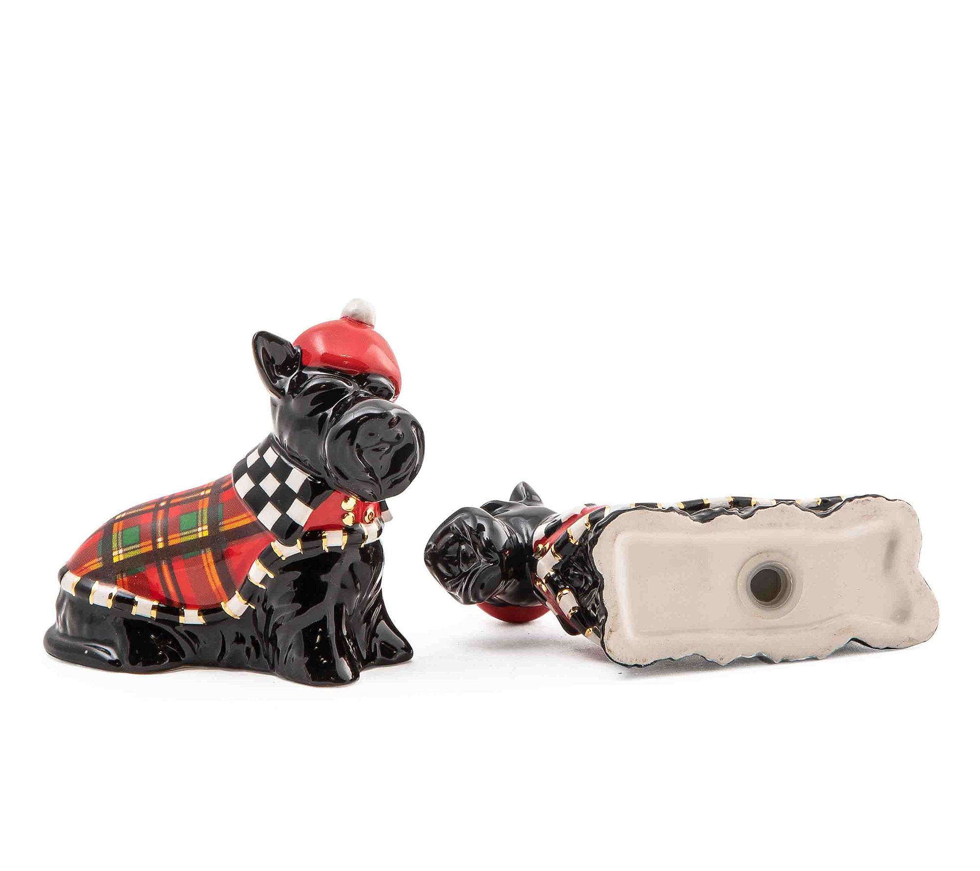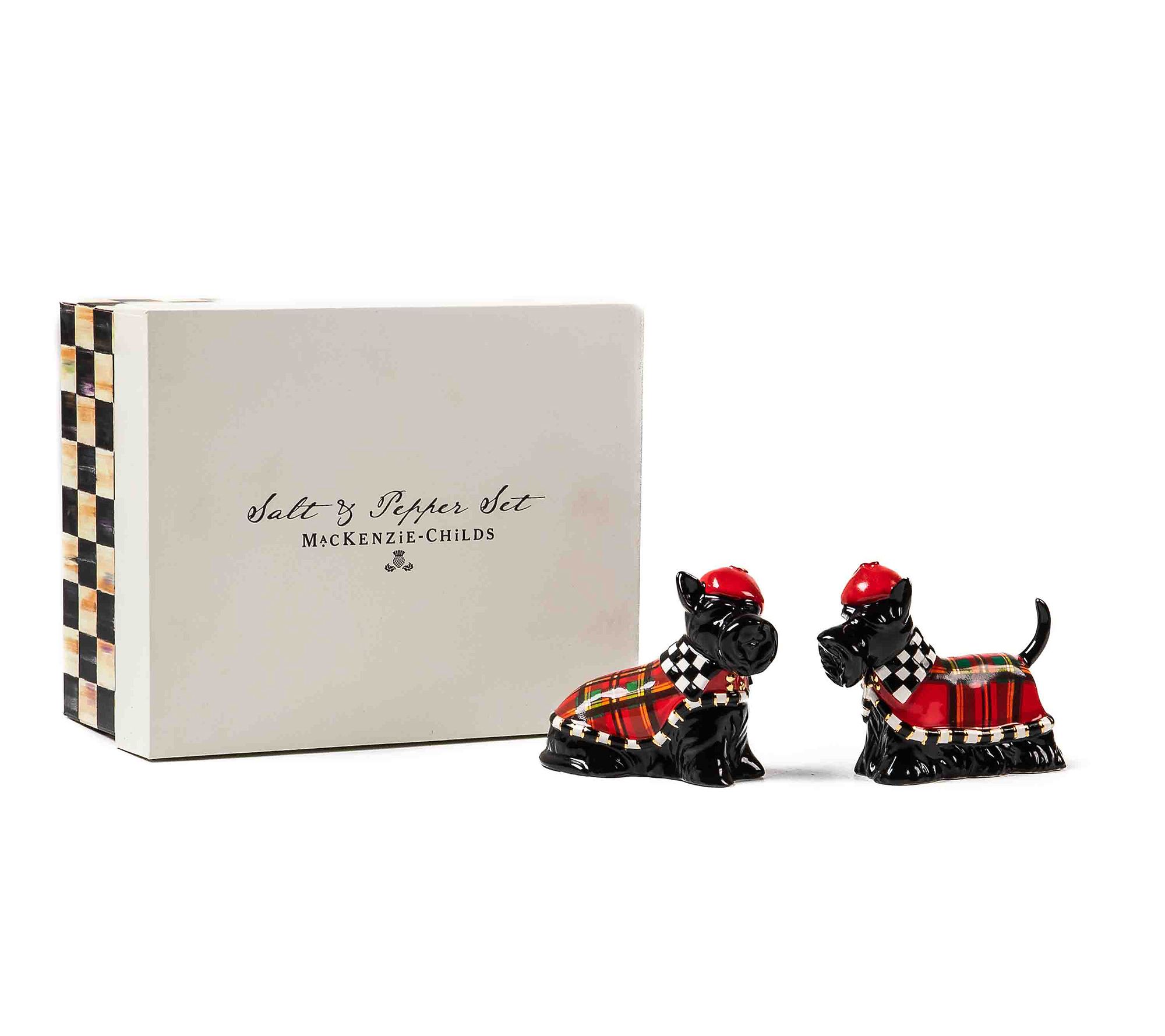 Add a dash of holiday cheer to your table with the MacKenzie-Childs holiday salt and pepper set. These hand-painted ceramic shakers, available in festive characters, make seasoning your meals a delightful experience. Elegantly packaged, they also make the perfect gift. From MacKenzie-Childs.