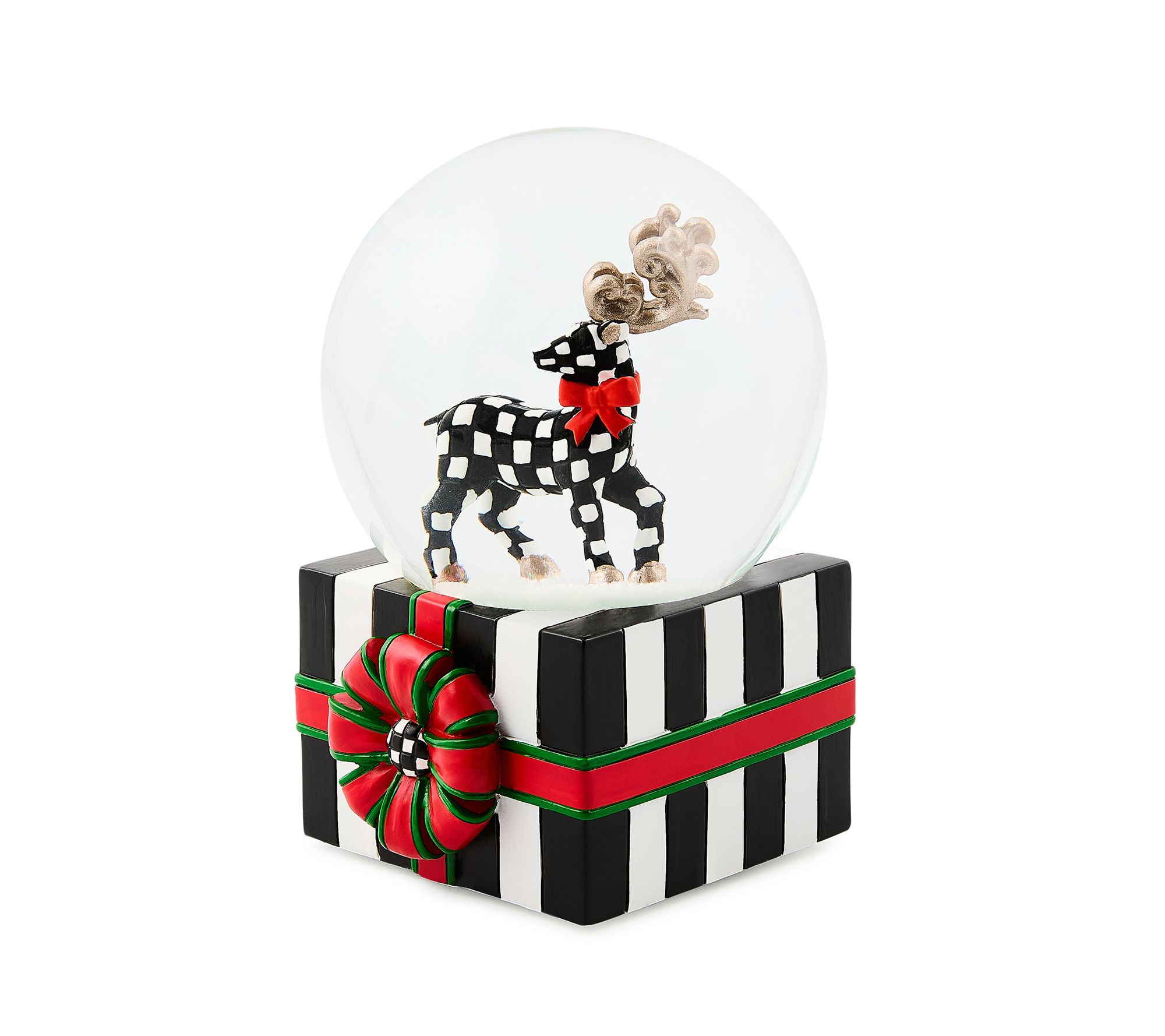 Classic holiday scenes take center stage when this snow globe gleams on your mantel or side table. Shaking it brings swirling snow around the festive deer, creating a charming highlight for quiet evenings, family gatherings, or cozy reading nooks. Let its playful pattern spark stories and smiles throughout your home. From MacKenzie-Childs.