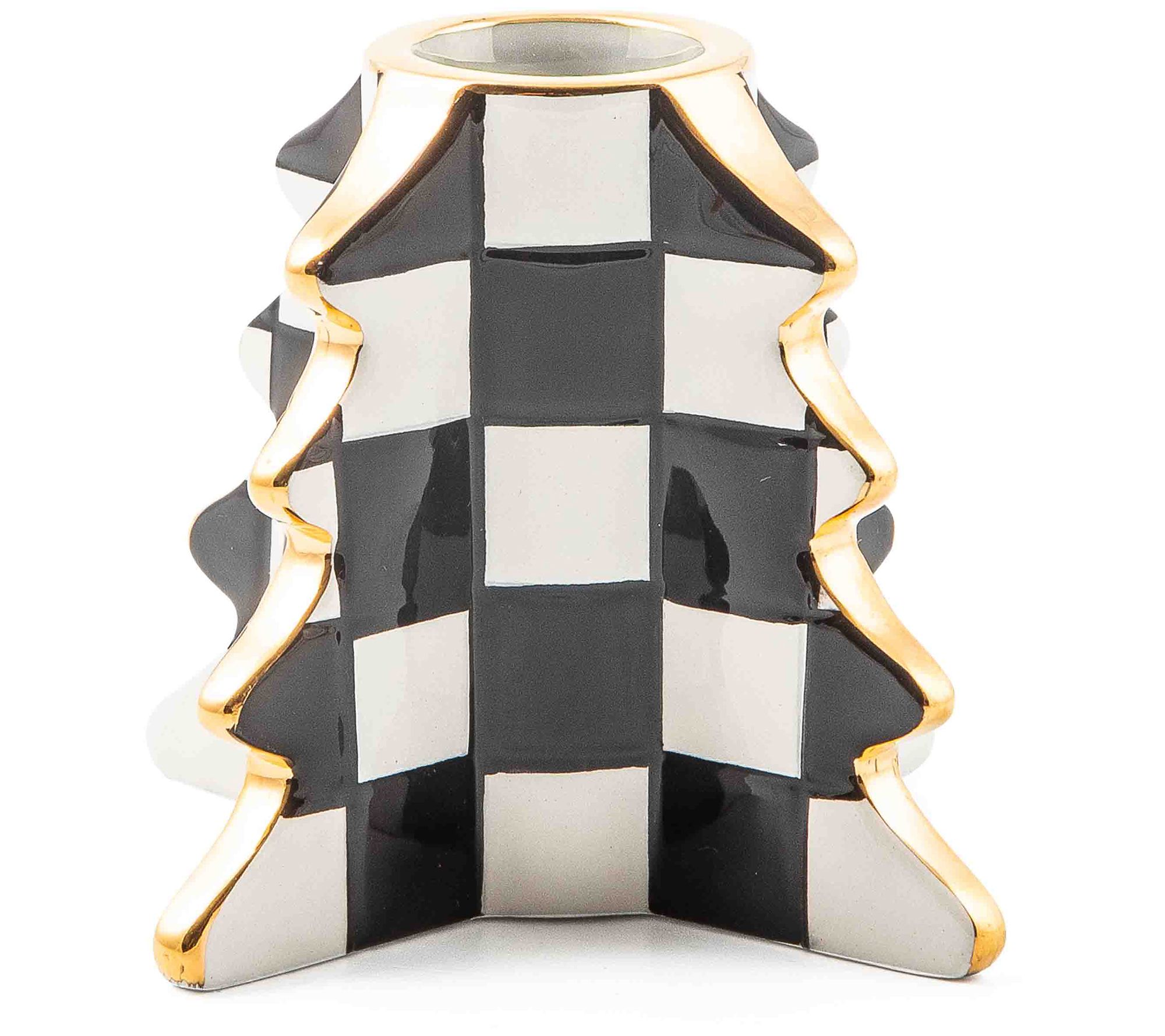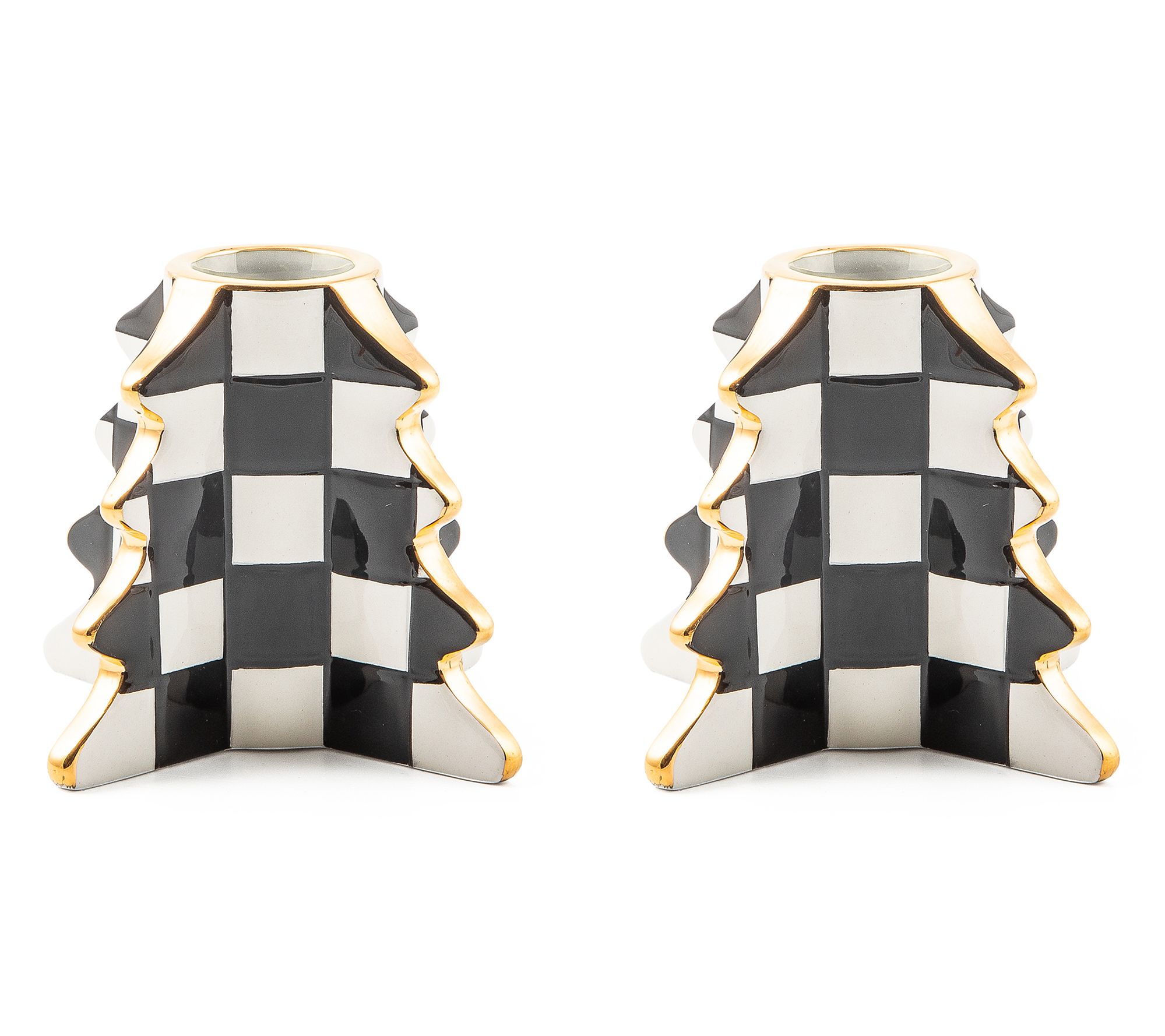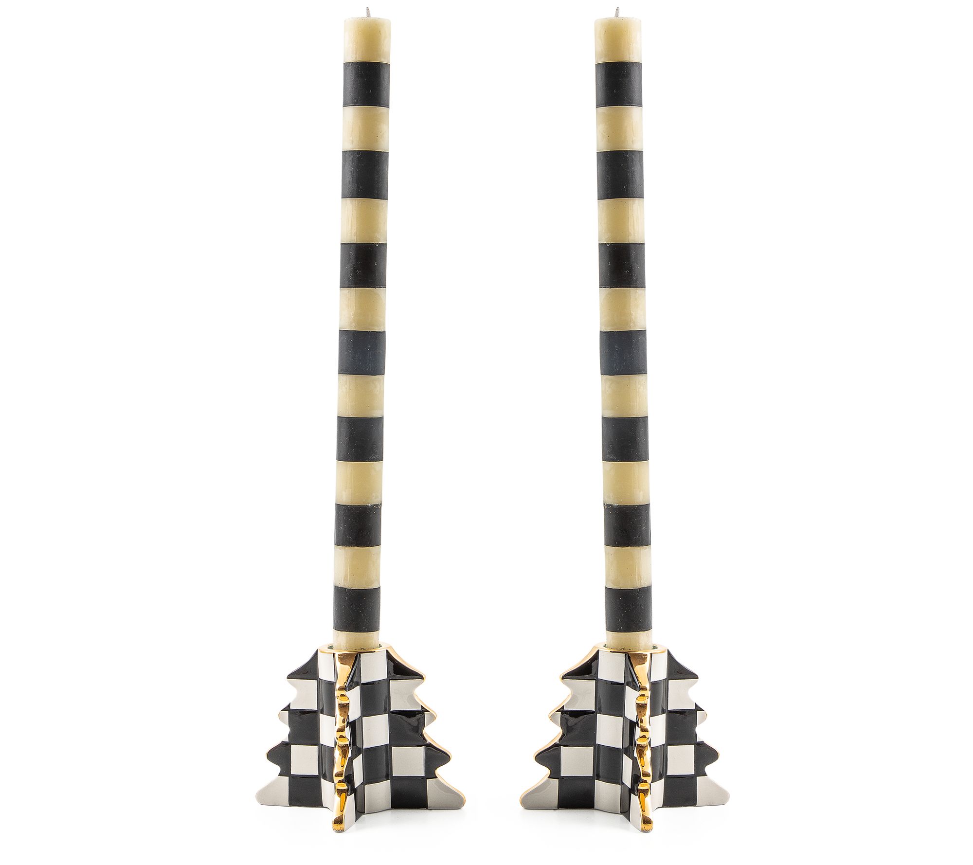 What a festive and whimsical addition to your dining room table! These checked candle holders help brighten the holiday with your signature style. From MacKenzie-Childs.