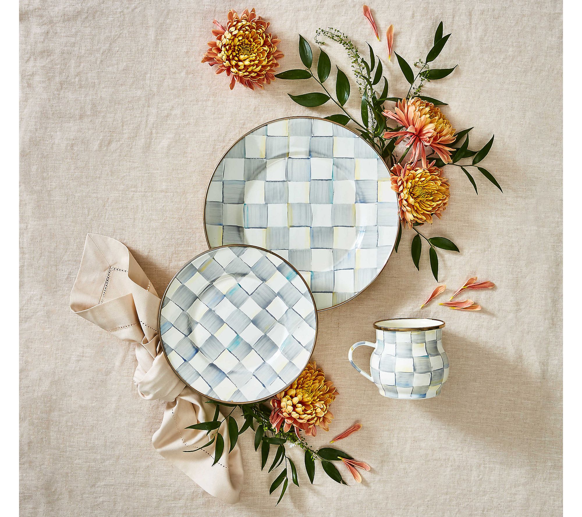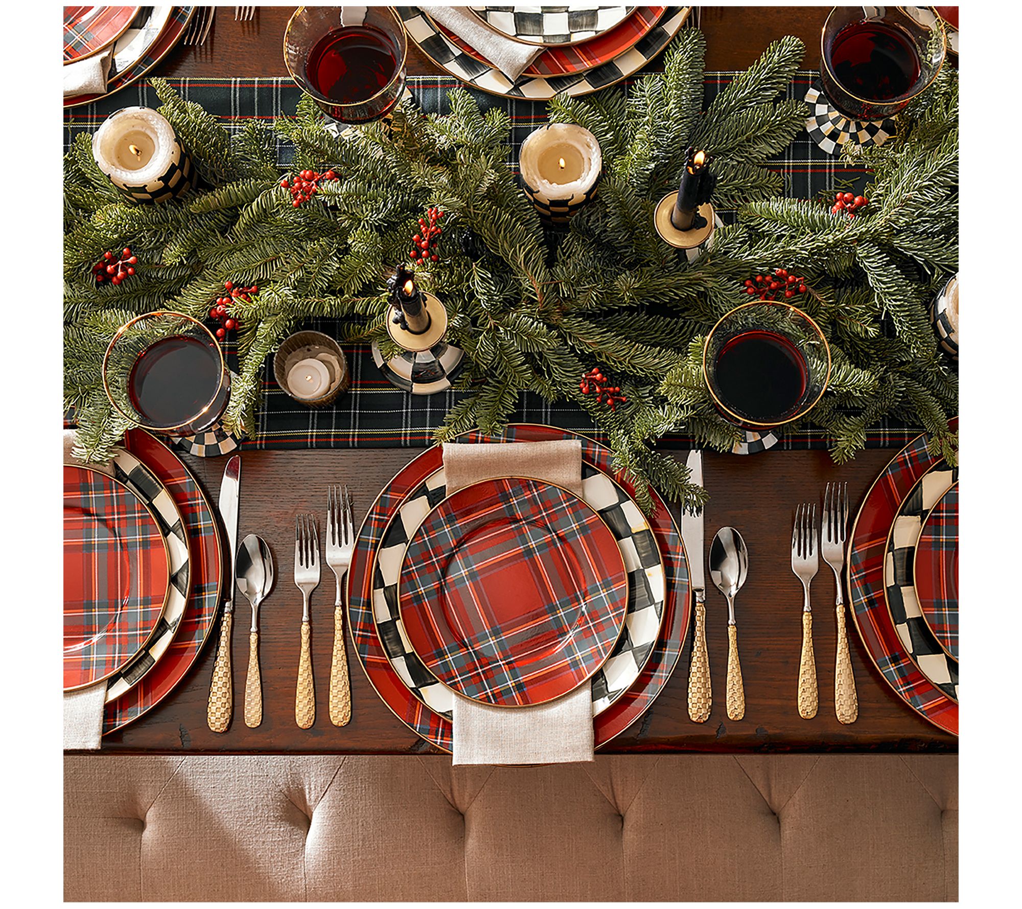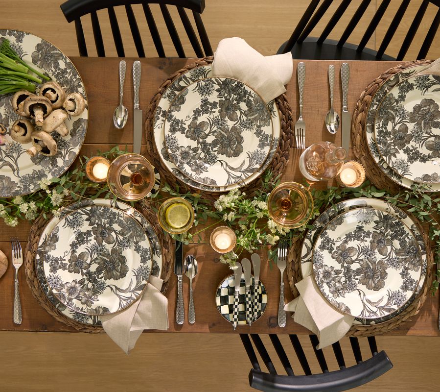Make your memorable meals pop and set each place with these check patterned chargers. (Then again, why not use their whimsical magic on your weekday menu, too?!) From MacKenzie-Childs.