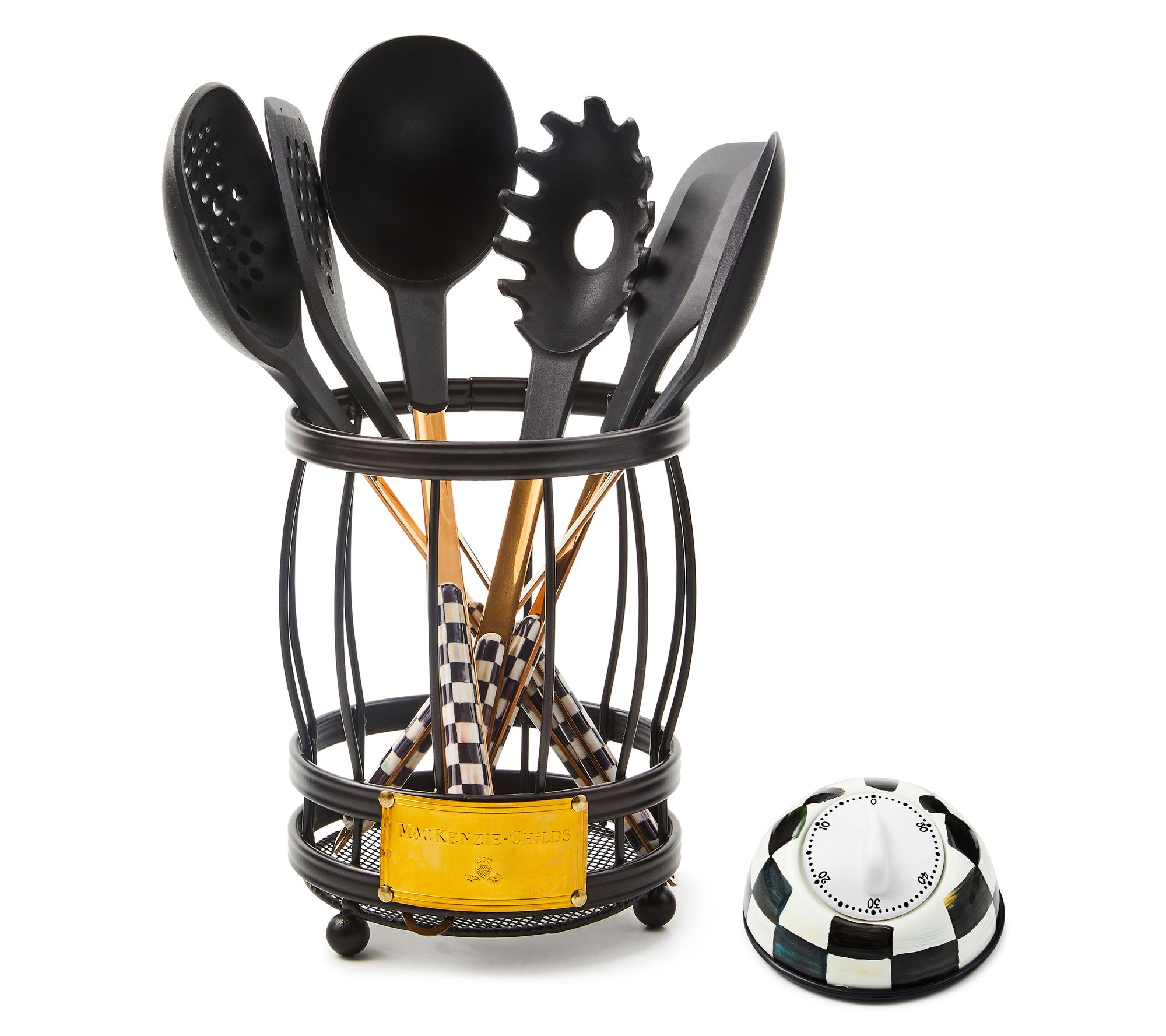 Fusing functional elements, artistic details, and playful style, this hand-painted utensil set with holder and timer elevates your kitchen prep and presentation. From MacKenzie-Childs.