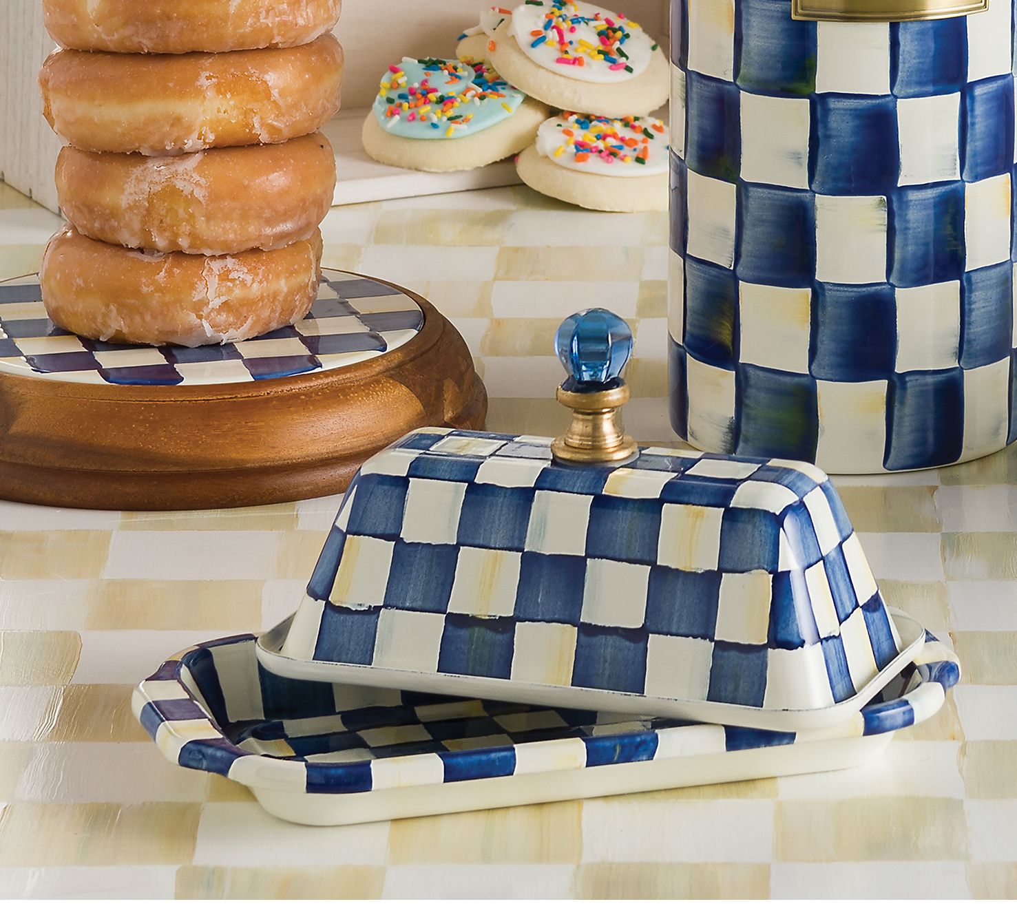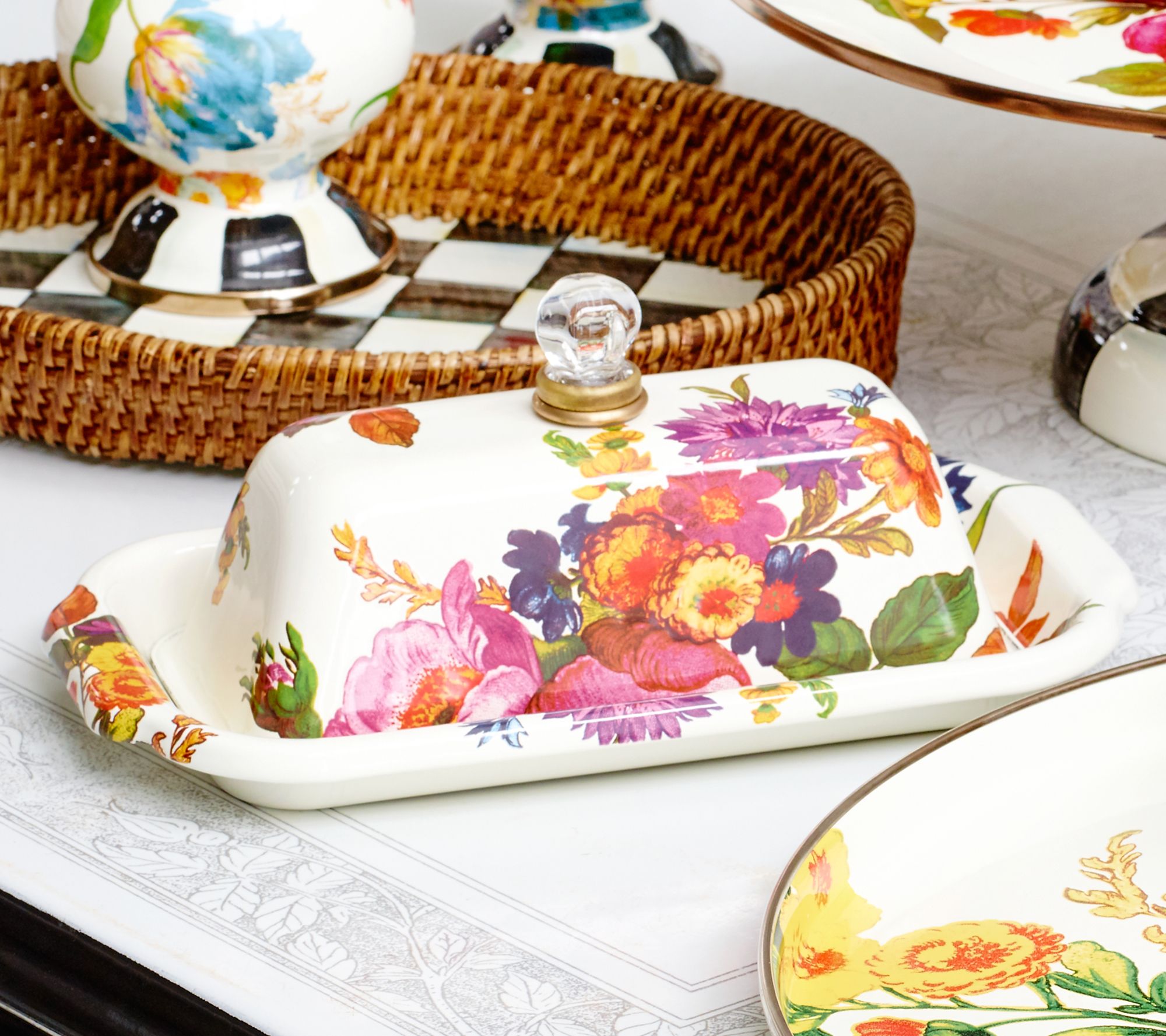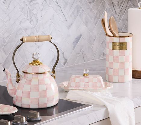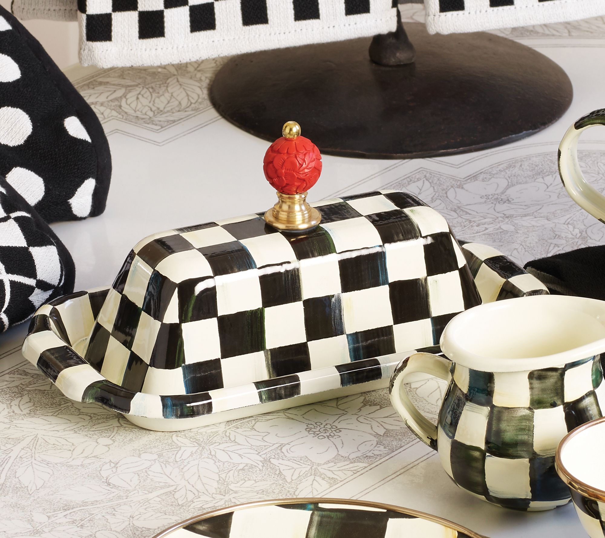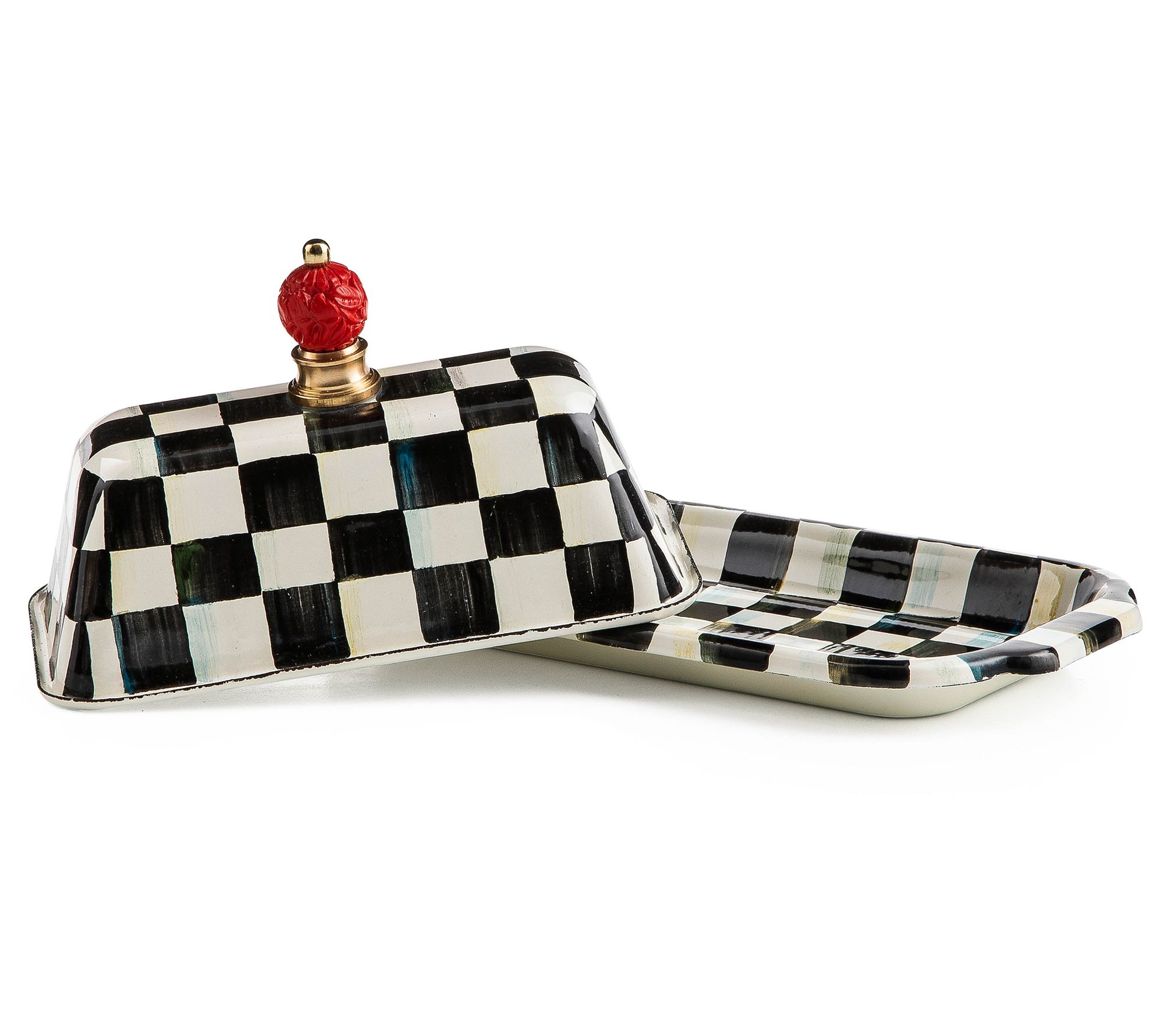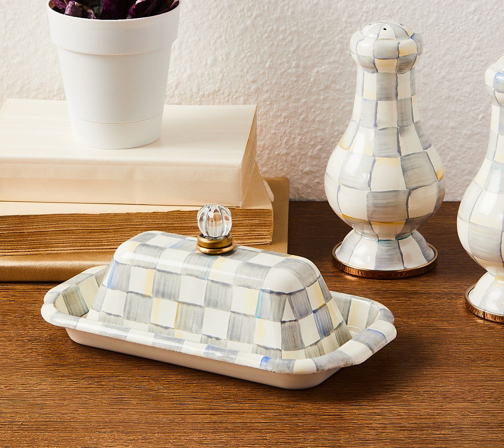 An ultra-stylish place to stash a stick of butter, this enamel dish not only keeps everyone's favorite spread neatly contained and perfectly presentable, but its checked design livens up any tablescape. From MacKenzie-Childs.