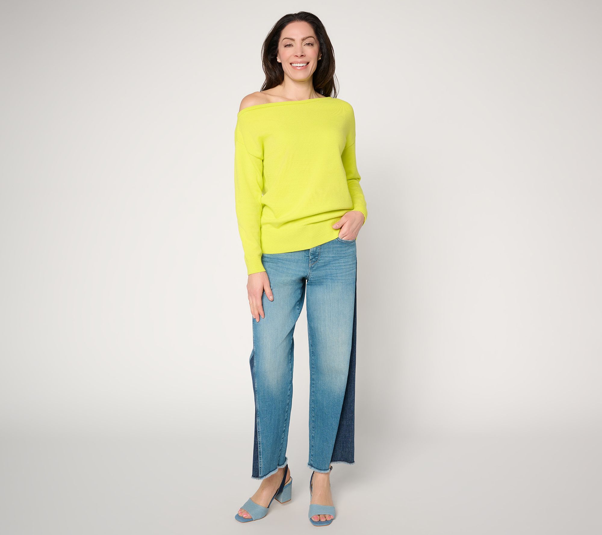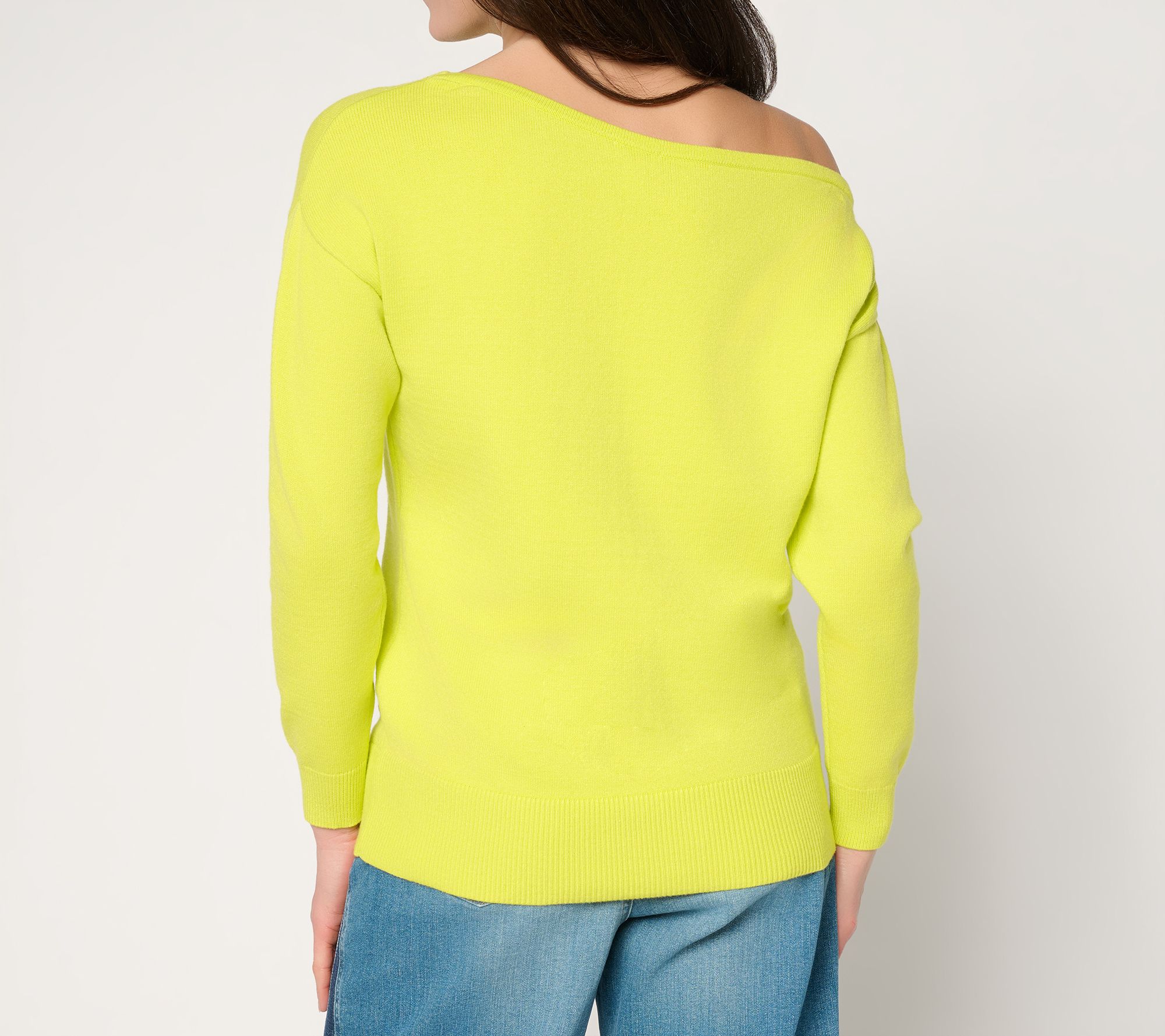• Features: pullover, one-shoulder style, off-the-shoulder neckline with tubular at edge, ribbed bottom band, long sleeves with ribbed cuff