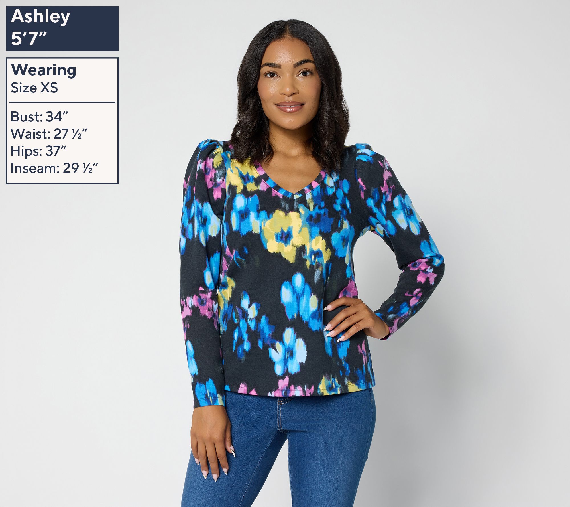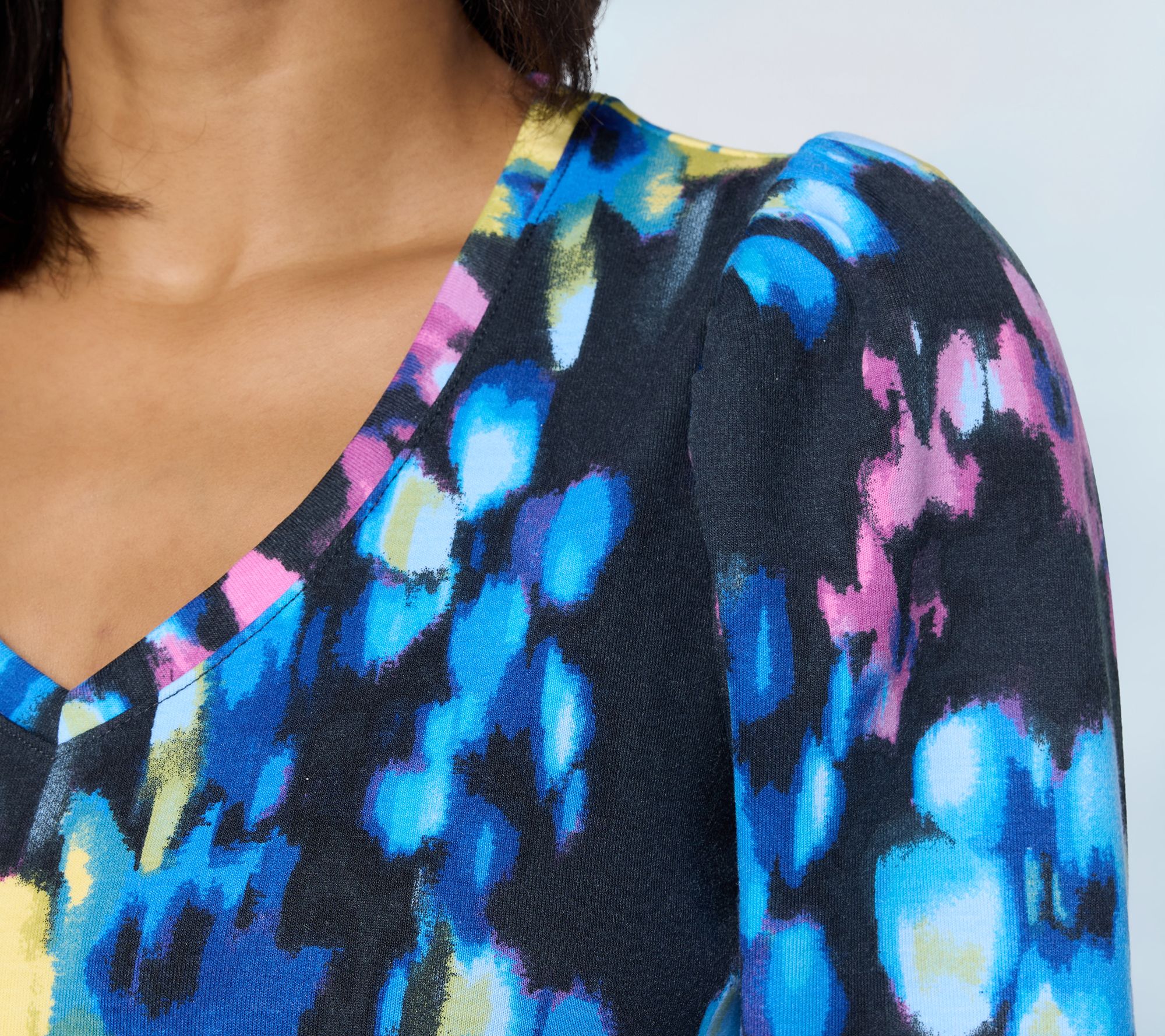 • Features: V-neckline, puffed shoulder, ruffle in shoulder