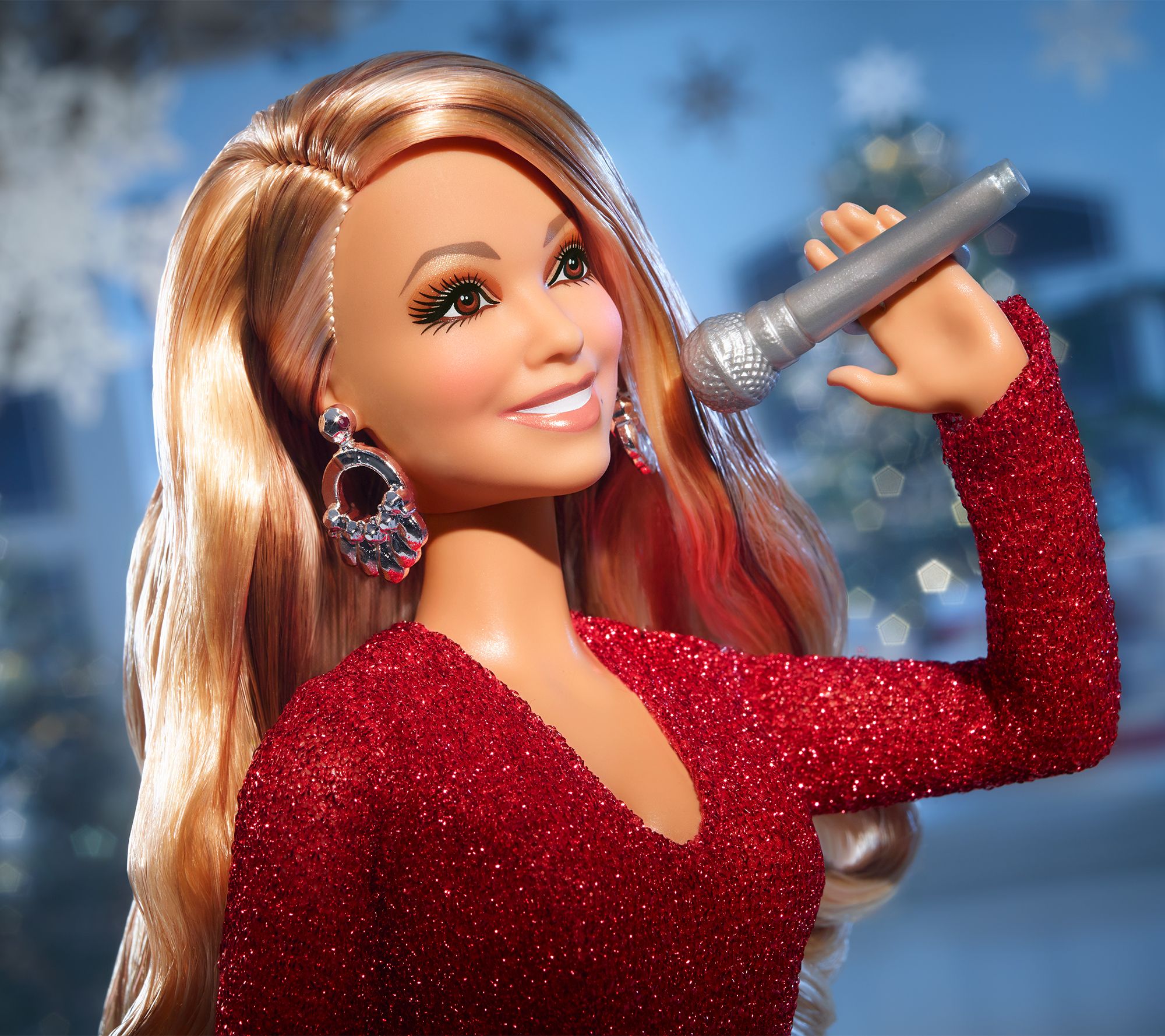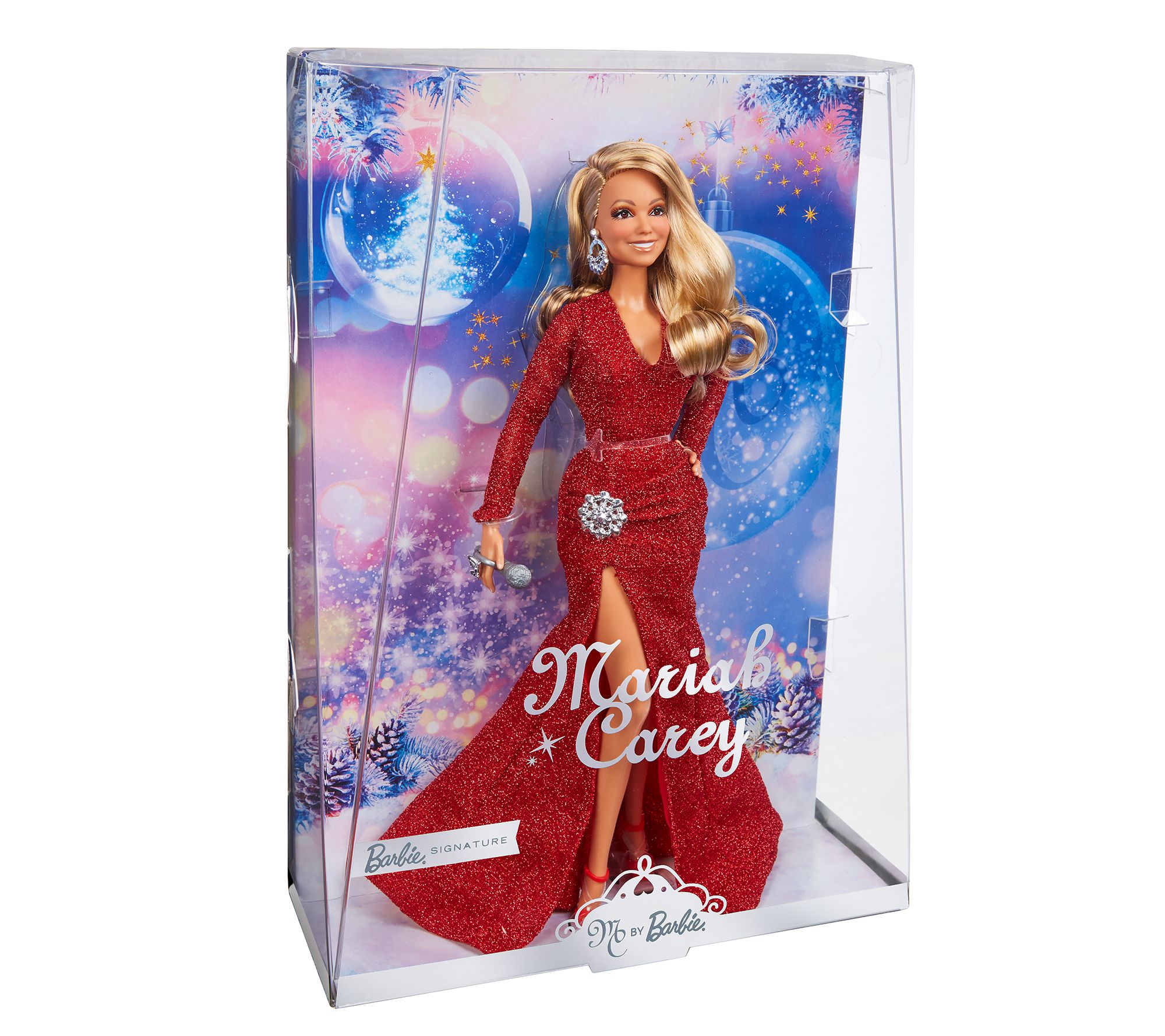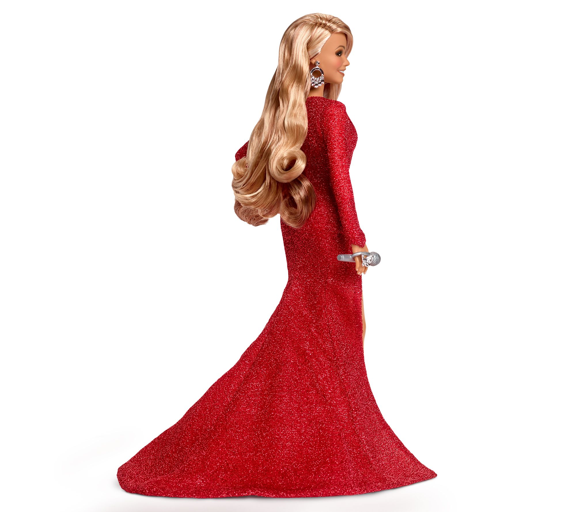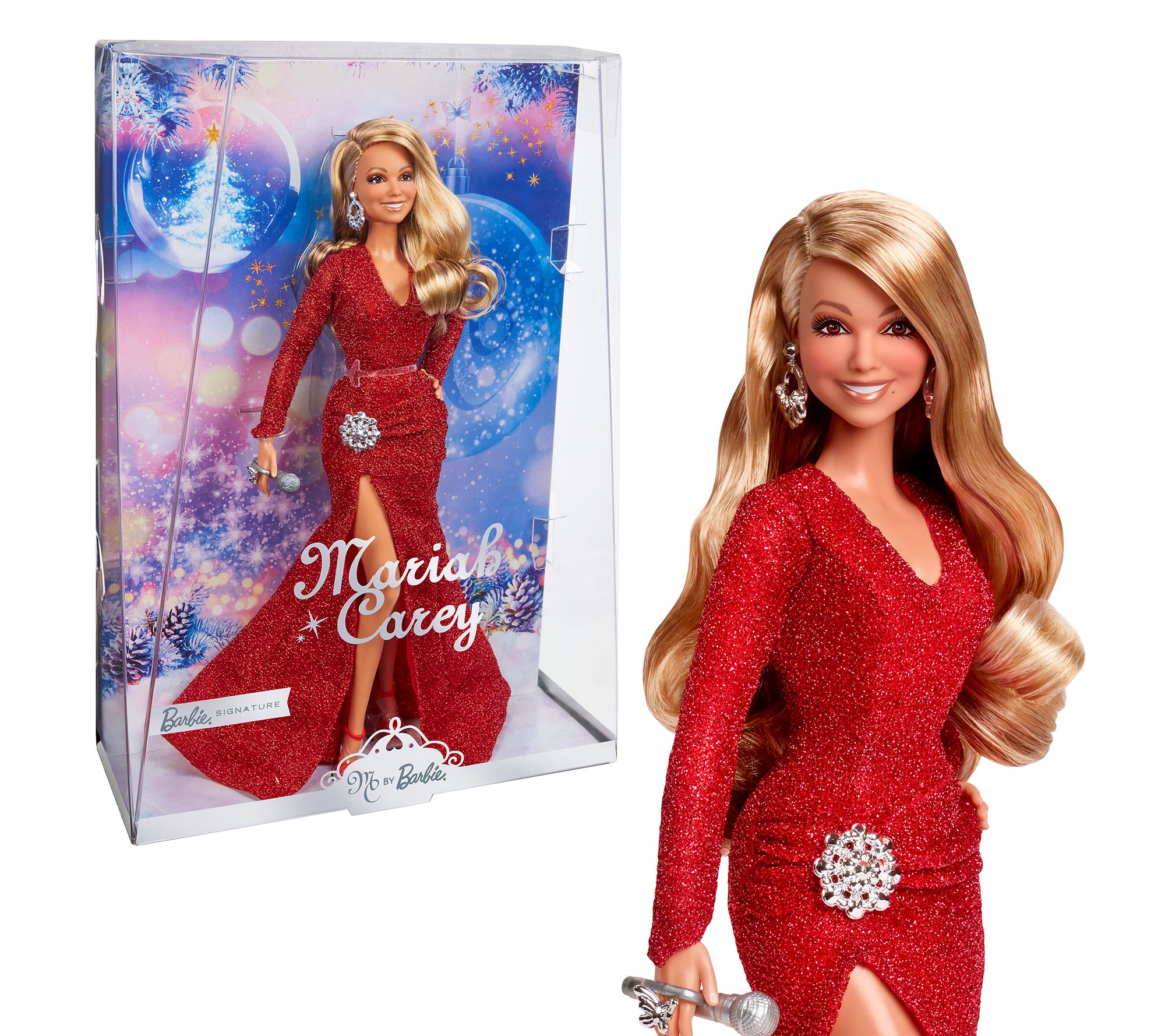 A true collector's item, the Mariah Carey holiday Barbie doll looks stunning in a glittery red gown and matching heels. In true diva fashion, her hair cascades down her back in loose curls while sparkly silver accessories add a touch of glam. Packaged in a beautiful gift box, this doll is the ultimate present for Mariah Carey fans and Barbie lovers alike.