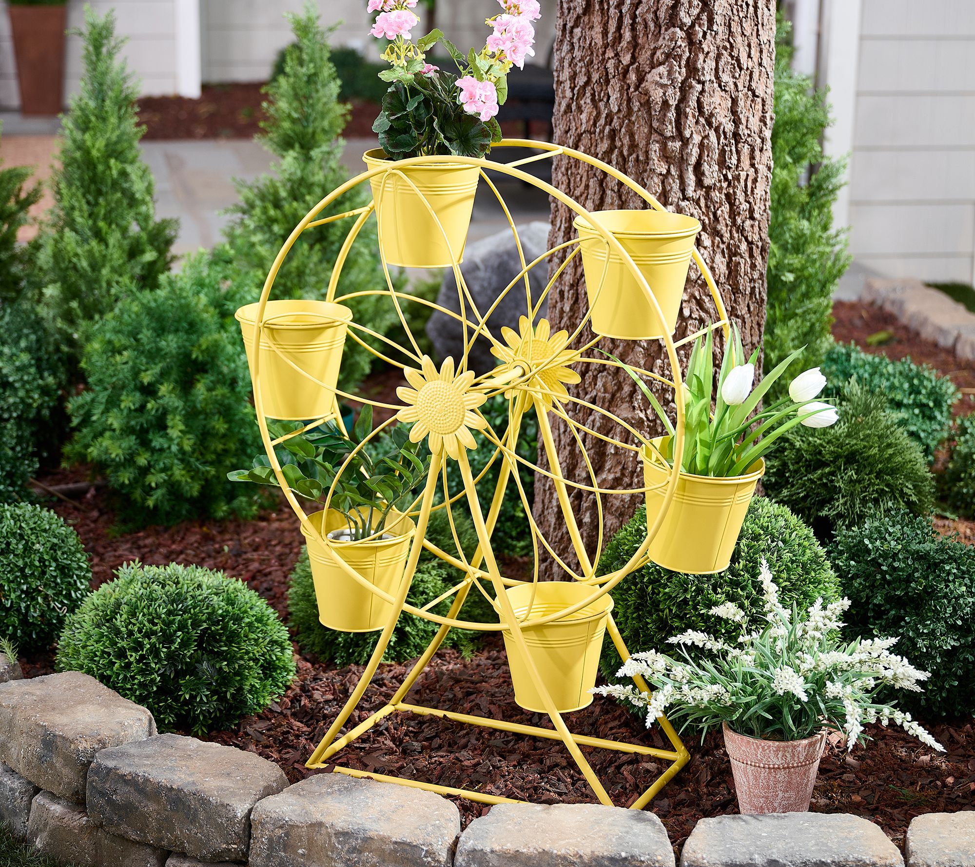 "As Is" Marigold Ferris Wheel Plant Stand with 6 Bucket Planters