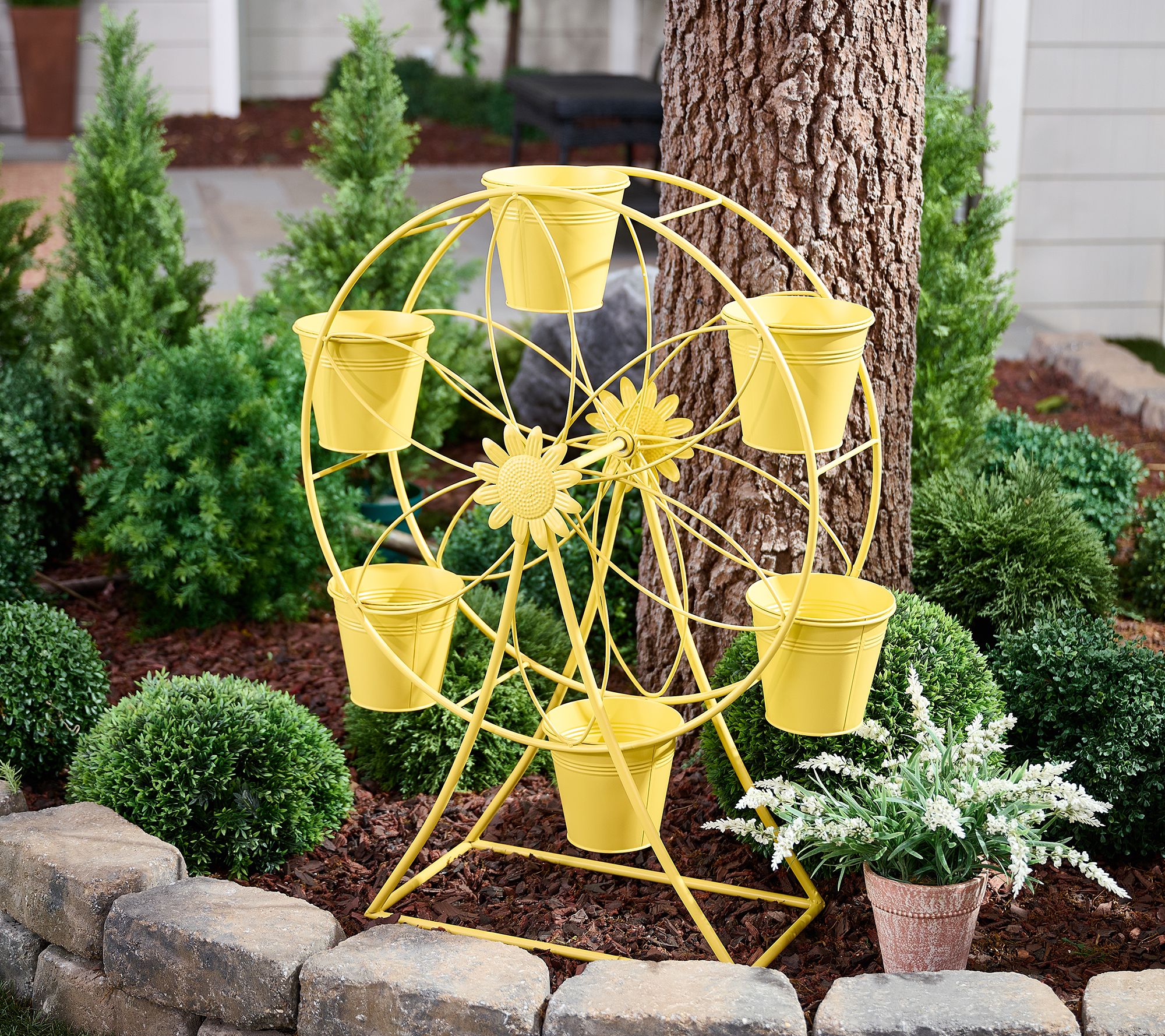 Going round and round with outdoor decor? Land on this playful ferris wheel plant stand to add plenty of excitement to a front lawn, garden, or flower bed. Pot a plant in each of the six buckets to heighten the attraction. From Marigold.